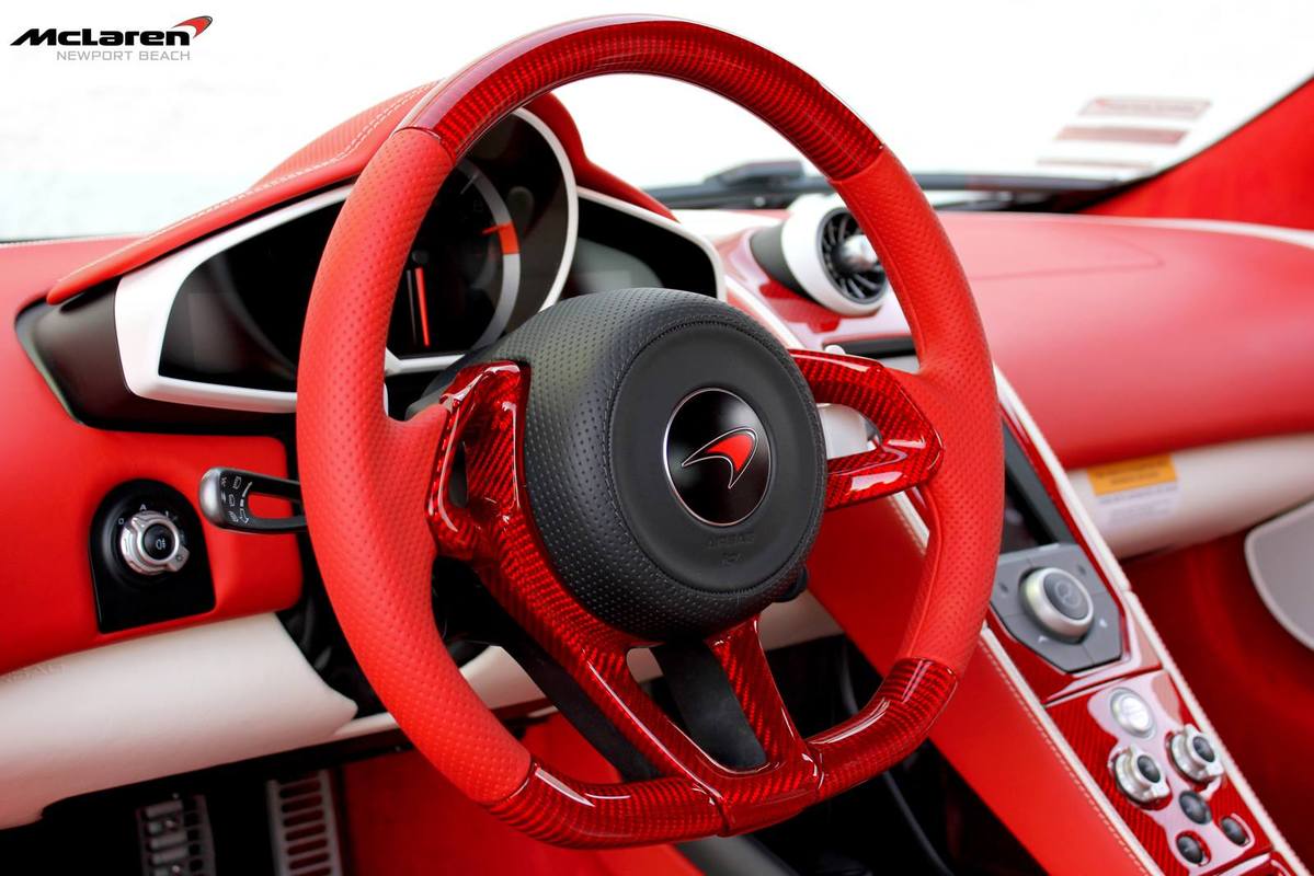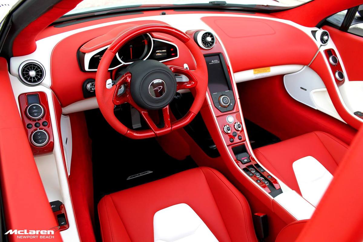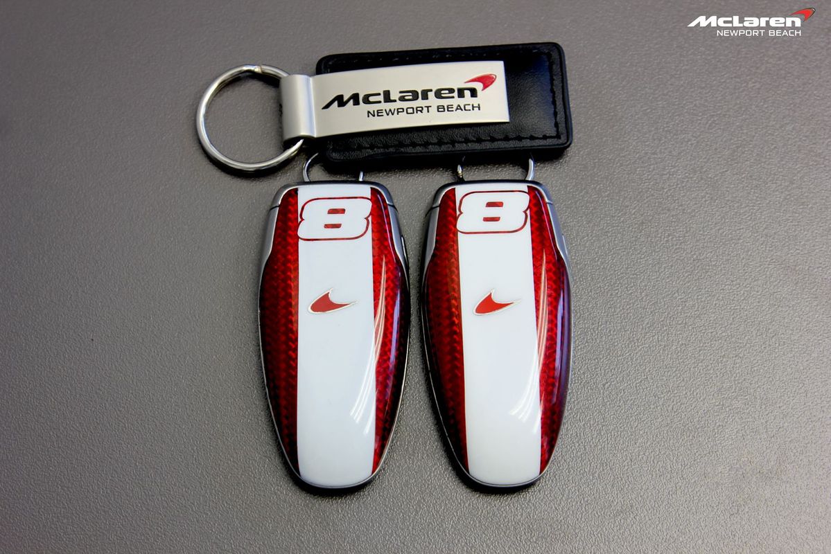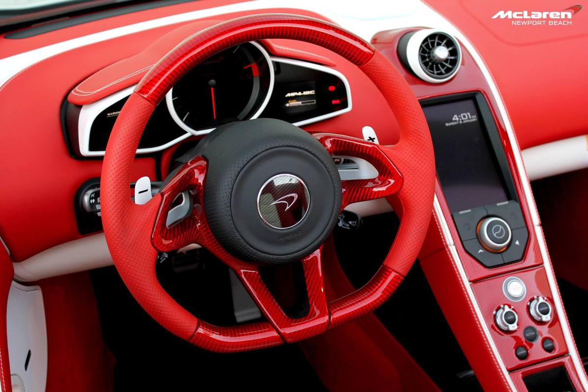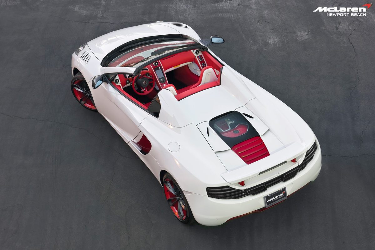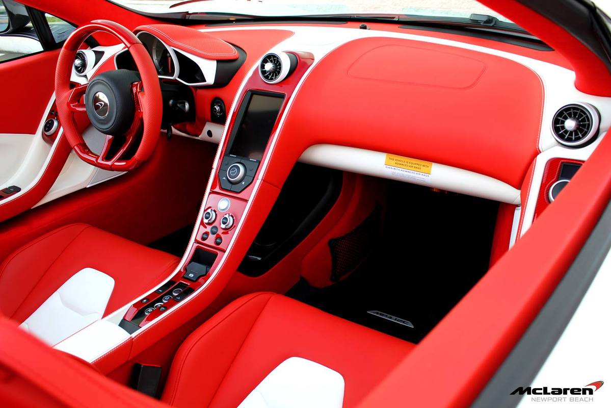 外觀方面,兩部McLaren 12C皆採用Extreme White淨白色塗裝搭配大量碳纖維套件,其中引擎室護板、前下巴、後下擾流板、後引擎蓋周邊飾板與B柱蓋板等處皆以罕見的紅色碳纖維部品妝點,與白色車身搭配,營造出極為特殊的視覺效果。內裝部分更是呼應外觀上的大膽組合,除了於頂棚、後艙置物空間與地毯等處用上頂級紅色麂皮包覆外,其餘則以白色真皮包覆,另外搭配紅色車縫線與多處紅色碳纖維飾板,方向盤則是以紅黑雙色透氣真皮搭配紅色碳纖維材質,同時選配有衛星導航、IRIS音響升級套件與全功能電動座椅等精裝部品,竭盡奢華之能事。