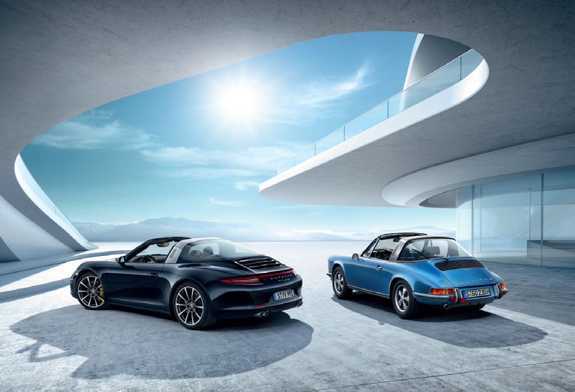 911 Targa 從 1966 年底開始生產,隨後於 1967 年正式推出市場。這部半敞篷式 911 跑車的售價比 Coupé 硬頂車型貴 1,400 德國馬克。在接下來的 27 年間,敞篷車頂概念隨著 911 車型的演化一代比一代精進。在此過程中,這部「半敞篷式」車型的車身概念始終在保時捷車系之中保有自成一格的特色。平均十位 911 客戶之中便有一位選擇採用此設計。
