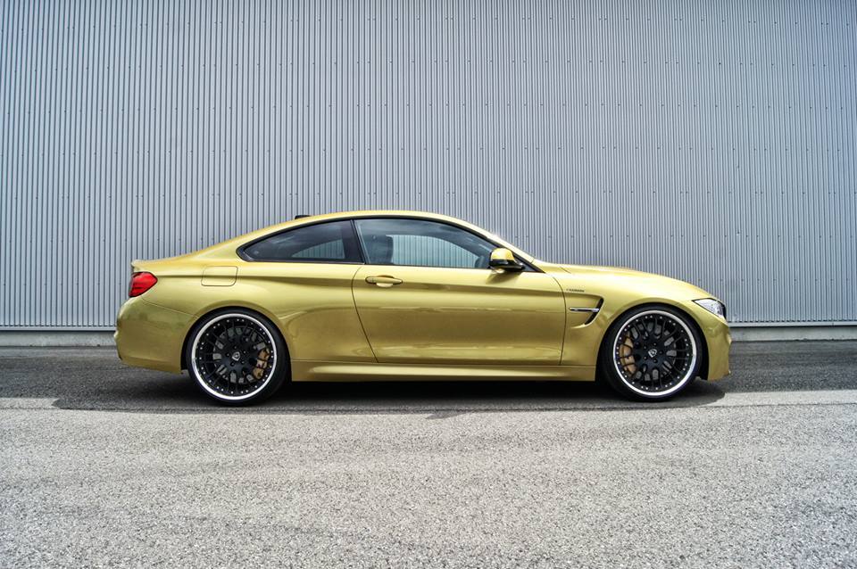 面臨全新款式雙門版本BMW F82 M4與四門版本BMW F80 M3問世的重大事件,長期以來專精於BMW改裝套件而聞名的知名品牌Hamann當然不會閒著沒事做,而在他們鴨子划水、積極開發專屬於新世代M3與M4的各種套件之同時,率先公布裝著Hamann輪圈的BMW F82 M4。眼前這部採用亮眼Austin Yellow金屬黃色塗裝的全新BMW F82 M4便是Hamann首批改裝示範車之一,出廠時便選配了包含金色塗裝煞車卡鉗的陶瓷碳纖煞車系統,另外在交車後換上M Performance亮面黑色水箱護罩略為修飾車頭氣勢。
