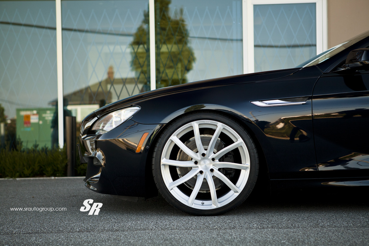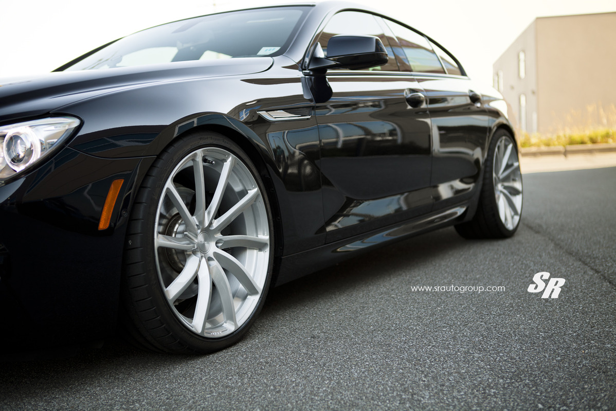 這是由改裝團隊SR Auto Group所操刀的BMW F06 650i Gran Coupe,除了身披霸氣的黑色塗裝外,另配有原廠選配的M Sport空力套件,包含造型不同的前保桿、側裙組與後保桿等部品。另外,SR Auto Group為這部四門跑車換裝H&R短彈簧組使車身降低,配合PUR Wheels、型號RS08的輕量化輪圈,讓輪弧更顯飽滿,展現出更為低趴流線的動感跑格。