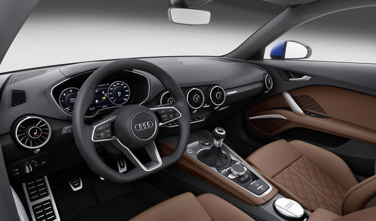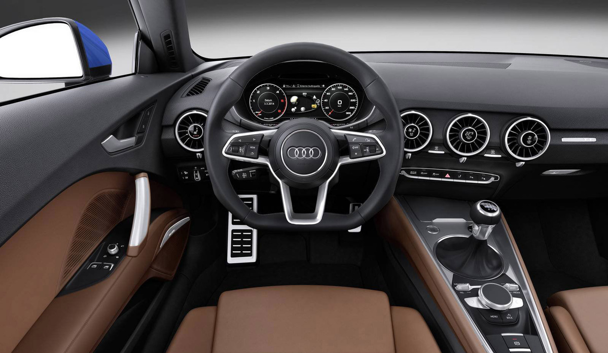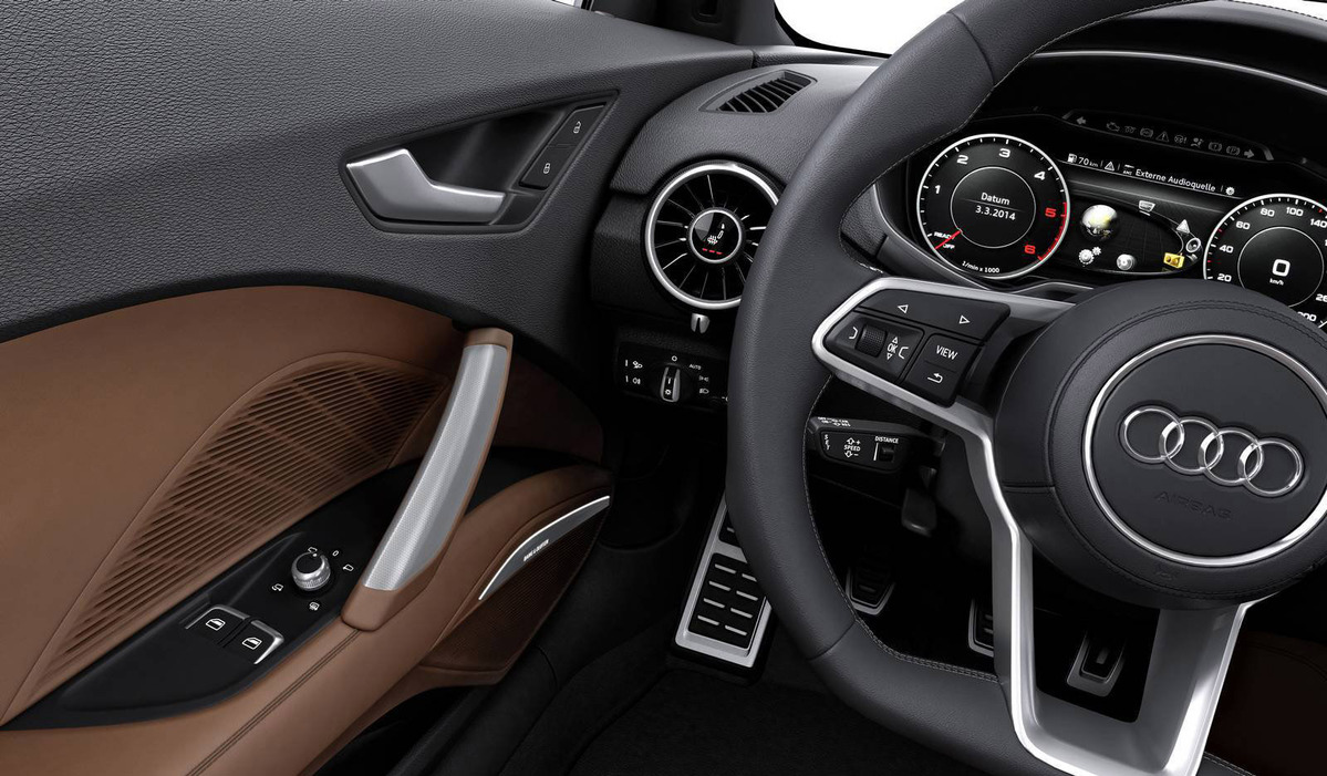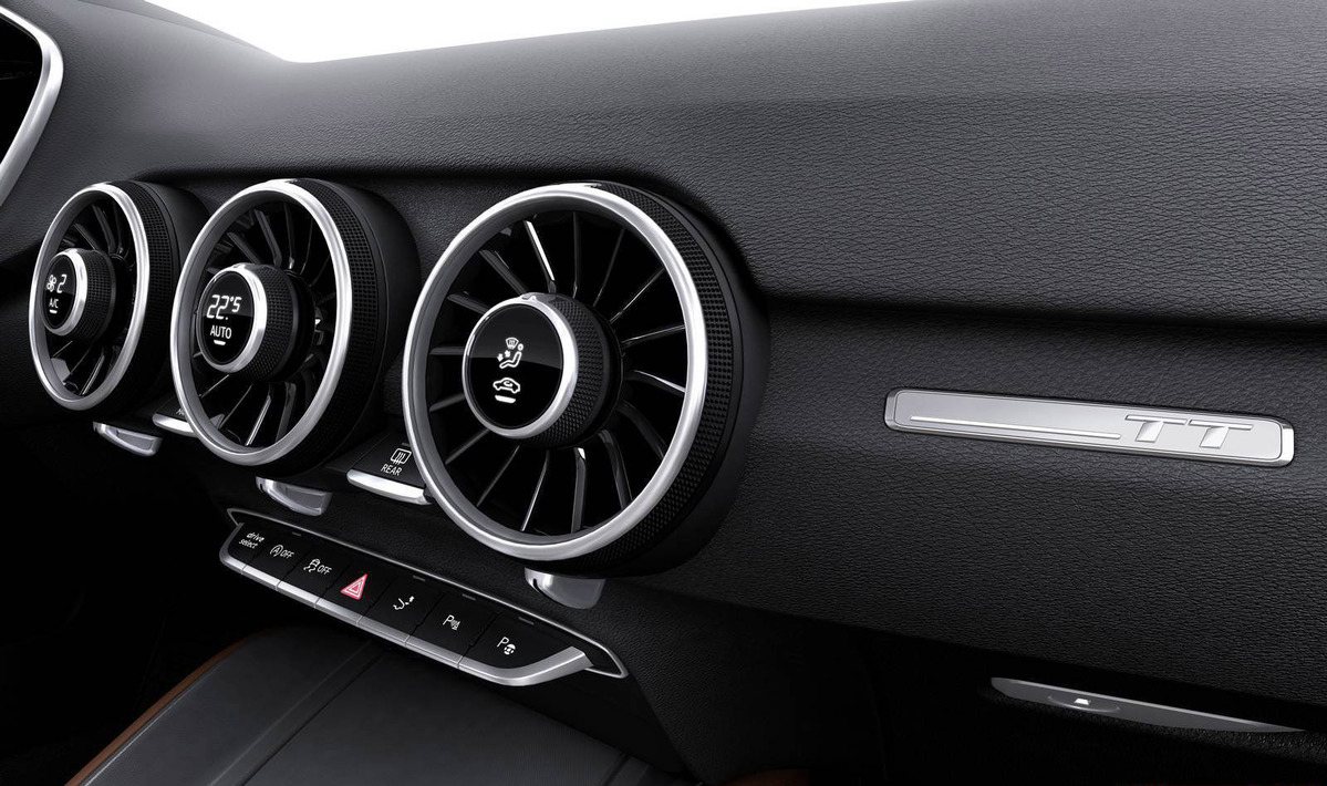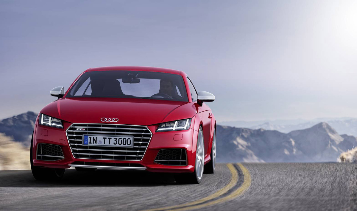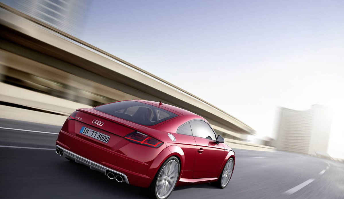 TT早就已經成為Audi的當家戰略車款,其極易辨視的外觀造型、強烈的線條、流線的曲線,讓人們一眼就能辨識出來,第三代車款在肌肉線條的加強更是不言可喻,在折線的部分更給人熱血沸騰的印象,在車架的部分就可以看出比前世代更加粗曠且寬闊,以車門上部結構來說吧,其突兀的線條使得車體看來明顯的分為雙區,從車窗下緣部分延伸環繞整個頂篷及擋風玻璃下緣,此種設計讓人不由聯想到當家超跑Audi R8,想當初Audi R8的出現也讓人聯想到是Audi TT的放大版本,究竟是誰模仿誰就沒什麼好去探究的,他們本市系出同源。目前預料2015 Audi TT將擁有幾個版本,包括入門版的四缸柴油引擎,擁有185hp最大馬力,另外性能版本TTS則擁有310hp最大馬力,距離他們的出現似乎已經不遠了,還請各位再稍待片刻吧。