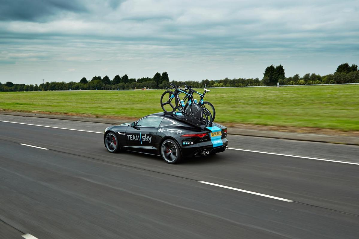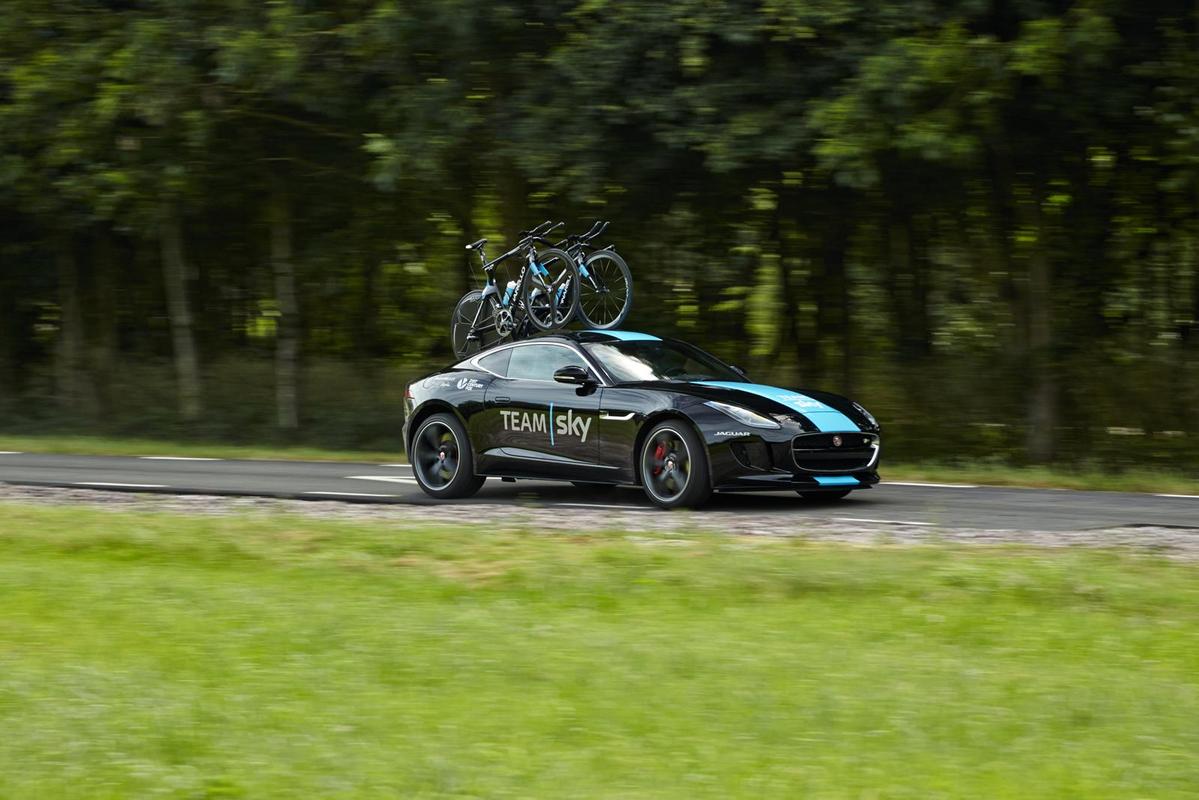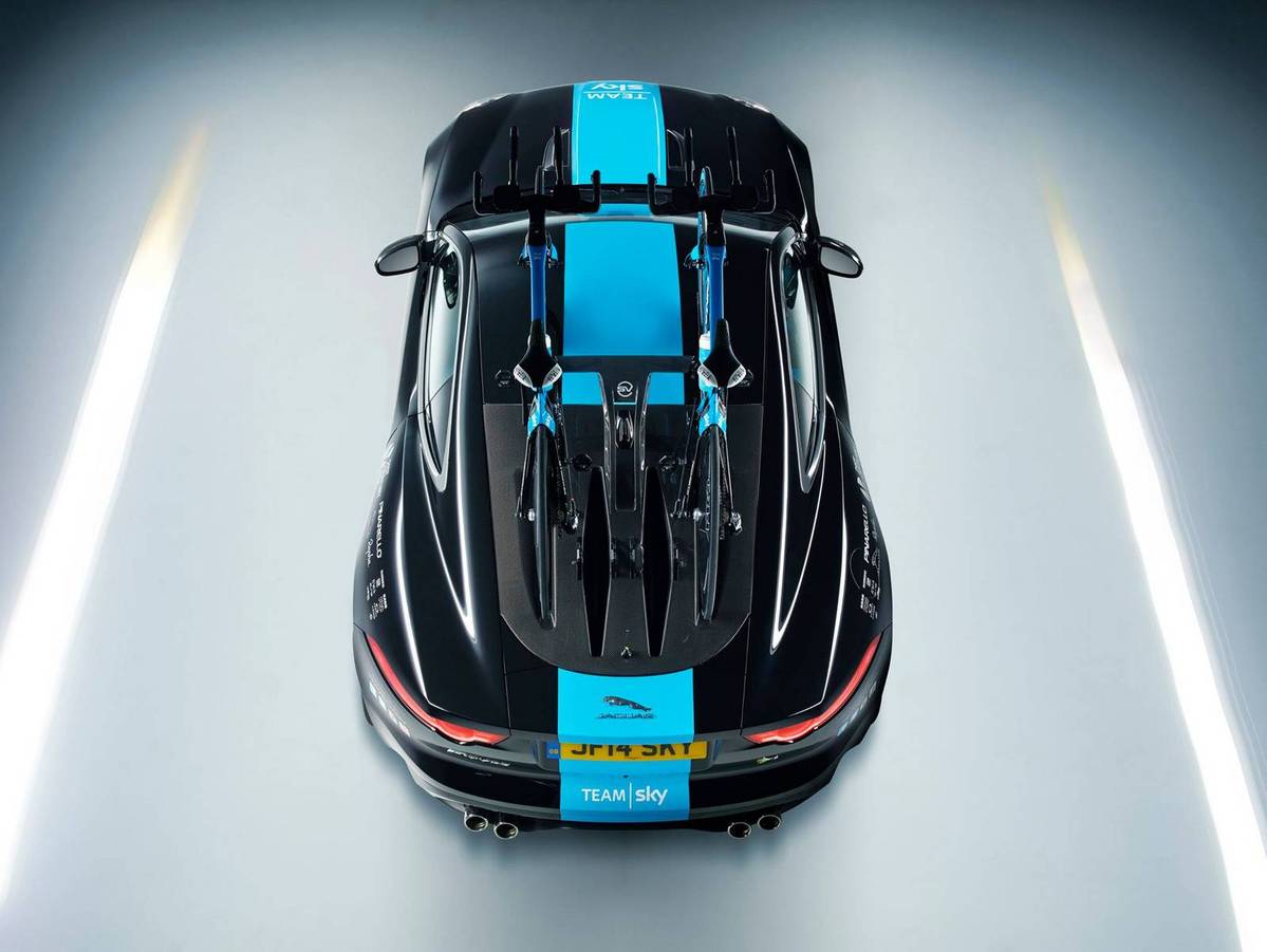 英國車廠Jaguar長年來與自行車隊Team Sky間有著密切關聯,日前更由Jaguar客製化部門Jaguar Special Vehicle Operations操刀、推出一款特仕版本Jaguar F-Type R雙門跑車,除了能運載Team Sky所擁有的Pinarello Bolide TT自行車之外,車身也採用象徵著該知名車隊的藍黑雙色配置,相當獨特。