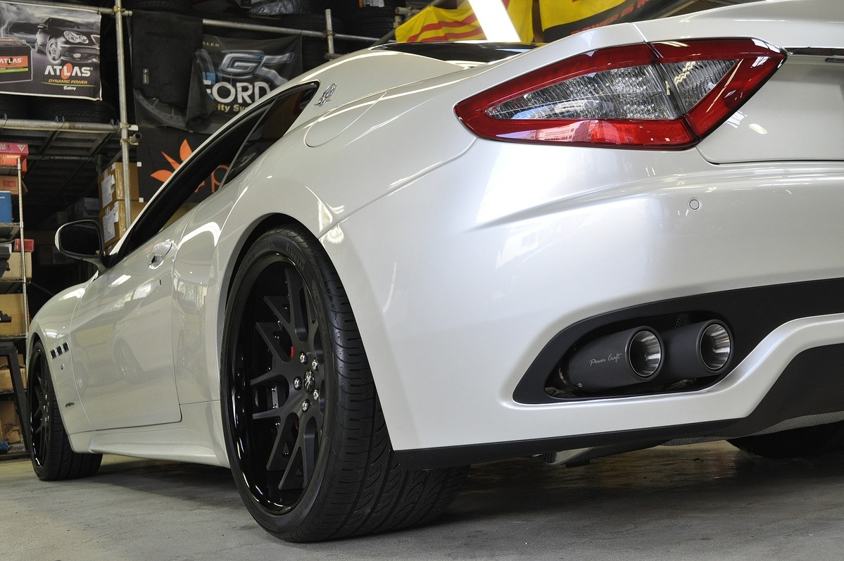 然而,旗艦車款Maserati GranTurismo MC Stradale趨近千萬級距的售價並非所有人都能夠接受,因此也讓不少人選擇購買GranTurismo 4.7 S Auto或是GranTurismo 4.2,再尋求改裝途徑強化愛車。今天帶給各位的是由日本改裝廠Bond Osaka所操刀的白色塗裝Maserati GranTurismo 4.7 Sport Auto,外觀部分用知名品牌Hyper Forged Wheels、型號HF-C7的多片式21吋輪圈搭配Pirelli P Zero高性能跑胎,中心為消光黑色塗裝,外圈則以電鍍拋光黑色處理,另外換裝H&R高低軟硬可調式避震器組將車身降低,再安裝Power Craft高性能排氣管,展現出奔放的熱情跑格。