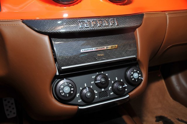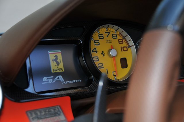 難得一見的是,眼前這部Rosso Dino紅色塗裝的Ferrari SA Aperta出現於美國加州代理商的庫存清單中,選用特殊的Iroko與Cuoio咖啡色two-tone真皮內裝、停車輔助系統、車身同色色內裝飾板、碳纖維套件、燻黑輪圈與隨車真皮旅行組等精緻部品,同時於後視鏡、後駝峰蓋板與頭燈處施以黑色處理,里程數僅有225英里,並且尚在原廠保固期間,喜歡這部限量車款的朋友不妨列為重要參考並與有經驗的車商聯繫、代為引進,與本地略嫌孤單的紅色Ferrari SA Aperta作伴!