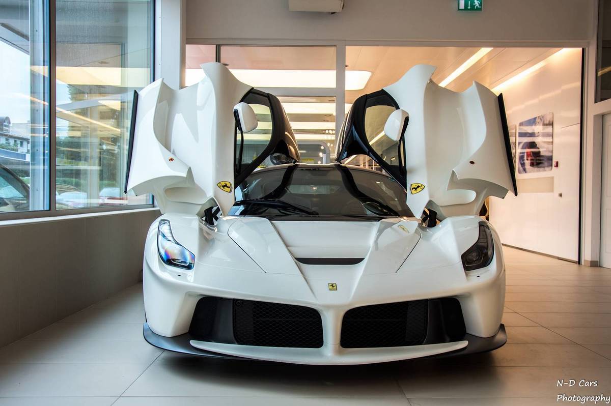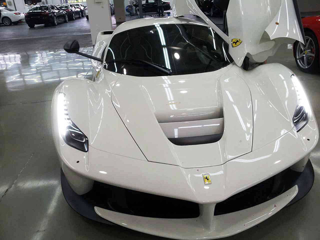 全球限量499部的義大利油電混合超級跑車Ferrari LaFerrari已經於世界各地率續領牌上路,而我們也與各位分享過Nero Pastello黑色、Rosso Corsa紅色、Argento Nurburgring銀色與Blue Tour de France金屬藍色與一部相當特別的Kermit Green綠色塗裝實車,而繼先前以紅色塗裝在中國大陸地區現身後,今天要帶給各位一部由對岸網友所擄獲的Bianco Avus白色塗裝Ferrari LaFerrari,且該部與之前在歐洲地區現身的白色車身、黑色車頂的two-tone配置者不同,採用全車白色塗裝,搭配黑色後視鏡與黑色輪圈,甚至連煞車卡鉗也選用黑色塗裝,相當與眾不同。