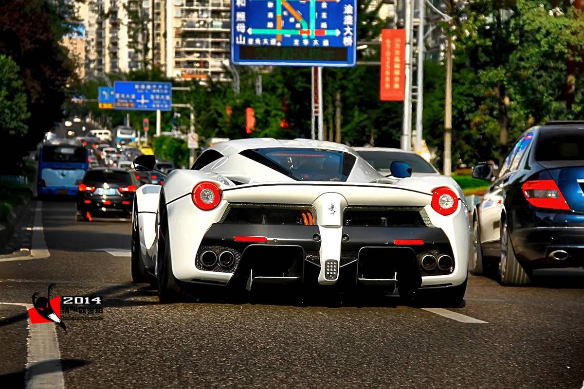 根據國外媒體的說法,上圖這部先前被攝影專家N-D Cars Photography所拍到的白色Ferrari LaFerrari乃知名美國重金屬搖滾樂隊范·海倫(Van Halen)前主唱薩米·哈加(Sammy Hagar)所擁有,而下圖則是對岸網友於當地所擄獲的白色塗裝Ferrari LaFerrari。有趣的是,先前有傳聞指出Sammy是在中國大陸購買LaFerrari,當然,一位美國歌手在中國地區購買Ferrari LaFerrari的情況可能會讓許多讀者們相當質疑,畢竟大多LaFerrari都是被安置在車主居住地,不過,當中國商標與街景不斷地出現在耗資數億 元拍攝之知名電影變形金剛四(Transformers 4)的各片段中,美國人在中國買部LaFerrari似乎就不會太奇怪了,搞不好他就是想把它擺在中國,偶爾開開。無論這部「白馬王子」的主人是誰,光憑他當初在訂車時所決定的配置,便讓人感受到其不凡品味。
