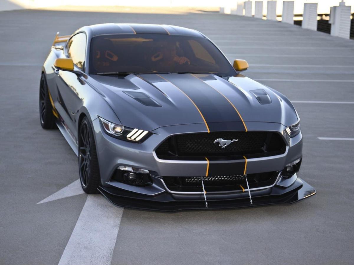 外觀方面,這部特別量身打造的Ford Mustang GT以F-35閃電II攻擊戰鬥機(Lockheed Martin F-35 Lightning II)為靈感,全車施以消光鈦灰色塗裝搭配黃色後視鏡蓋、「F-35」字樣與局部車身彩繪,並在車側貼上各國國旗,同時加裝大型碳纖維前下巴與後下擾流板等部品,也換上來自Forgiato Wheels的輕量化黑色輪圈,搭配黃色塗裝的煞車卡鉗,座艙內的Recaro賽車座椅也以對比的黃黑雙色處理,再加上特仕版本腳踏墊、儀表板與中控台,呈現出宛如F-35閃電II攻擊戰鬥機的霸氣氛圍。