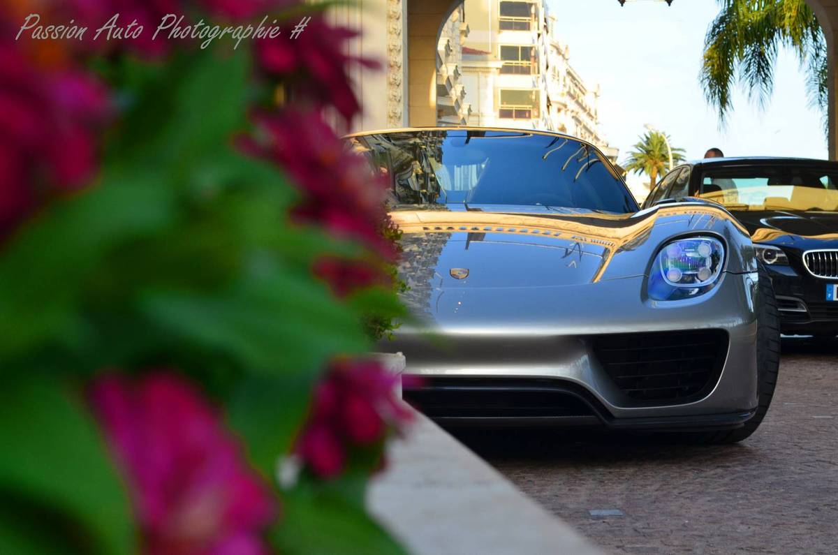在此帶給各位一部由攝影專家Passion Auto Photography於法國坎城(Cannes, France)著名飯店InterContinental Carlton Cannes門口所擄獲的Porsche 918 Spyder,而採用素淨銀色塗裝的它原廠配有Weissach Package進階套件,並在車型字體與煞車卡鉗等處選擇螢光綠色處理,頗具巧思。