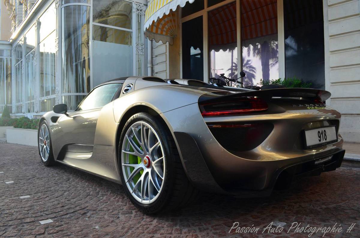 迎接Ferrari LaFerrari與McLaren P1兩部強悍油電混合超級跑車,德國車廠祭出全新Porsche 918 Spyder,斯圖加特(Stuttgart)的工程師們不僅將4.6升V8引擎調校到極致,另外在前軸與後軸分別裝上一顆電動馬達,並且能夠切換獨立或合力運作等模式,達到887HP的最大綜效馬力值,改良型的Porsche Doppel Kupplung (PDK)七速雙離合器變速箱則是擔綱後輪的動力傳輸。 進階版本的Porsche 918 Spyder配有原裝Weissach Package運動套件,在原廠施以輕量化工程而減重36公斤、配有鋁鎂合金輪圈、部分鈦合金材質煞車系統與碳纖維拉桿的助益下,百里加速僅需2.6秒便可完成,較普通版本快上0.2秒,由靜止加速至時速200km/hr也僅需7.2秒(較普通版本快0.5秒)、衝刺到時速300km/hr也僅需19.9秒(比普通版本快2.1秒),顯然是預算足夠的買家必定選配的高性能套件。同時,於德國紐柏林賽道(Nurburgring Nordschleife)創下6分57秒佳績便是一部配有Weissach Package的Porsche 918 Spyder,相當強悍,也難怪該套件雖然被原廠列為選用配備,但幾乎每位Porsche 918 Spyder車主都毫不猶豫地加選,彷彿已成為標準配備。