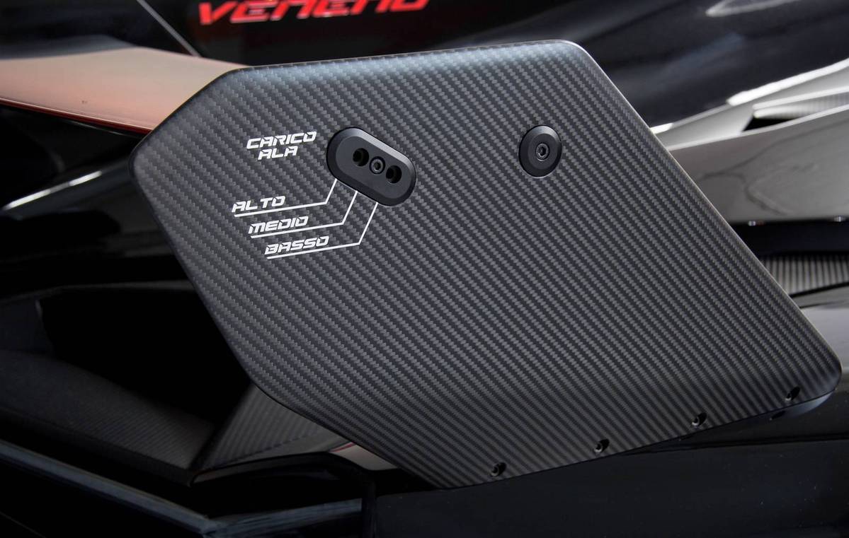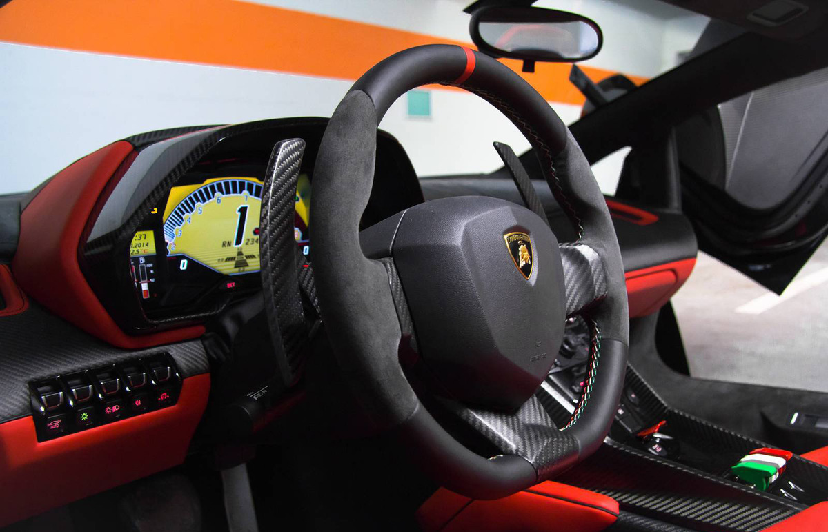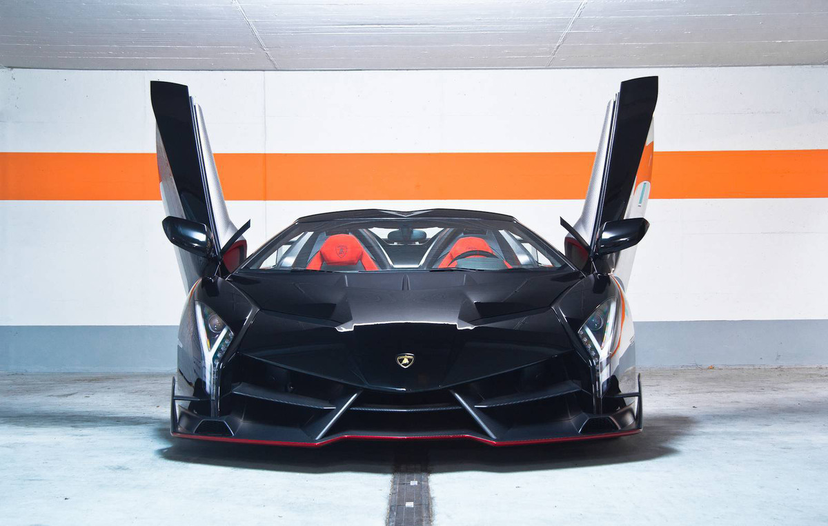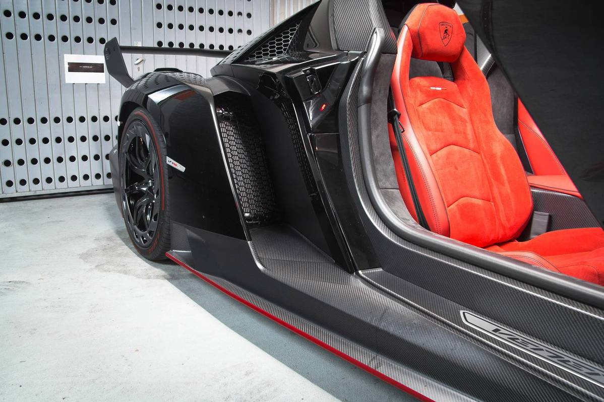 這部車身編號「#1」的敞篷版本Lamborghini Veneno Roadster乃全球限量九部當中之一,車身採用黑色塗裝搭配紅色飾條,內裝則以紅黑雙色麂皮與真皮交織而成,視覺效果極為流暢。動力部分,Lamborghini Veneno Roadster搭載6.5升V12自然進氣引擎,最大馬力為750HP,藉由大量碳纖維輕量化材質讓車重控制在1,490公斤,進而達到1.99 kg/HP的優異馬力重量比,輔以強化版本ISR智慧型變速系統與四輪傳動裝置,百里加速僅需2.9秒便可完成(雙門版本為2.8秒),極速可達355km/hr,相當強悍。
