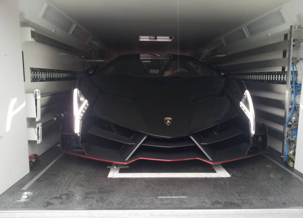 前陣子我們才與各位讀者分享身披黑色塗裝、被送往德國(Germany)的限量敞篷超級跑車Lamborghini Veneno Roadster,而如今策畫引進的幕後團隊揭曉,他們便是當地知名車商SEMCO GmbH。日前,在順利將這部昂貴超跑安置妥當後,SEMCO GmbH委託專業媒體GTSPIRIT替它進行拍攝,趕緊與各位分享。根據GTSPIRIT的說法,原本他們是安排進行動態攝影與影片錄製,然而在車輛運抵公司的時候,當地下著不小的雨,再加上Lamborghini Veneno Roadster沒有可拆式硬頂設計,因此只能替這部售價高達440萬美元的敞篷超跑進行室內拍攝工作。