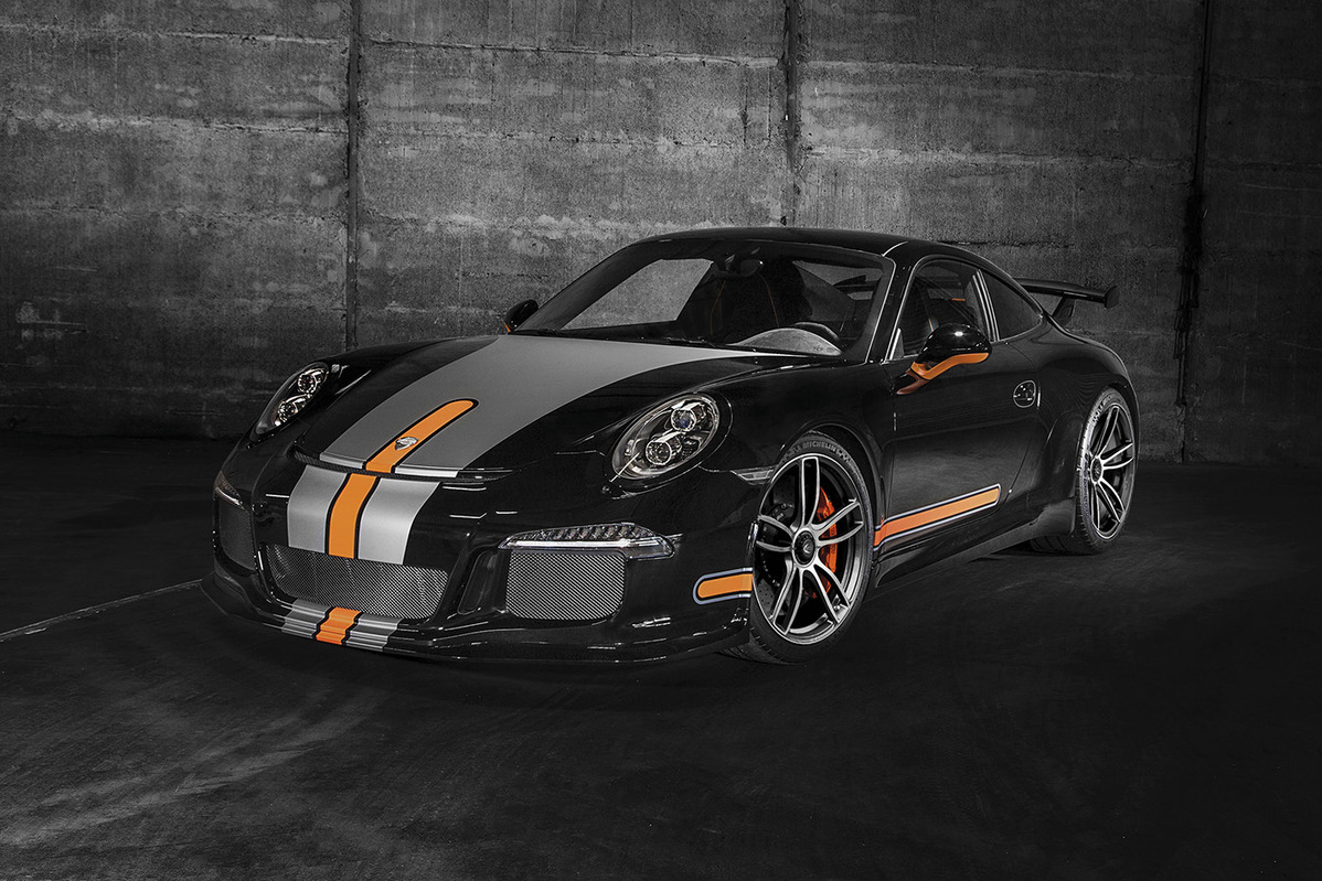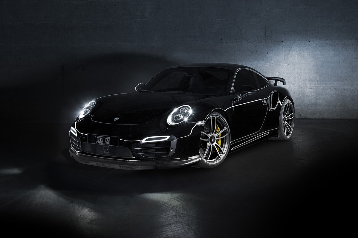 在原廠未改裝的情況下,2014年新款Porsche 911 Turbo原廠搭載3.8升水平對臥六缸雙渦輪增壓引擎,最大馬力為520HP,扭力峰值有67.3kgm,輔以PDK雙離合器變速箱與跑車升級套件,百里加速僅需3.2秒便可完成,更高階的Turbo S則僅需3.1秒。,皆已相當強悍。然而,身為Porsche改裝圈內領導品牌,TechArt從不怠慢,從埃森車展結束後便閉門造車,而強調耐用度與妥善率的他們,最後決定以代號TA091/T1.1的動力套件、將Porsche 991 Turbo S的最大馬力提升至620HP,若搭配原廠Sport Plus模式,這部TechArt 991 Turbo S能夠於2.8秒由靜止加速至時速100km/hr,相當強悍。外觀部分,TechArt為這部黑色渦輪跑車裝上專為Turbo車型開發、擁有流體力學效果的前下巴,另外加裝頭燈周邊環形飾蓋、可以修飾腰身曲線的側裙組、後上擾流尾翼與後下擾流板等部品。