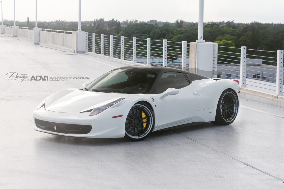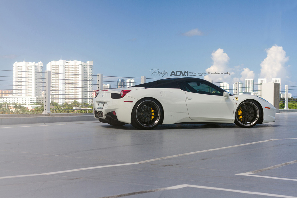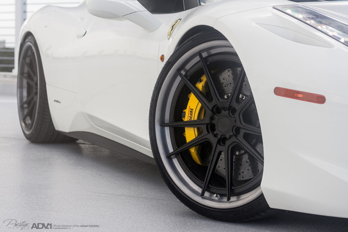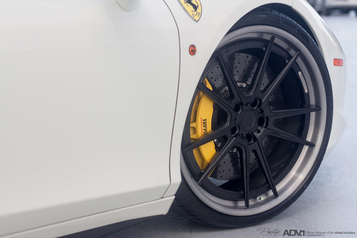 配備方面,由於Ferrari原廠提供給458 Italia與Spider的原廠選配輪圈款式並不多,因此想要更換輪圈的Ferrari 458車主越來越多。今天提供給各位參考的是眼前這台Bianco Avus白色塗裝Ferrari 458 Spider,選用知名品牌ADV.1 Wheels出品、型號ADV5.2 TS SL的輕量化輪圈,尺寸為前21x9.5J、後22x12.5J的前後配設定,輪圈中心以消光黑色塗裝上色,外圈則以槍灰色處理,另將車頂施以消光黑色包膜,搭配黃色煞車卡鉗,呈現出俐落有型的特殊視覺效果。另外,改裝廠也替這部敞篷超級跑車換上Novitec短彈簧將車身降低,而出廠時便選配前懸吊挺舉功能的它則是不須過度擔心車身高度過低的問題。