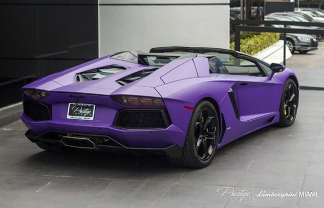 今天帶給各位一部由美國邁阿密(Miami, United States)知名超跑車商Prestige Imports所提供的稀有消光紫色Lamborghini Aventador LP700-4 Roadster敞篷跑車,內裝採用黃黑雙色真皮包覆,搭配黃色煞車卡鉗與亮面黑色輪圈,2013年出廠的它為2014年款式,目前僅行駛約1,292英里,優異的狀況直逼新車,開價約為美金55萬,相當划算且能夠避免首年之龐大折舊費用,有興趣的讀者請把握。