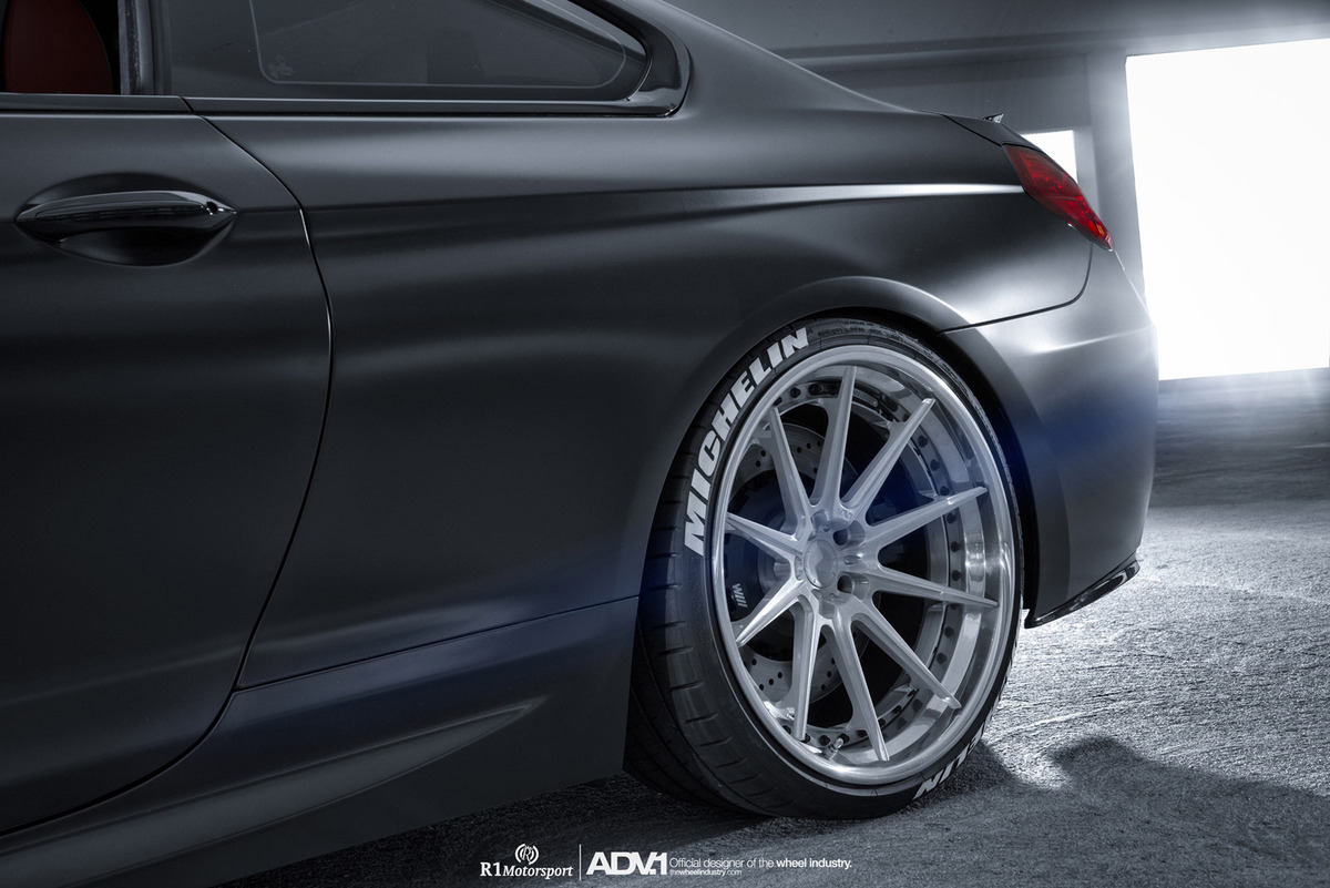 今天帶給各位一部由改裝廠R1 Motorsport所操刀的消光黑色BMW F13 M6雙門跑車,外觀加裝碳纖維前下巴與後下擾流板等部品,另外換裝知名品牌ADV.1 Wheels、型號ADV10 DS SL的輕量化輪圈,中心以手工刷痕處理,外圈則為電鍍拋光式樣,尺寸為前21x10J、後21x11J的前後配規格,搭配Michelin Pilot Super Sport高性能跑胎,再透過高低軟硬可調式避震器組的換裝將車身降低,營造出獨特的霸氣風範。