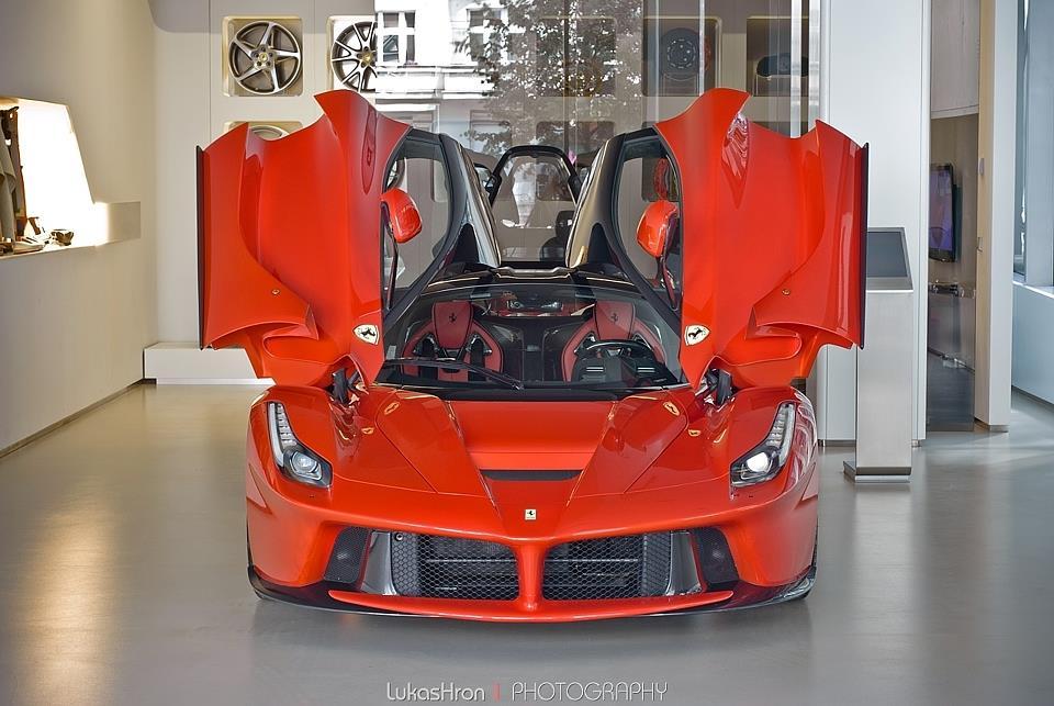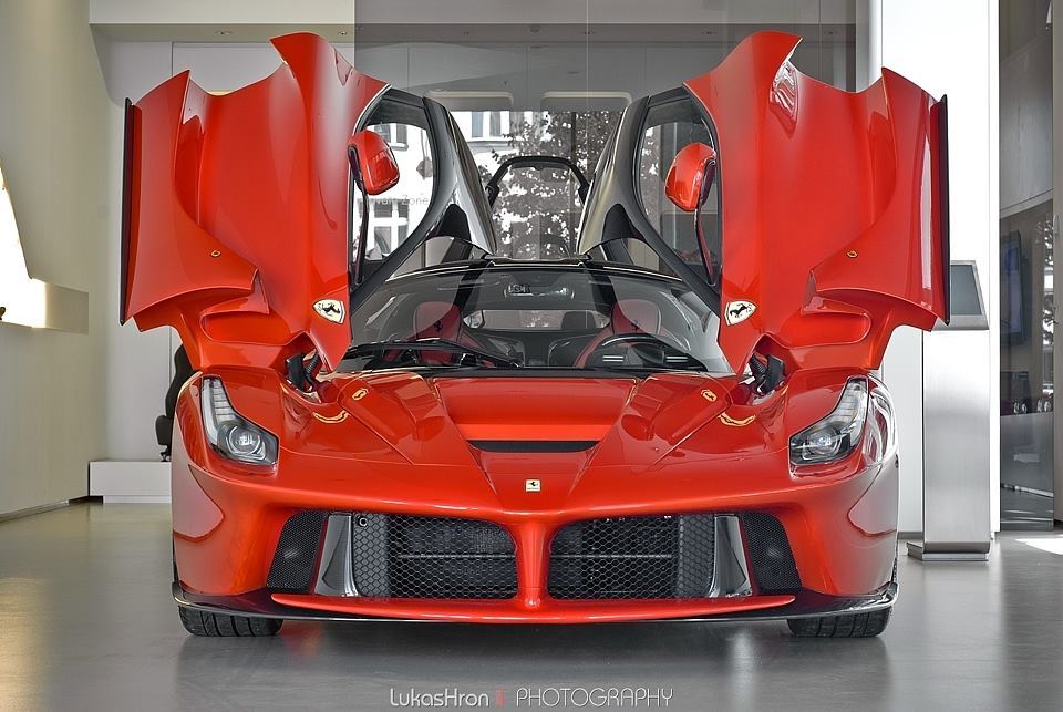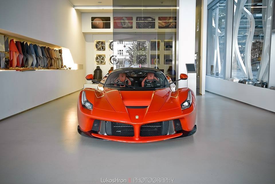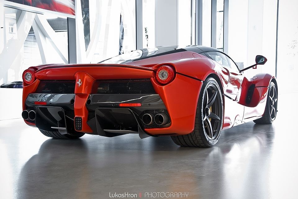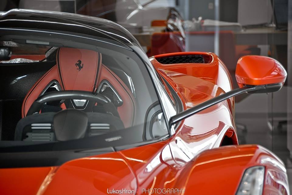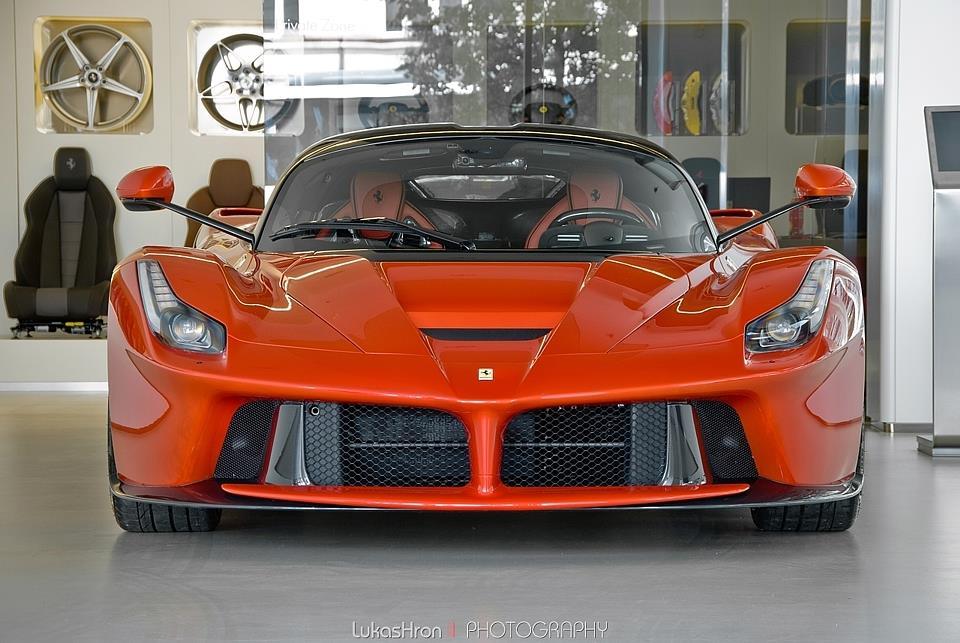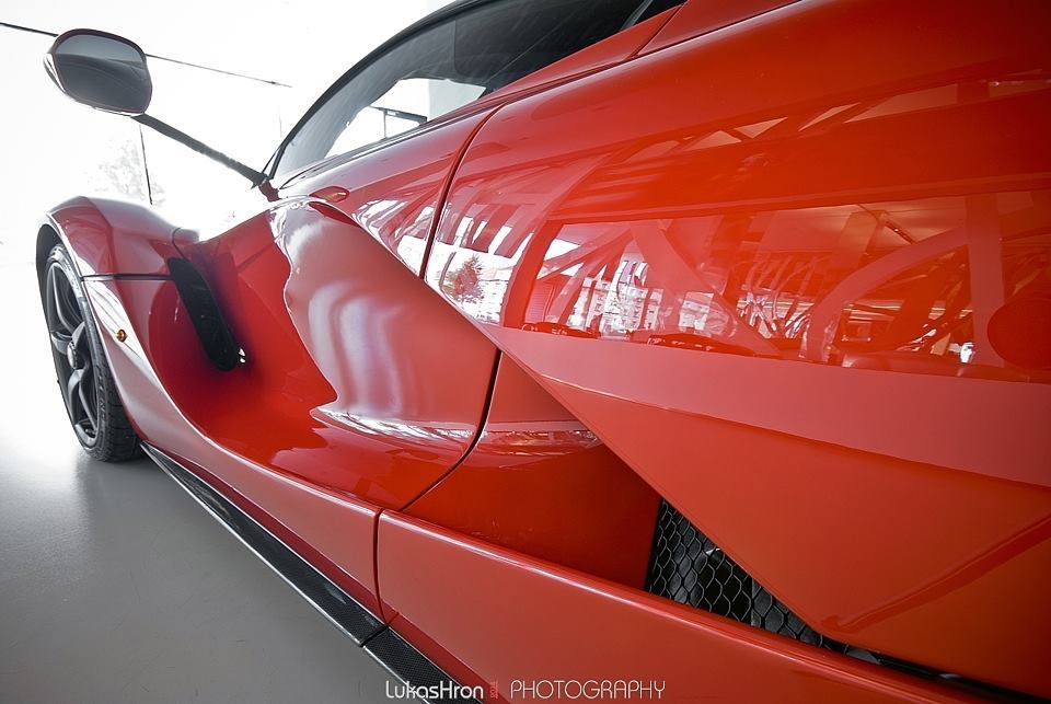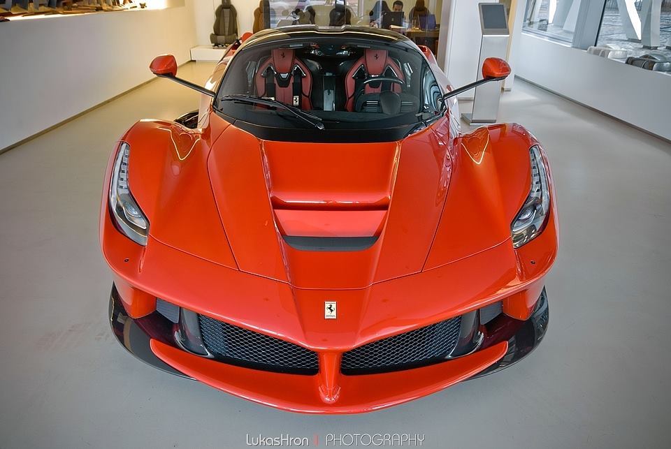 眾所周知,全球將只有499位幸運且富裕的人會拿到限量油電混合超級跑車Ferrari LaFerrari,而目前他們的愛車也陸續在世界各地現身。隨著美國(USA)、加拿大(Canada)、英國(England)與瑞典(Sweden)等地陸續出現首部Ferrari LaFerrari的同時,Ferrari LaFerrari各種角度的外觀照片各位讀者們可能已經看多了,今天要與各位分享的則是由攝影專家Lukas Hron Photography所提供的局部特寫照片。拍攝場景為捷克共和國(Czech Republic)首都布拉格(Prague)的代理商展示間當中,因此能夠見到Ferrari LaFerrari進行例行性充電時儀表顯示的畫面,而其原廠充電器也與其他款式Ferrari車種不同,體積較大也採用亮面鐵灰色覆蓋,頗具質感也相當特別。據說,該部採用Rosso Corsa紅色塗裝搭配黃色煞車卡鉗與槍灰色輪圈的Ferrari LaFerrari乃捷克當地第二部抵達境內者,正在等候尚在國外出差的車主回國後前往交車。身為現役Ferrari車種的霸主,Ferrari LaFerrari搭載6.3升V12汽油引擎與電動馬達,汽油引擎部分能於9,000rpm時提供800HP馬力與71.4kgm扭力,電力部分則是能貢獻163HP馬力與27.5kgm扭力,使得它的綜效最大馬力達到963HP,百里加速僅需不到3秒、由靜止加速至時速300km/hr不須15秒、極速超過350km/hr,相當強悍。