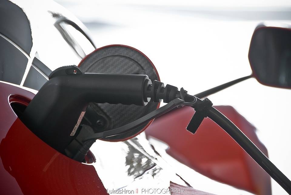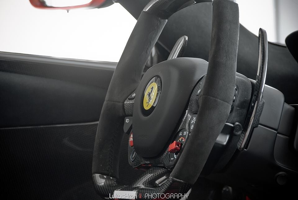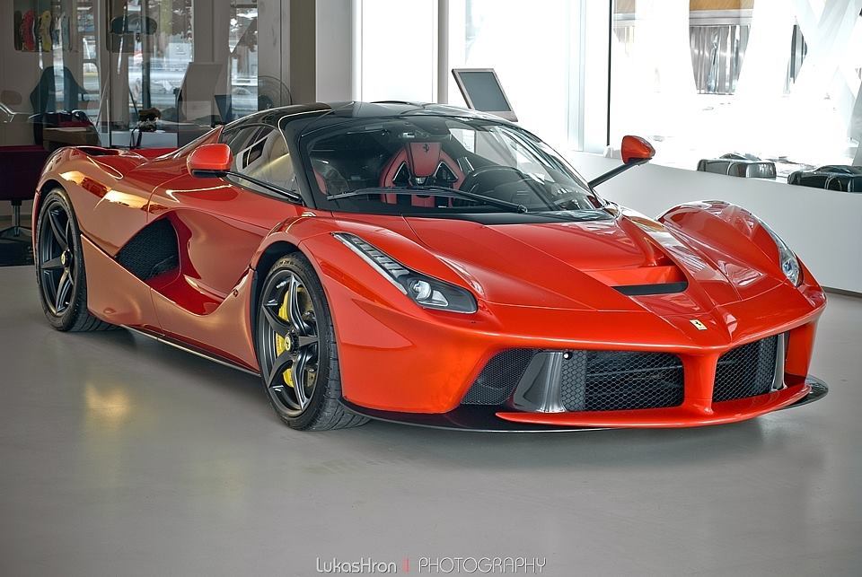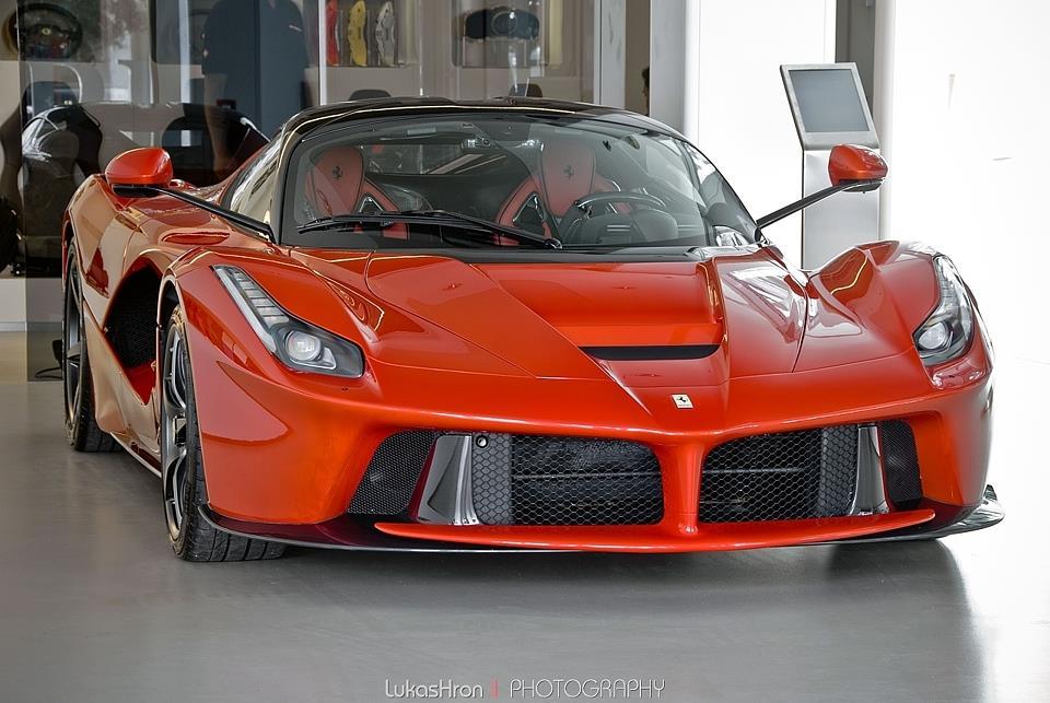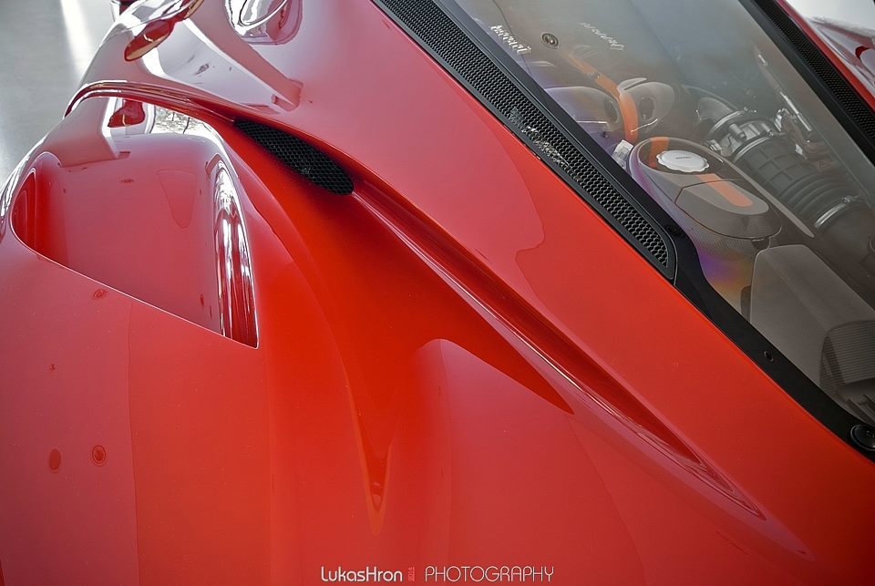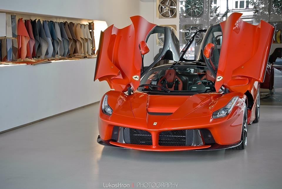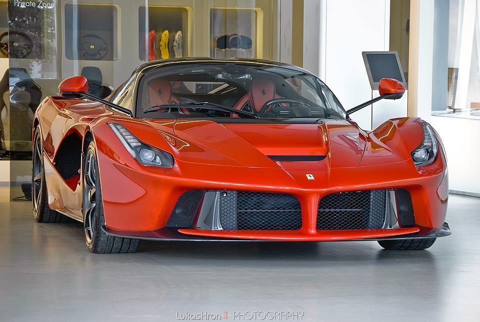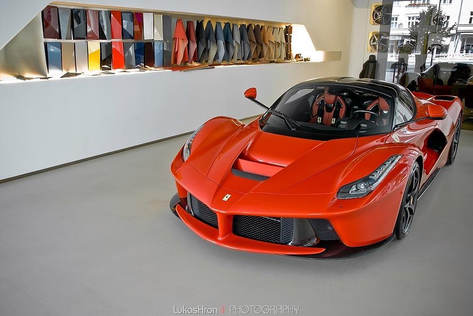 眾所周知,全球將只有499位幸運且富裕的人會拿到限量油電混合超級跑車Ferrari LaFerrari,而目前他們的愛車也陸續在世界各地現身。隨著美國(USA)、加拿大(Canada)、英國(England)與瑞典(Sweden)等地陸續出現首部Ferrari LaFerrari的同時,Ferrari LaFerrari各種角度的外觀照片各位讀者們可能已經看多了,今天要與各位分享的則是由攝影專家Lukas Hron Photography所提供的局部特寫照片。拍攝場景為捷克共和國(Czech Republic)首都布拉格(Prague)的代理商展示間當中,因此能夠見到Ferrari LaFerrari進行例行性充電時儀表顯示的畫面,而其原廠充電器也與其他款式Ferrari車種不同,體積較大也採用亮面鐵灰色覆蓋,頗具質感也相當特別。據說,該部採用Rosso Corsa紅色塗裝搭配黃色煞車卡鉗與槍灰色輪圈的Ferrari LaFerrari乃捷克當地第二部抵達境內者,正在等候尚在國外出差的車主回國後前往交車。身為現役Ferrari車種的霸主,Ferrari LaFerrari搭載6.3升V12汽油引擎與電動馬達,汽油引擎部分能於9,000rpm時提供800HP馬力與71.4kgm扭力,電力部分則是能貢獻163HP馬力與27.5kgm扭力,使得它的綜效最大馬力達到963HP,百里加速僅需不到3秒、由靜止加速至時速300km/hr不須15秒、極速超過350km/hr,相當強悍。