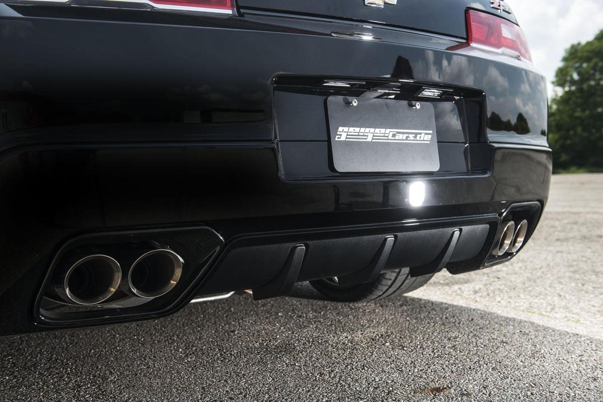 附帶一提,「Z/28」這個型號,是雪佛蘭(Chevrolet)的傳統,代表著毫無妥協的熱血,如今再度現身,對於喜歡美式肌肉車的朋友來說,相當令人振奮。另外,新款Chevrolet Camaro Z/28配有專屬Brembo陶瓷煞車系統與黑色處理輕量化輪圈,同時透過大量輕量化工程成功減重,操控性能大幅度提升。外觀方面,Chevrolet Camaro Z/28配有專屬空力套件,包含前下巴、後下擾流板與後擾流尾翼等部品,相當霸氣,而改裝廠GeigerCars也保留著原廠外觀配置。