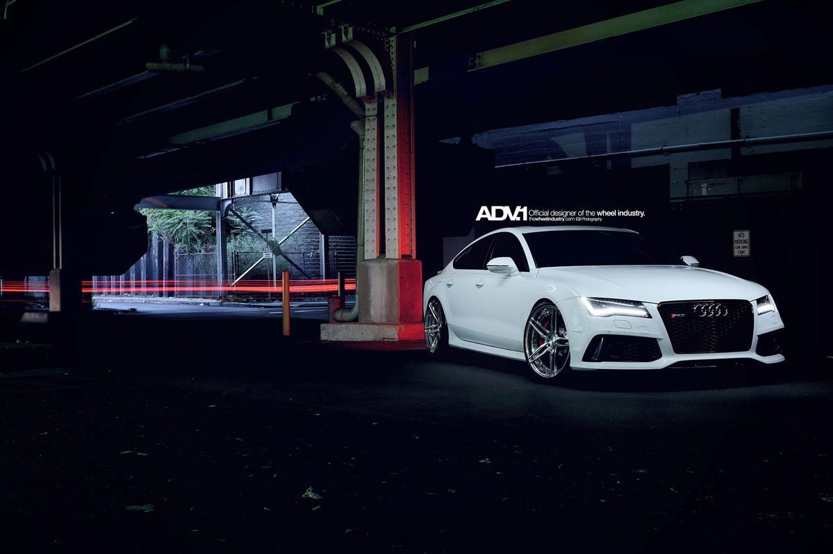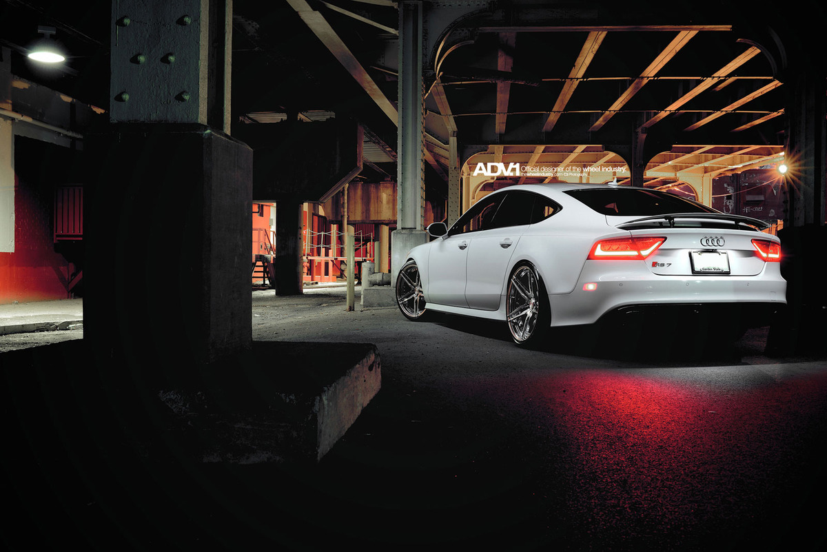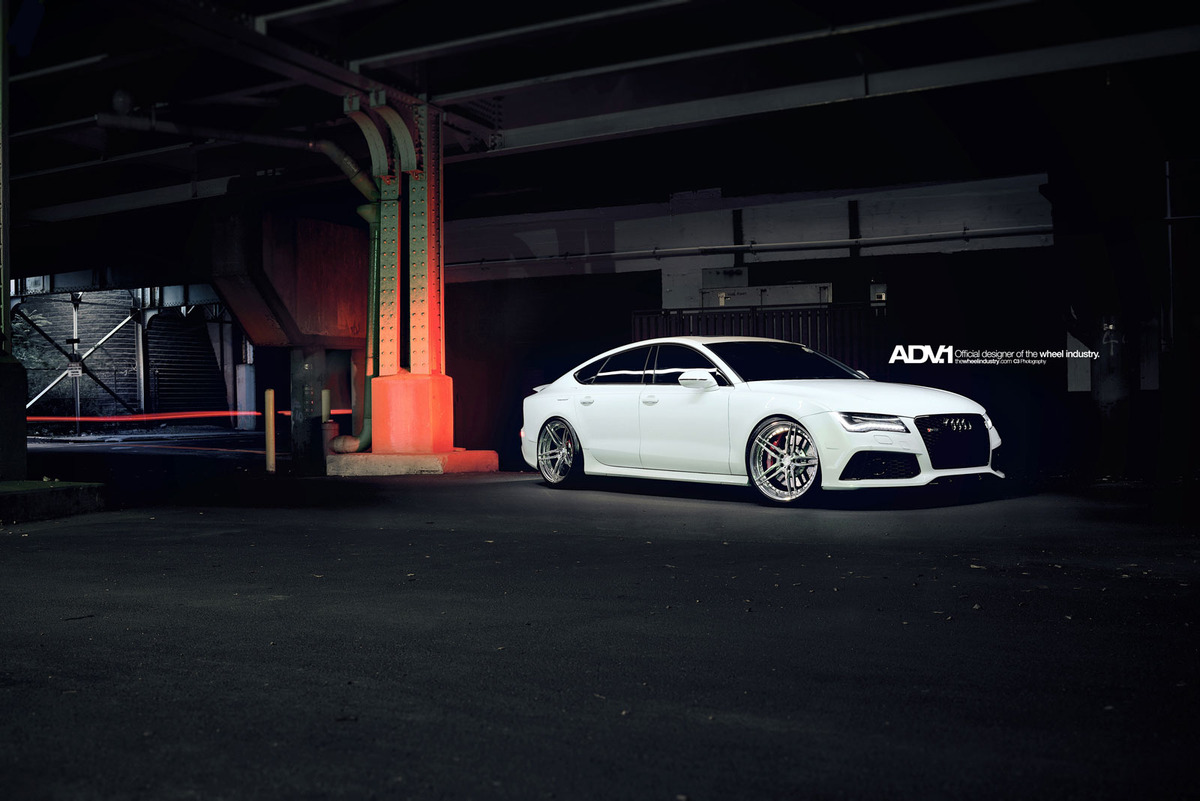 今天帶給各位一部由白色塗裝的Audi RS7,車身採用亮眼的白色塗裝,搭配出廠時選配的黑色套件與換裝的碳纖維後視鏡蓋,再選用知名品牌ADV.1 Wheels出品、型號ADV5.0M V2 CS的輕量化輪圈,圈面採用電鍍拋光處理,尺寸為前21x10.5J、後21x11J的前後配規格,搭配Pirelli P Zero高性能跑胎,再透過換裝高低軟硬可調式避震器組將車身降低,營造出帥勁滿點的動感跑格。