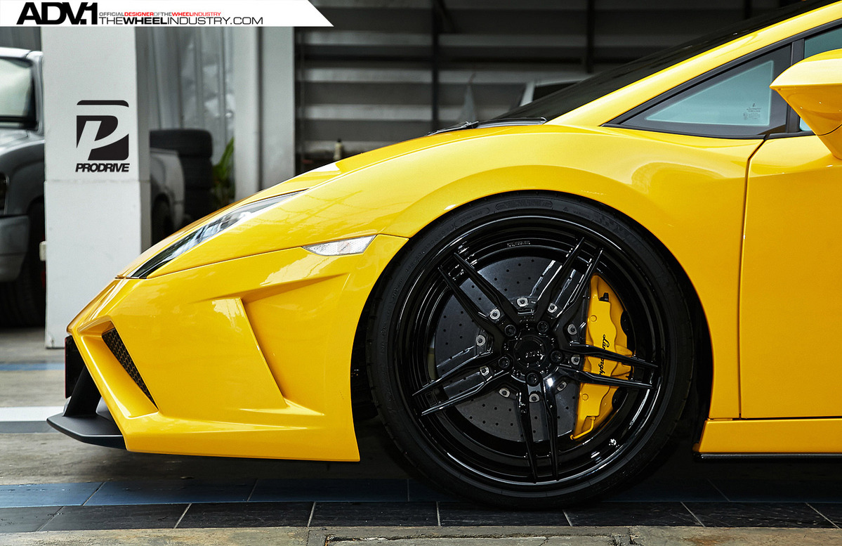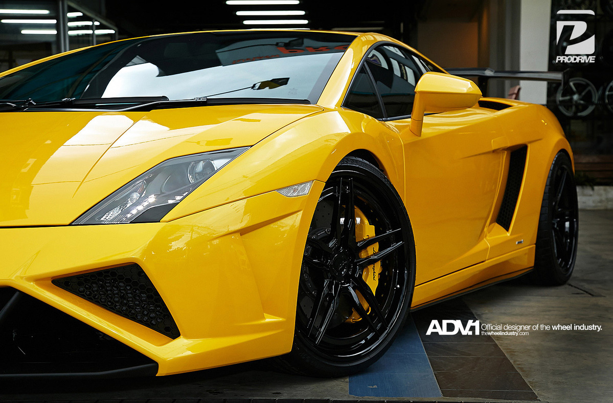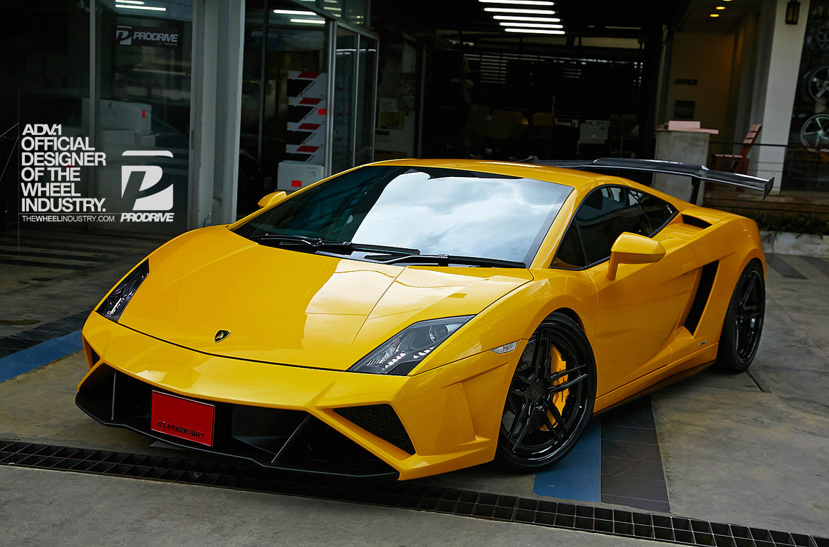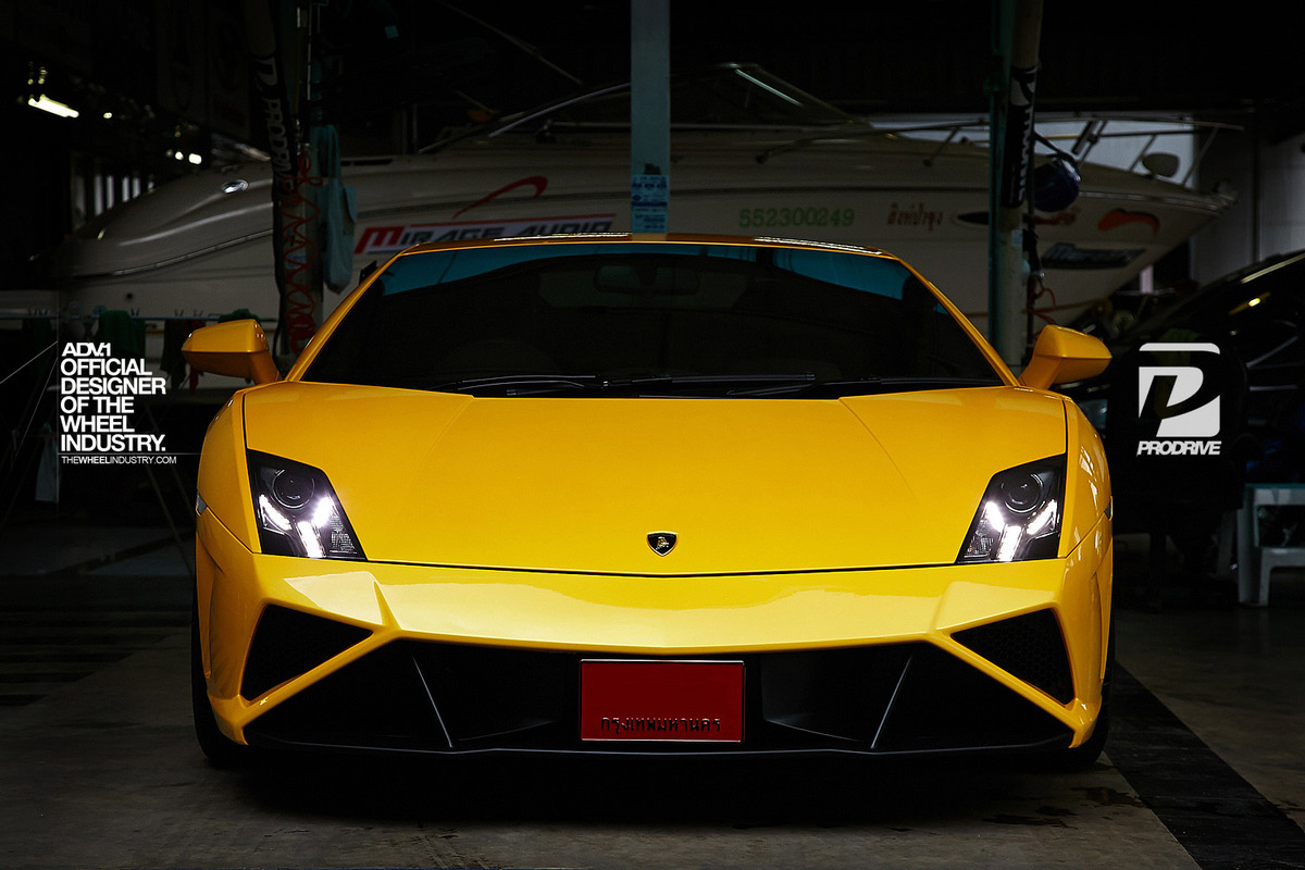 車身採用Arancio Borealis橘黃色塗裝的它乃由泰國(Thailand)著名改裝廠Prodrive所操刀,換裝知名品牌ADV.1 Wheels、型號ADV05 TS CS的輕量化輪圈,規格採用前20x9J、後20x12J的前後配設定,搭配Michelin Pilot Super Sport高性能跑胎,輪圈以亮面黑色塗裝處理,整體搭配得宜。除此之外,Prodrive也替這部末代Gallardo換上LP570-4 Squadra Corse的前保桿、碳纖維側裙組與Super Trofeo廠車後擾流尾翼等部品,再透過高低軟硬可調式避震器組的換裝將車身降低,同時換上效率絕佳的鈦合金排氣管,展現出這部末代Gallardo的絕美英姿。