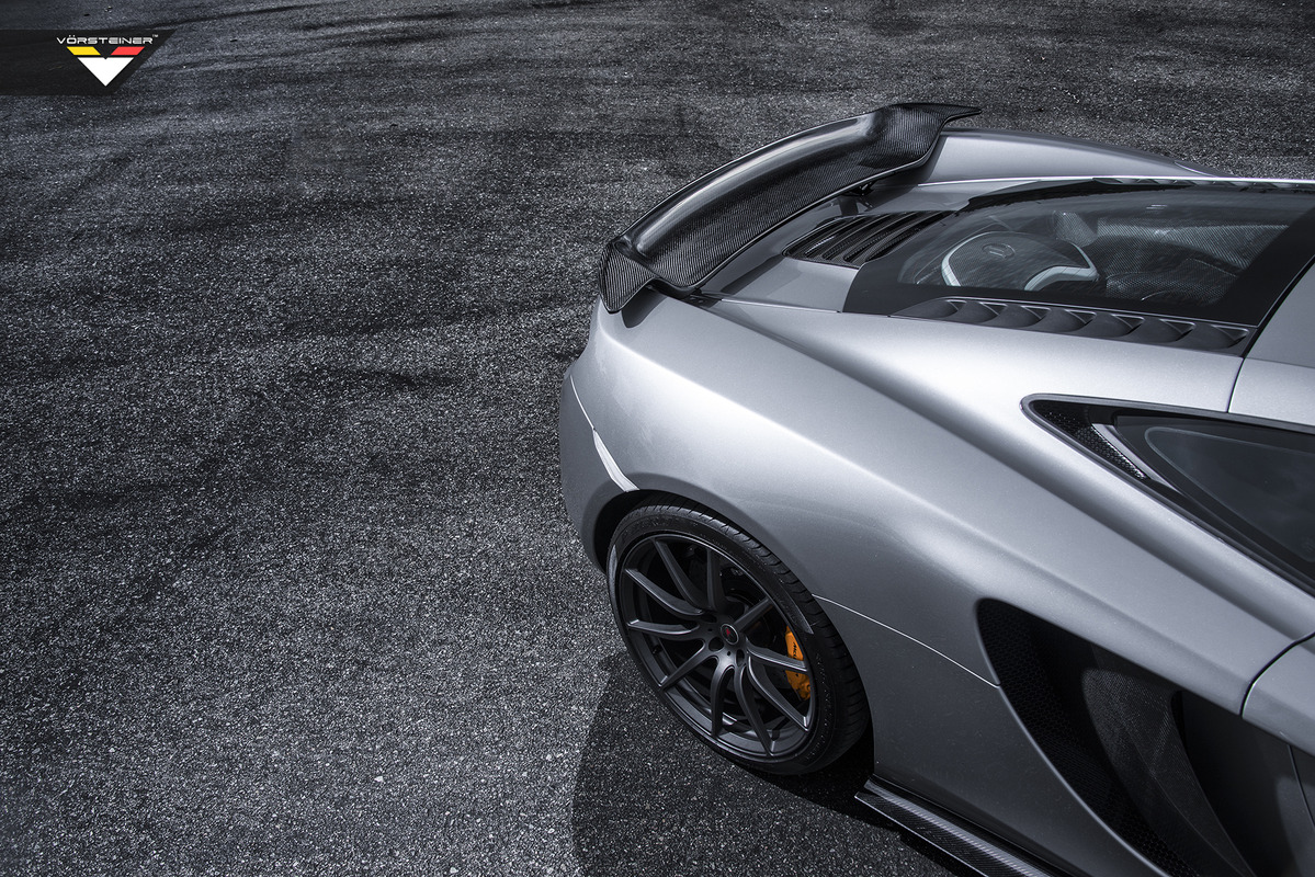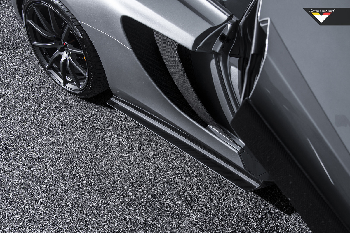 Vorsteiner把全車改裝的12C命名為McLaren MP4-VX,空力套件部分包含碳纖維材質打造而成的前保桿、後保桿、碳纖維側邊進氣口飾蓋與兩片式側裙,日前更新增造型獨特的後擾流尾翼,更添整體感,而其高端的質感讓人有宛如原廠出品般的錯覺,而保留著原廠輕量化放射狀輪圈的展示車也別具風味。可以預見的是,針對全新的McLaren 650S,Vorsteiner想必已經在密集籌備當中,相信在不久後便會現身。