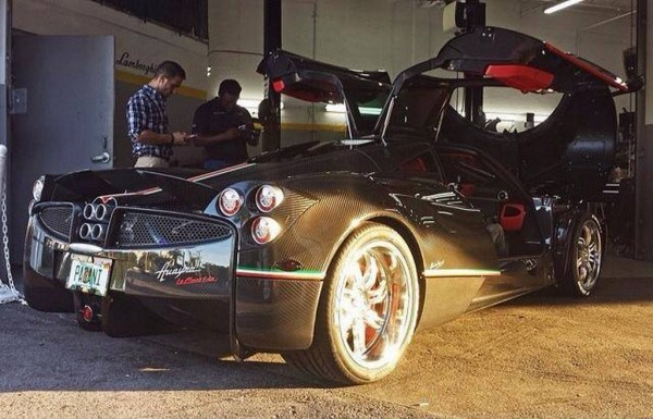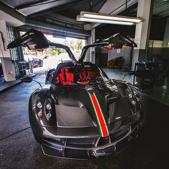 經過多年的努力,身為超級跑車最大市場之一的美國終於讓義大利超級跑車Pagani進駐,而首批Pagani Huayra也已陸續運抵美國各州,更有數部已完成測試、領到合法車牌並且交到車主手中。先前,我們有與各位分享幾部率先抵達美國境內的Pagani Huayra,其中令人印象深刻的便是一部紅黑配色、由知名超跑收藏家Michael Fux所訂購的Pagani Huayra,而他也已經將愛車安置在車庫當中收藏區。在當時便有知情人士透漏,緊接著上面這部Pagani Huayra之後,更絢麗奪目的版本會在後頭出現,那就是Lamborghini Veneno車主Kris Singh所訂購的客製化Pagani Huayra。沒想到,當時預計是年底才會抵達的它,提前在美國現身,也就是下圖這部樣貌獨特的Pagani Huayra!
