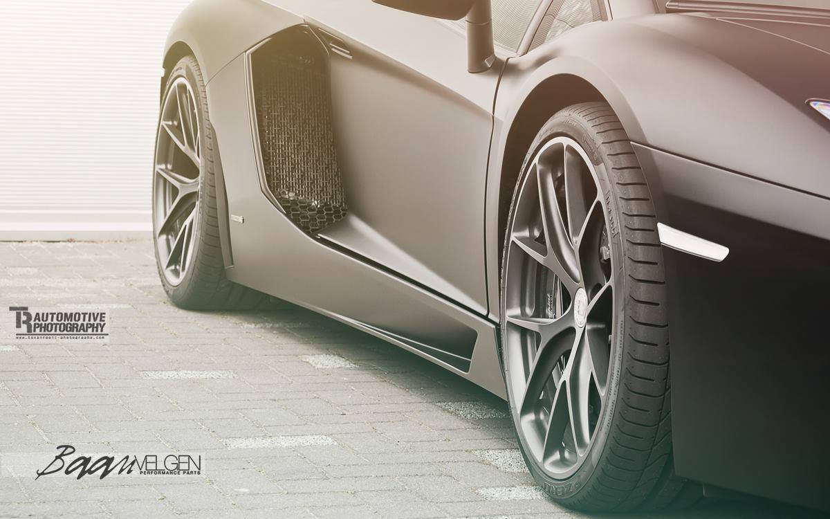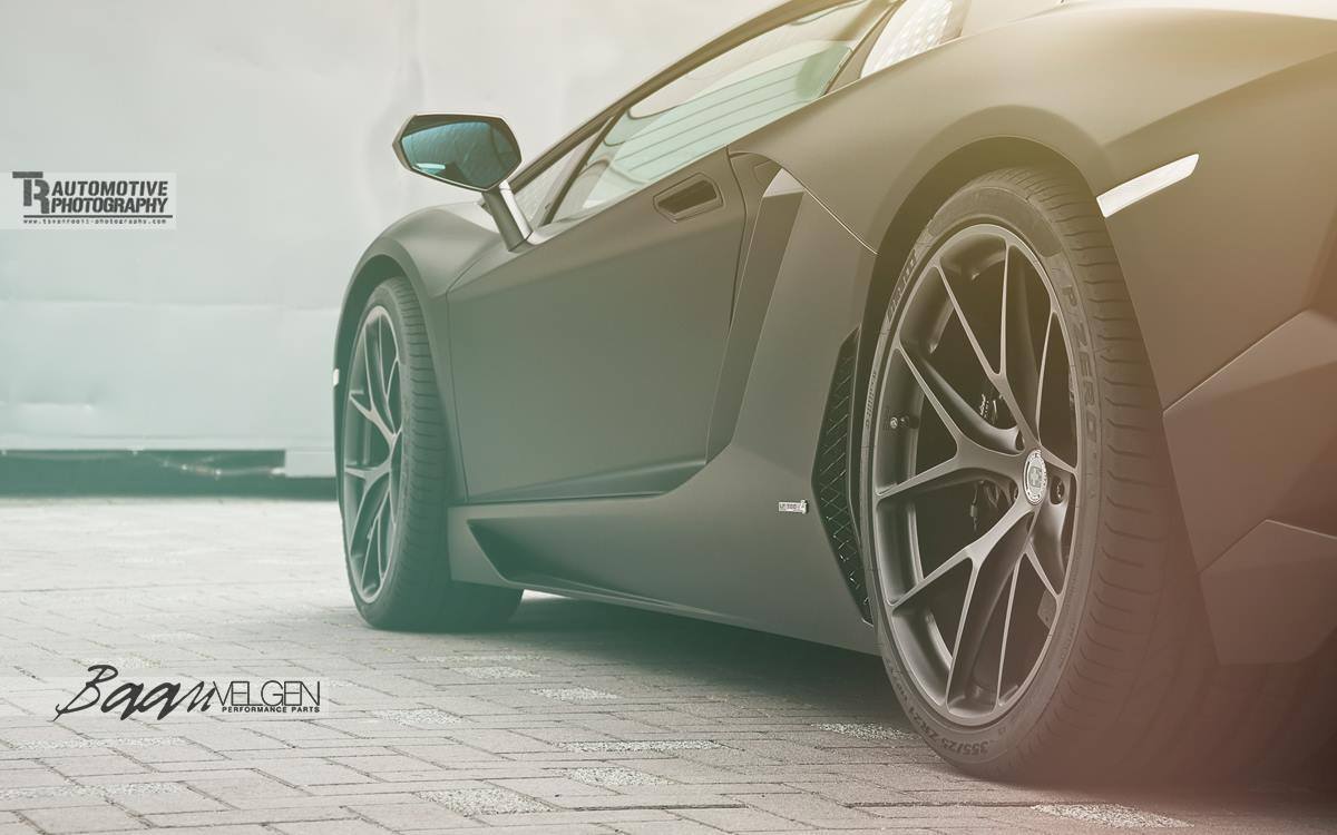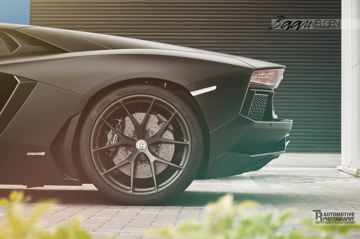 如果不想大刀闊斧地讓愛車進行複雜的拆裝工程,換上一組風格獨具的輪圈也許便能讓Aventador LP700-4散發出迷人丰采。今天帶給各位由改裝廠Baan Velgen所操刀的Lamborghini Aventador LP700-4,車身採用霸氣的消光黑色塗裝,另外選用知名品牌HRE Performance Wheels、型號P101的輕量化輪圈,搭配Pirelli P Zero高性能跑胎,輪圈顏色同樣為肅殺氣氛較重的消光黑色,與黑色煞車卡鉗共同創造簡單流暢的視覺效果,整體搭配得宜。