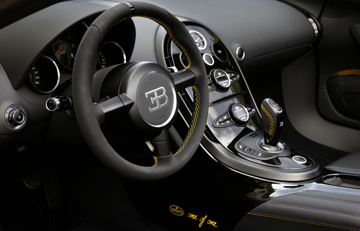 除此之外,所有六款傳奇版本Bugatti Veyron Grand Sport Vitesse都分別限量三部,相當稀有,但是對於追求完美獨特的金字塔頂端買家來說,「全球唯一」才是王道,而這位不願妥協、曾經考慮過購買Legend Edition傳奇版本的多金買家最後便向Bugatti訂製一部取名「1 of 1」的Grand Sport Vitesse。外觀部分,這部特仕車款在車身與輪圈皆採用黃色與黑色的組合,以黑色為主軸,再於頭燈上緣連結至A柱、延伸到車身後半截上方等處以耀眼黃色處理,分布範圍與兩色交界手法獨具巧思,而原廠也向該位買家保證將來不會接受顧客訂製跟他一樣的車輛,以確保他入手的是部樣貌空前絕後的Bugatti Veyron Grand Sport Vitesse。