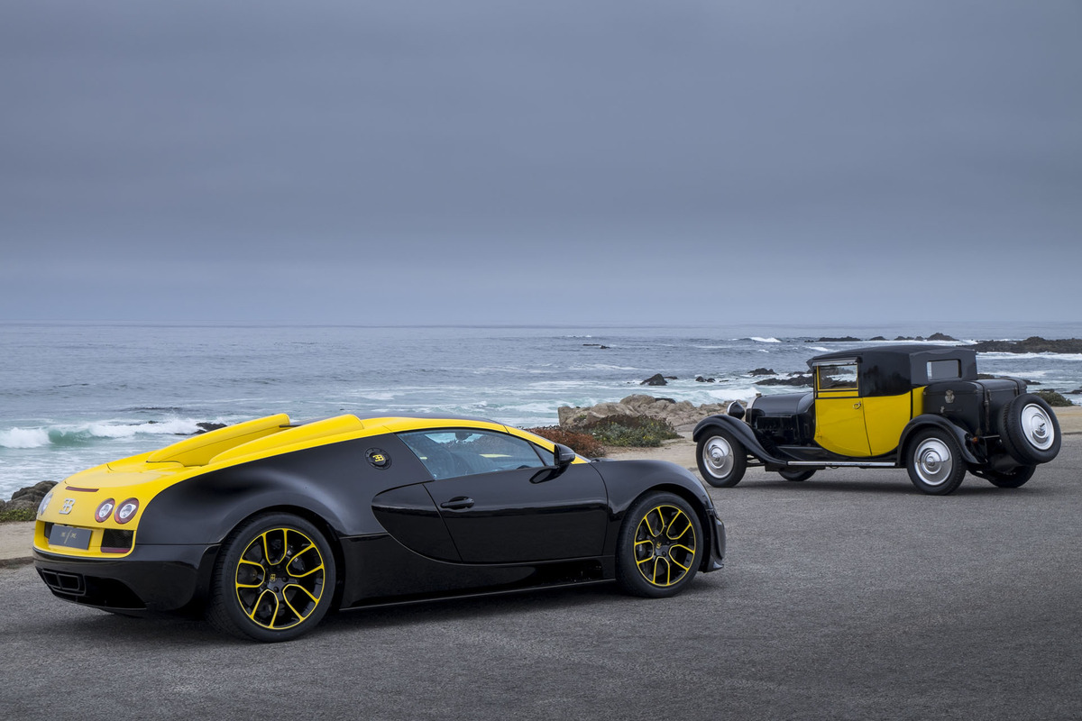 然而,若以黃黑雙色配法來說,由於創辦人Ettore Bugatti本身酷愛這兩種顏色,因此在過去Bugatti的經典車款車款當中算是相當普及,包含Type 41 Royale、Type 55 與Type 44,而這次在圓石灘會場上,Bugatti也請出一部黃黑配色的Bugatti Type 41 Royale並將它停放在這部全球唯一的Bugatti Veyron Grand Sport Vitesse 1 of 1身旁,極具特色。