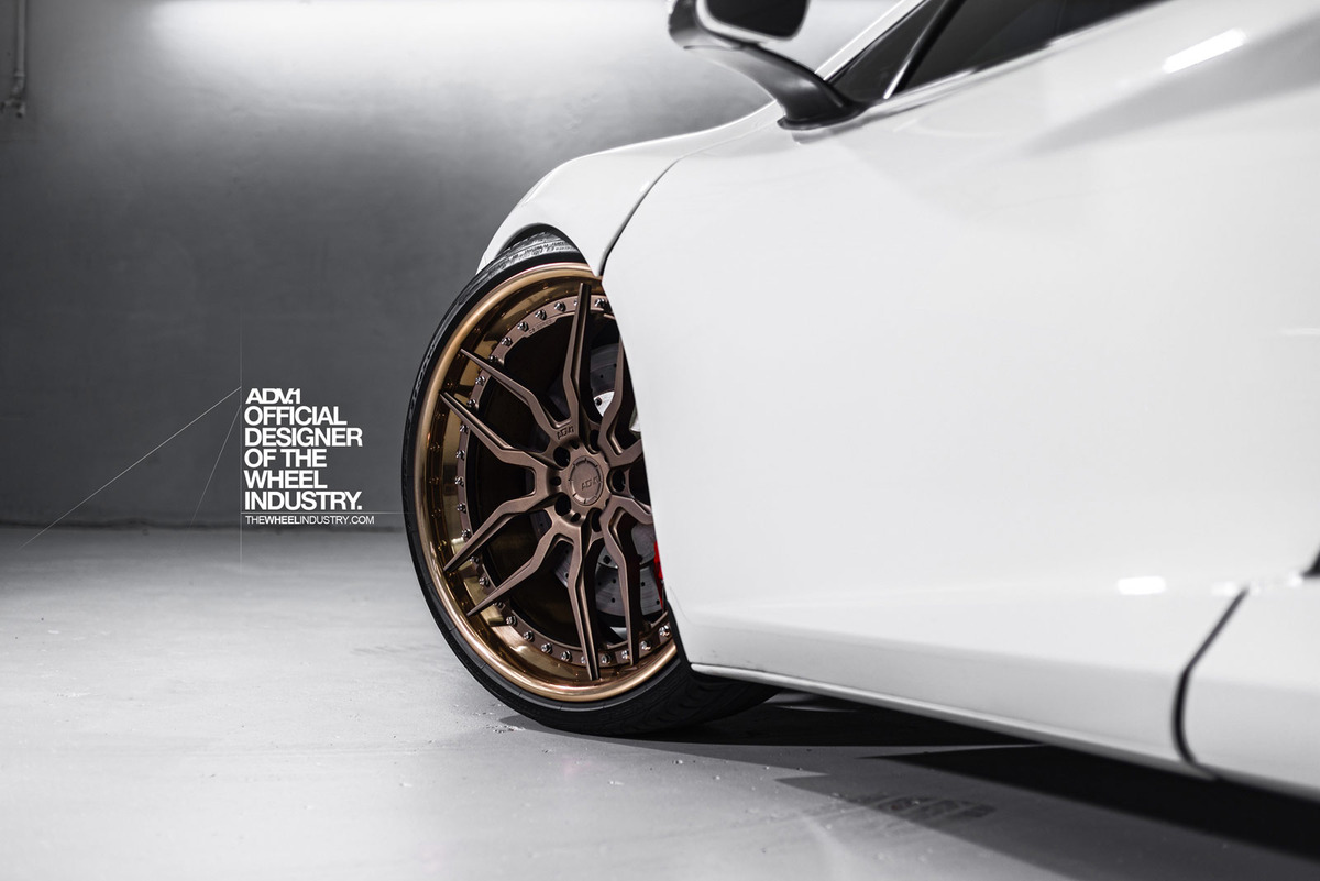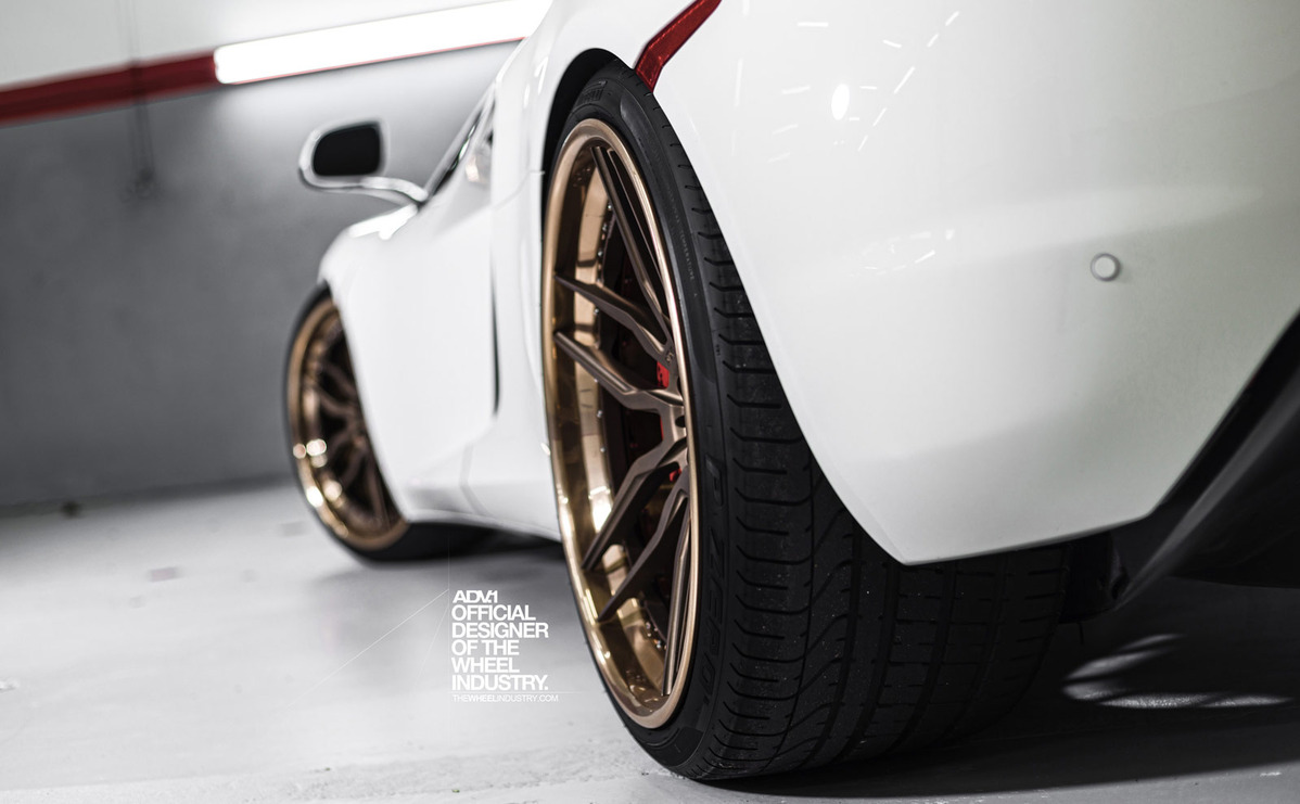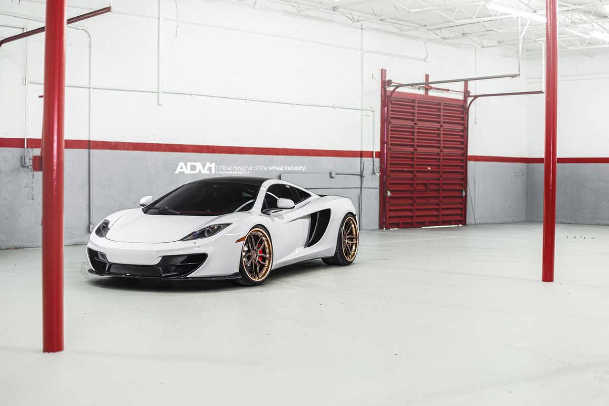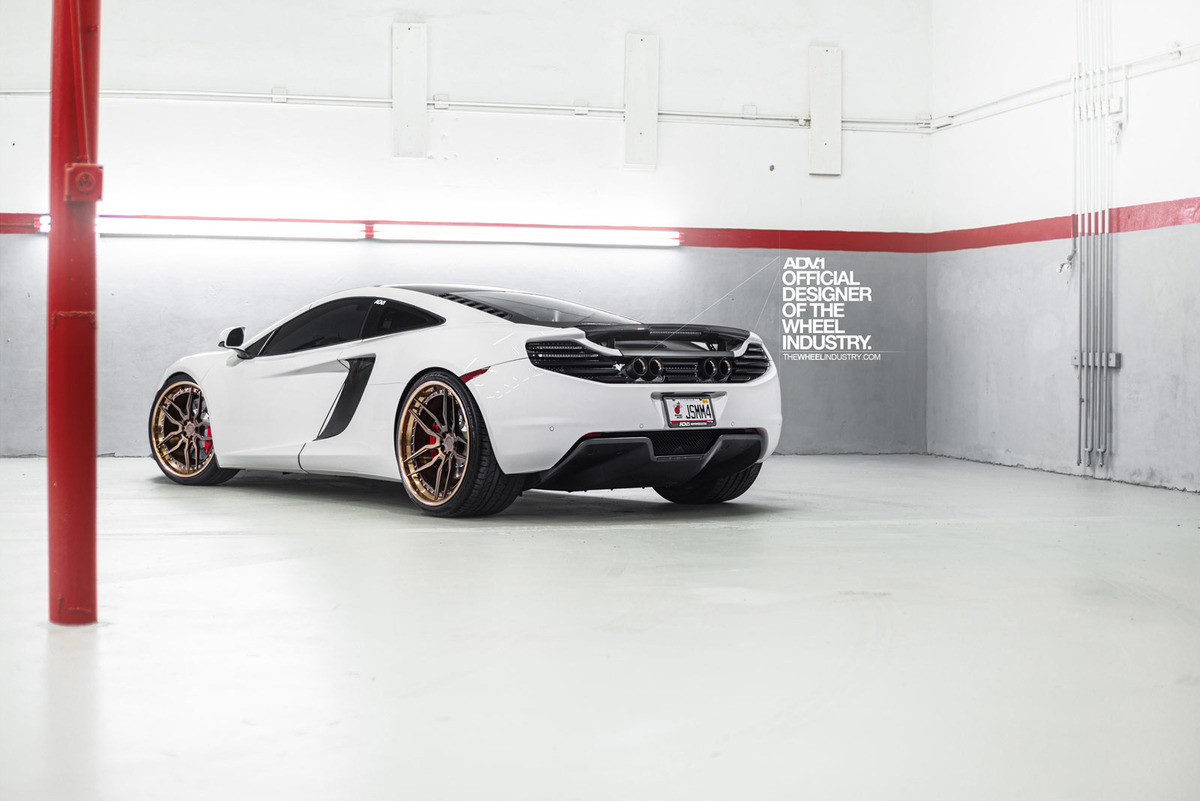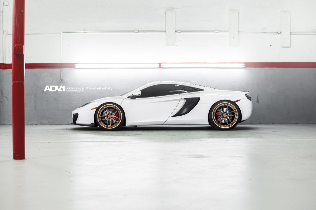 今天要為各位帶來的是輪圈品牌ADV.1 Wheels所提供的白色塗裝、局部紅色真皮內裝的McLaren 12C,該車自從被帶到ADV.1 Wheels之後便不斷地展開它獨有的改裝人生,更時常代表著ADV.1 Wheels出席各大展覽活動,但這回換上自家型號ADV005 TS CS、尺寸前21x9.5J、後21x12.5J的輕量化輪圈,圈面採用亮面古銅色塗裝,配上其白色車身與紅色煞車卡鉗,顯得相當對味。