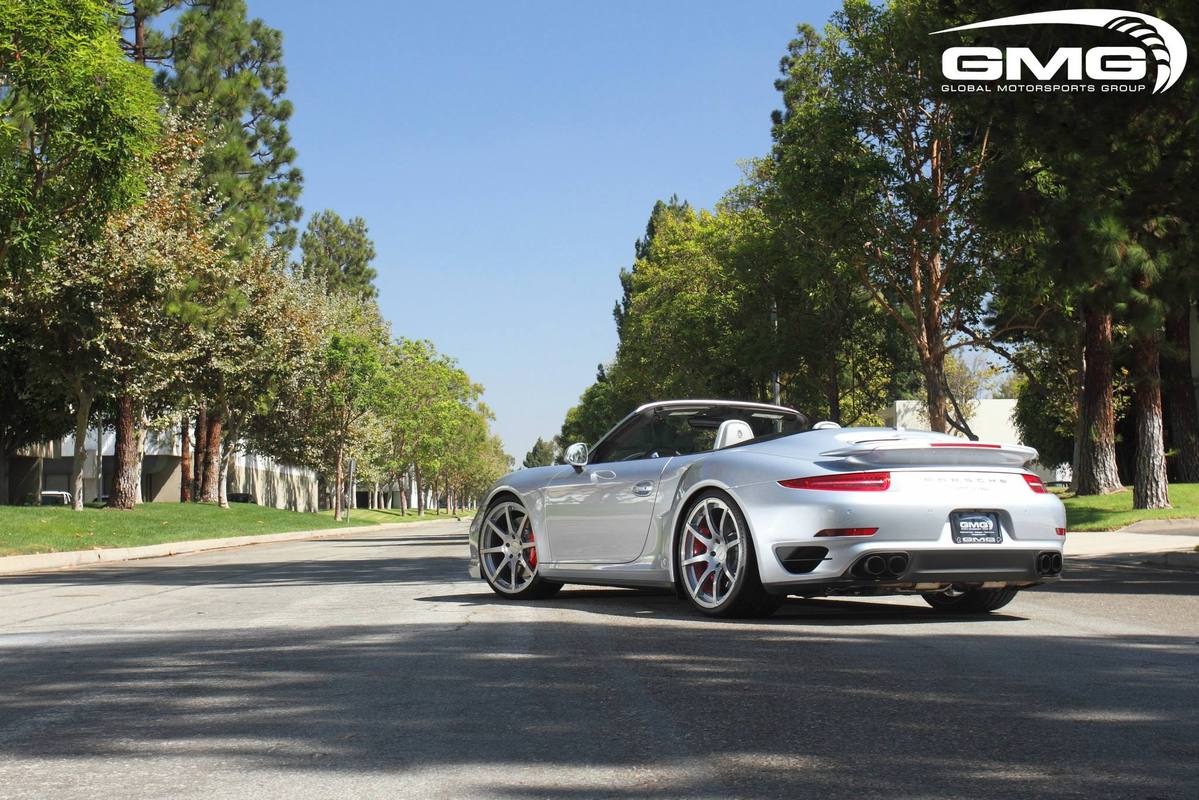 另外,跟旗艦車款991 Turbo S相比,991 Turbo即使少了一個「S」,依舊是部不可多得的性能猛獸,改裝潛力更是無可限量。今天帶給各位一部由國際賽車團隊GMG Racing所操刀的Porsche 991 Turbo Cabriolet敞篷跑車,換裝GMG獨家開發、型號130R的單片式鍛造21吋輪圈搭配Pirelli P Zero高性能跑胎,另外換上GMG WC Sport版本頭段與尾段排氣管,再灌上GIAC電腦程式,最大馬力已有600HP的表現,另外換上GMG運動版本短彈簧組將車身降低同時提升彎道穩定性,戰力不容小覷。