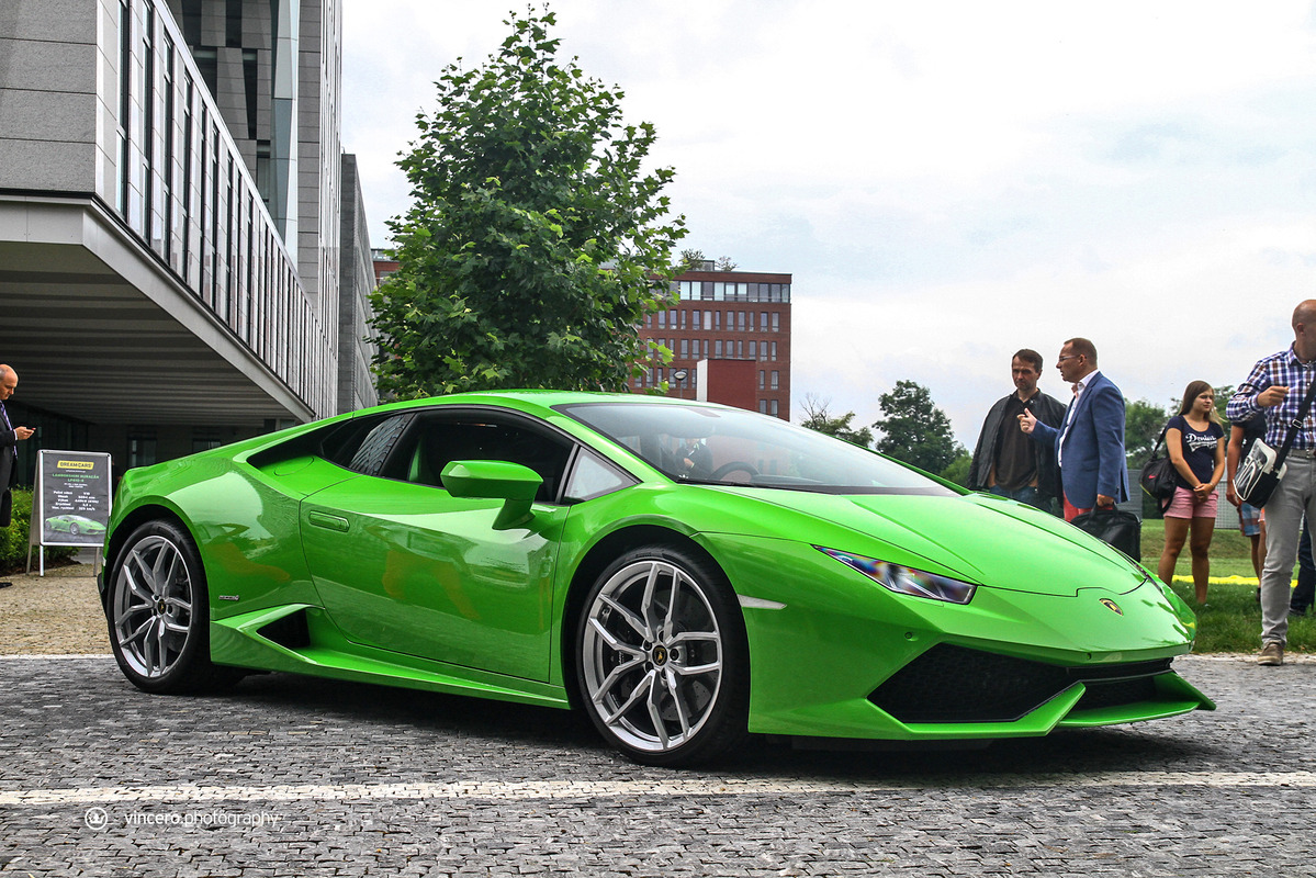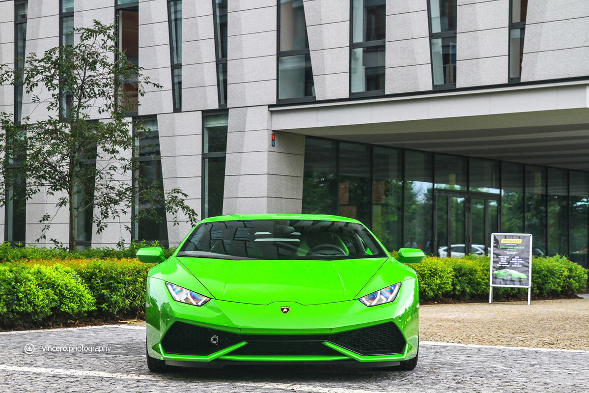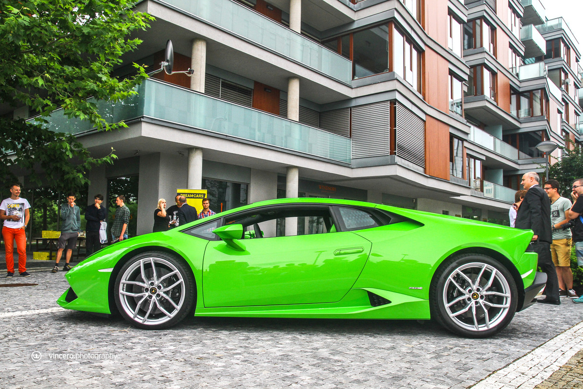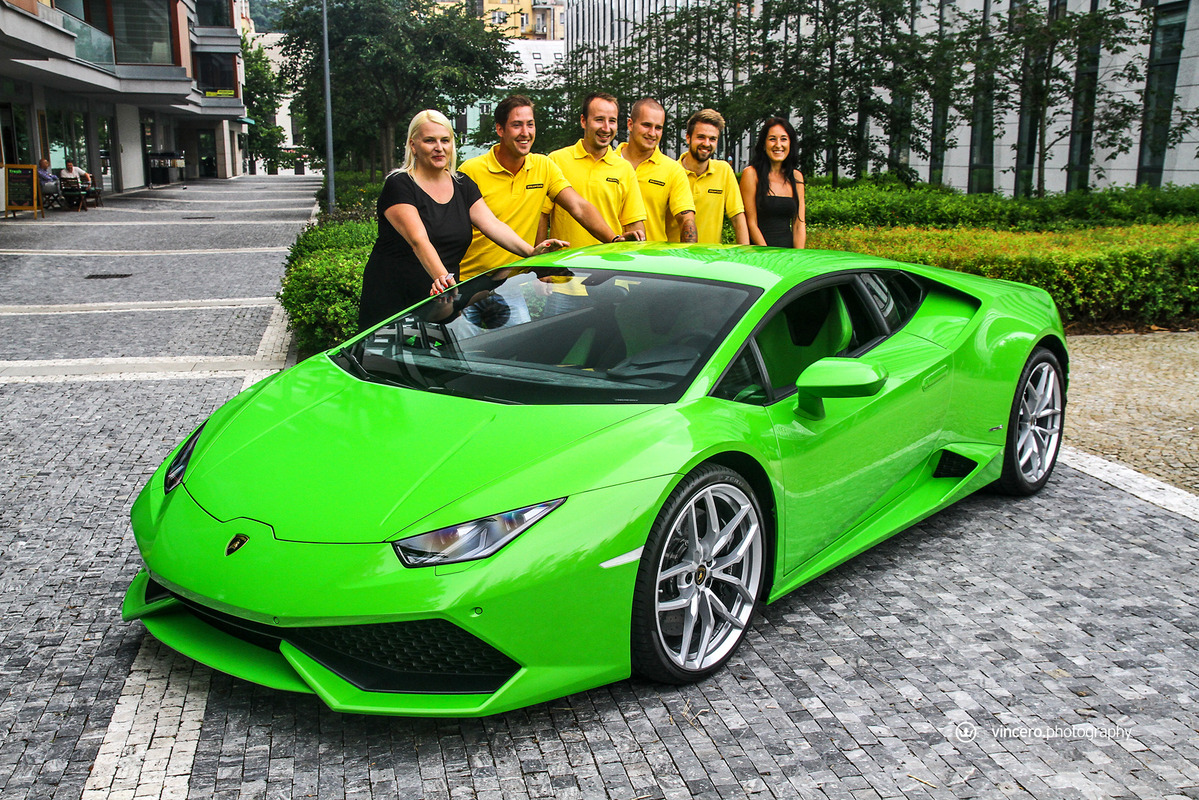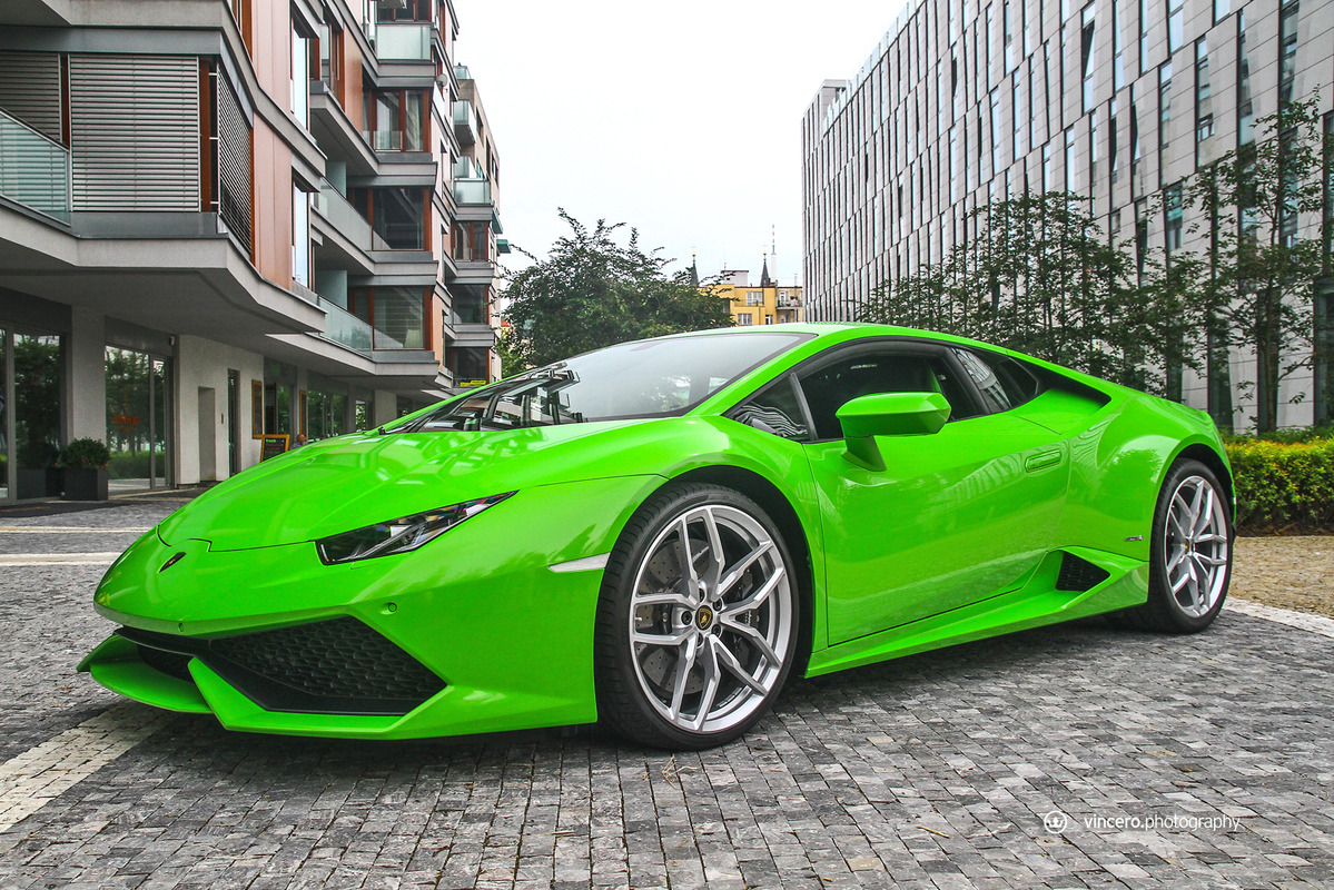 在車迷千呼萬喚了十年之久後,義大利超級跑車廠Lamborghini終於推出Gallardo後繼車款Huracán LP610-4,更由於已經準備好要賣十年,所以全車裡外都展現出前衛新穎的獨特風貌,更在尚未曝光前便已收到許多訂單,目前等候名單已經排到2016年款式車型上,相當熱門。日前,本地首部Huracán LP610-4也已經交出,今天要跟各位分享的是捷克共和國(Czech Republic)第一台Lamborghini Huracán LP610-4,身披Verde Mantis珍珠綠色塗裝、搭配20吋銀色Mimas鍛造輪圈與黑色煞車卡鉗,內裝則以綠黑雙色真皮呼應其吸睛外觀,現身於首都布拉格(Prague)時立刻引來民眾聚集圍觀。