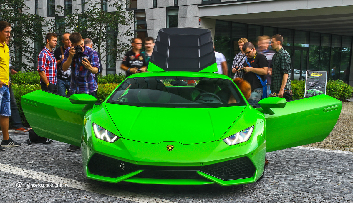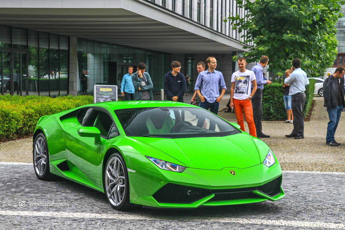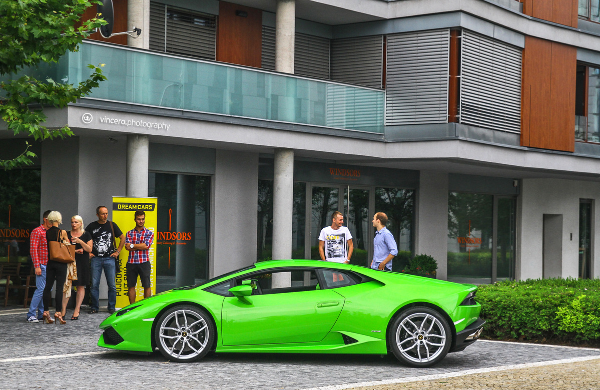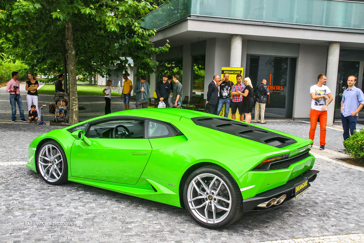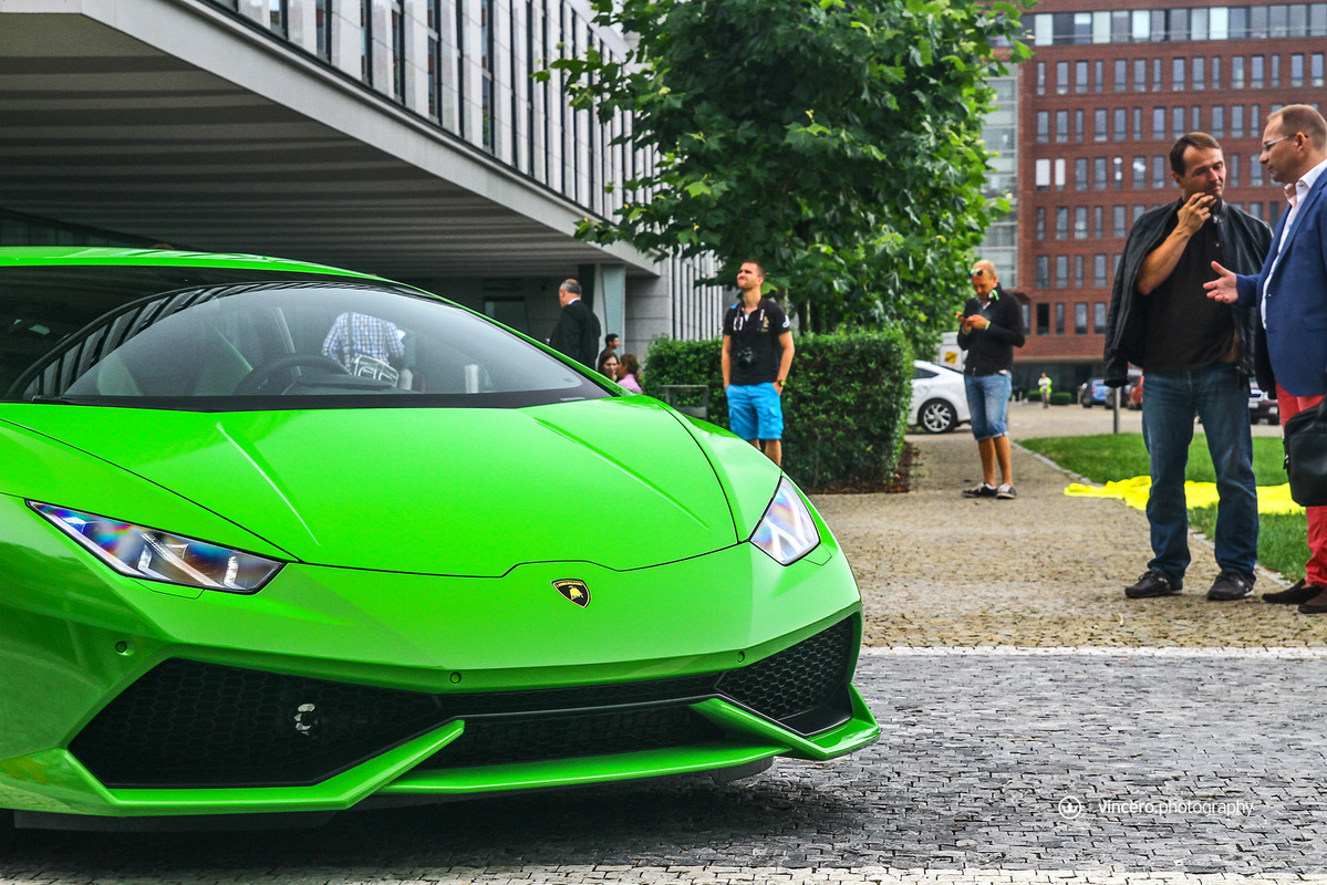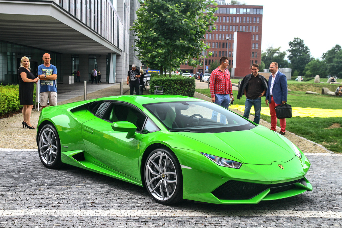 在車迷千呼萬喚了十年之久後,義大利超級跑車廠Lamborghini終於推出Gallardo後繼車款Huracán LP610-4,更由於已經準備好要賣十年,所以全車裡外都展現出前衛新穎的獨特風貌,更在尚未曝光前便已收到許多訂單,目前等候名單已經排到2016年款式車型上,相當熱門。日前,本地首部Huracán LP610-4也已經交出,今天要跟各位分享的是捷克共和國(Czech Republic)第一台Lamborghini Huracán LP610-4,身披Verde Mantis珍珠綠色塗裝、搭配20吋銀色Mimas鍛造輪圈與黑色煞車卡鉗,內裝則以綠黑雙色真皮呼應其吸睛外觀,現身於首都布拉格(Prague)時立刻引來民眾聚集圍觀。