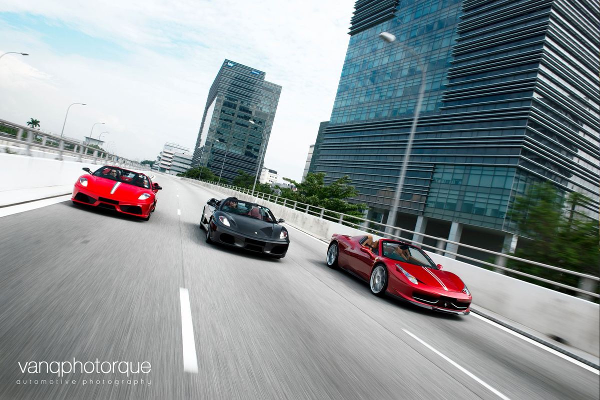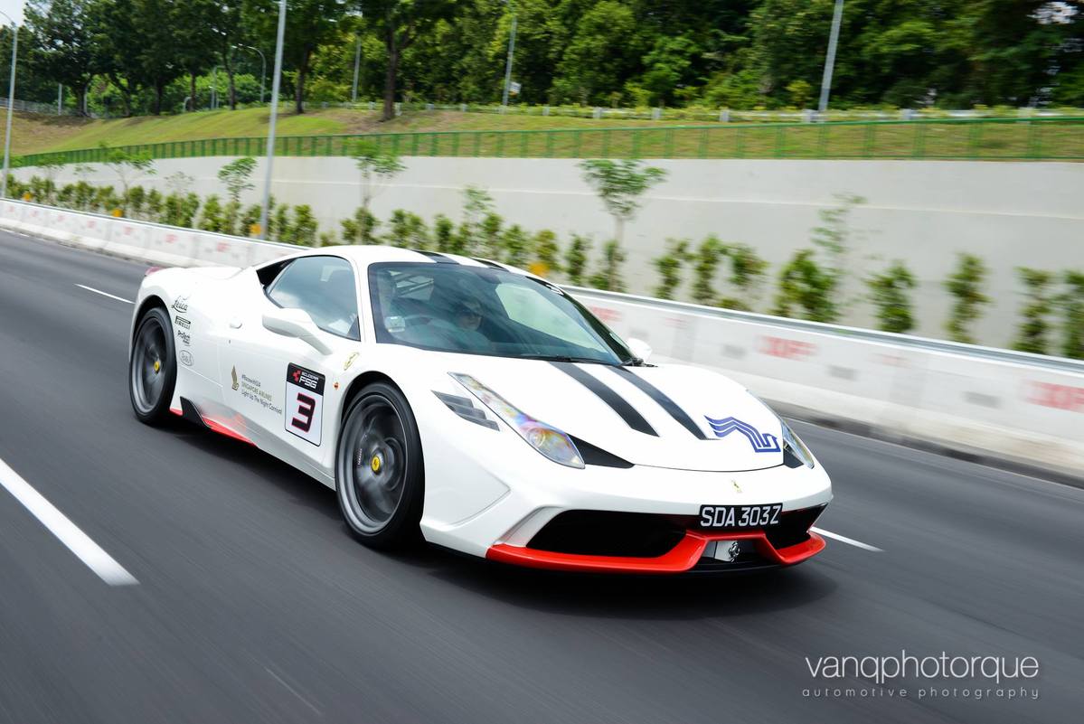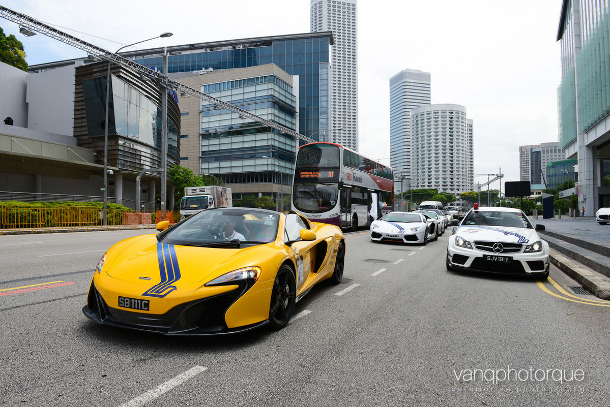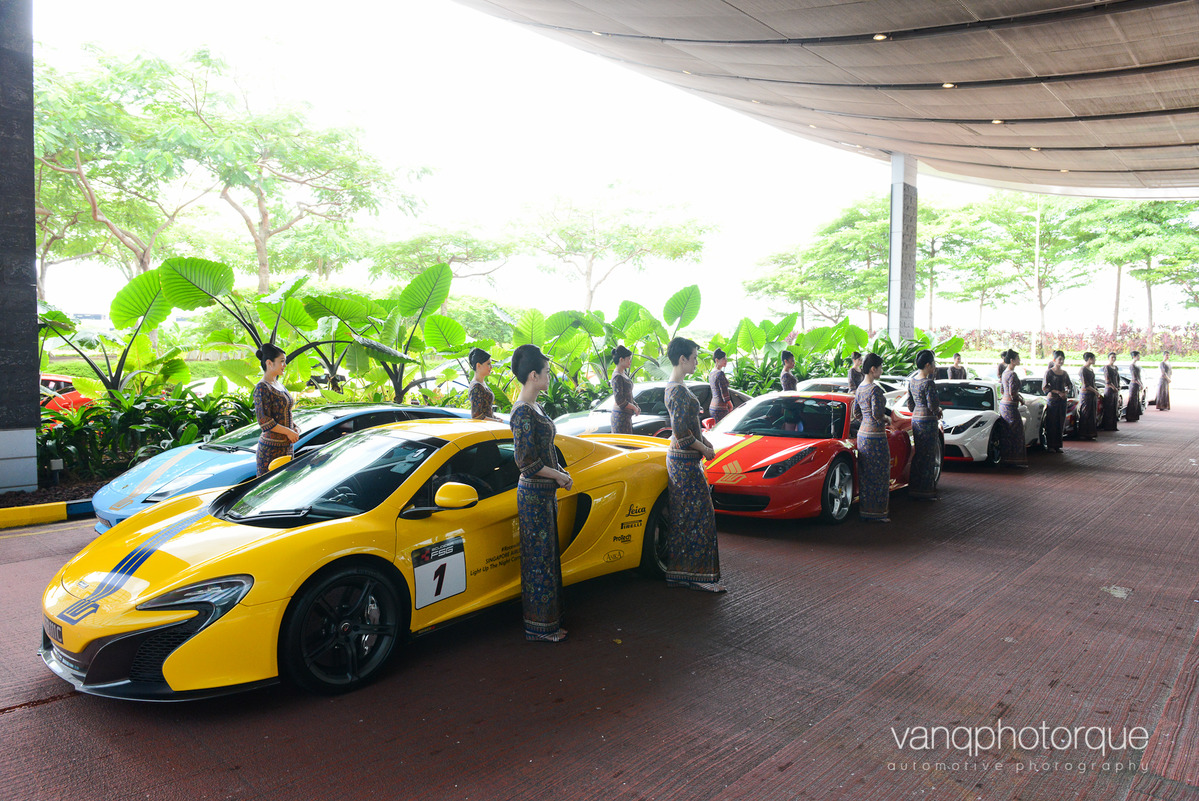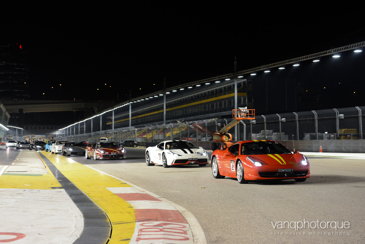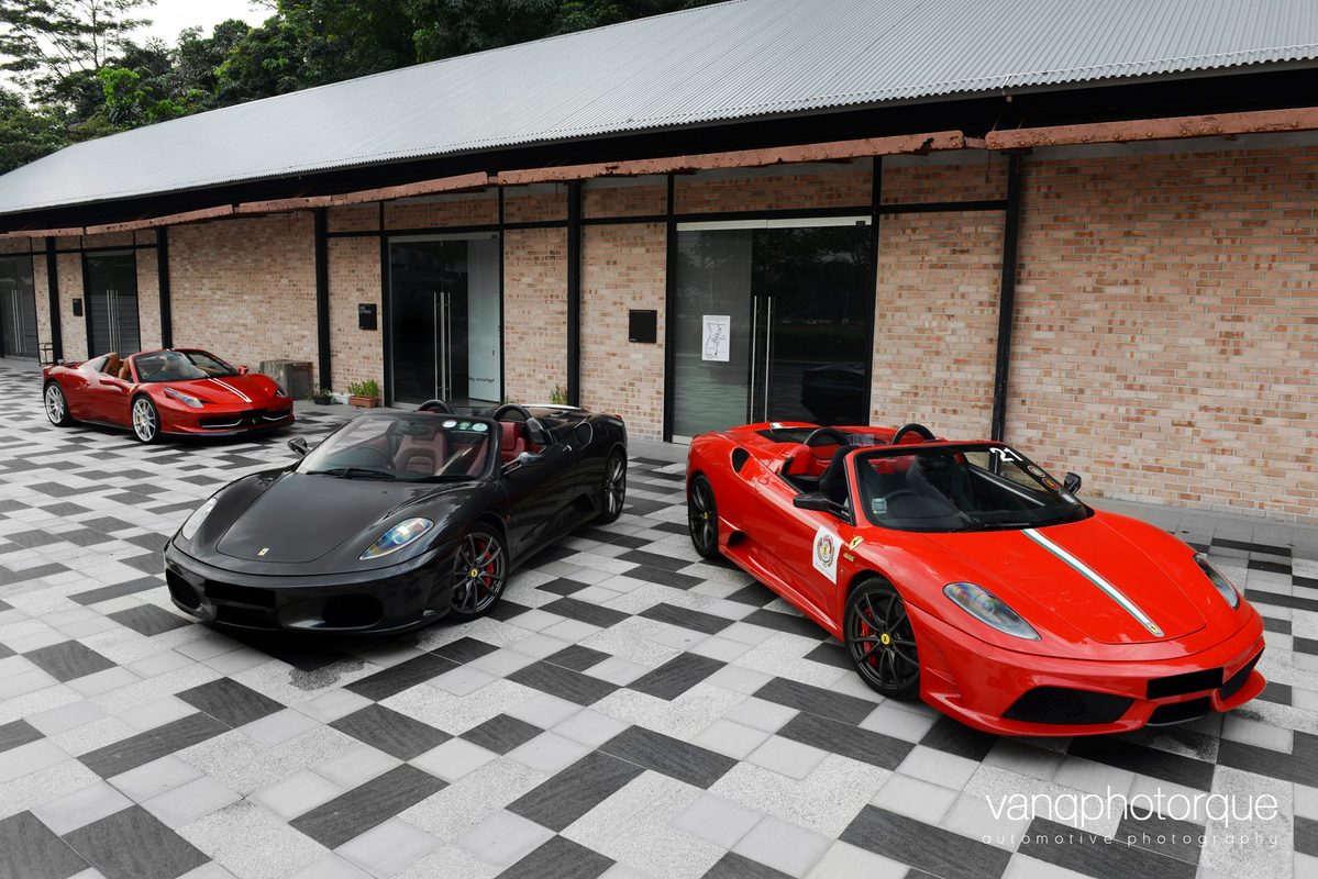 值得注意的是,雖然取名當中有「Scuderia」這個頗Ferrari氣氛的字眼,但是這個超級跑車俱樂部可說是眾星雲集,包含數部Lamborghini Murcielago SV、貼有「SFSG SAFETY CAR」字樣的Mercedes Benz C63 AMG Coupe Black Series、Ferrari 430 Scuderia、Lamborghini Gallardo LP560-4、Audi R8 V10、裝有Oakley Design套件的Ferrari 458 Spider、限量的Ferrari Scuderia Spider 16M、特殊紅白配色的Ferrari 458 Speciale、英國超級跑車McLaren 12C與剛上市不久的McLaren 650S Spider等車款都羅列其中,也使得場面相當壯觀。
