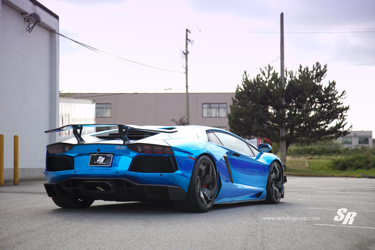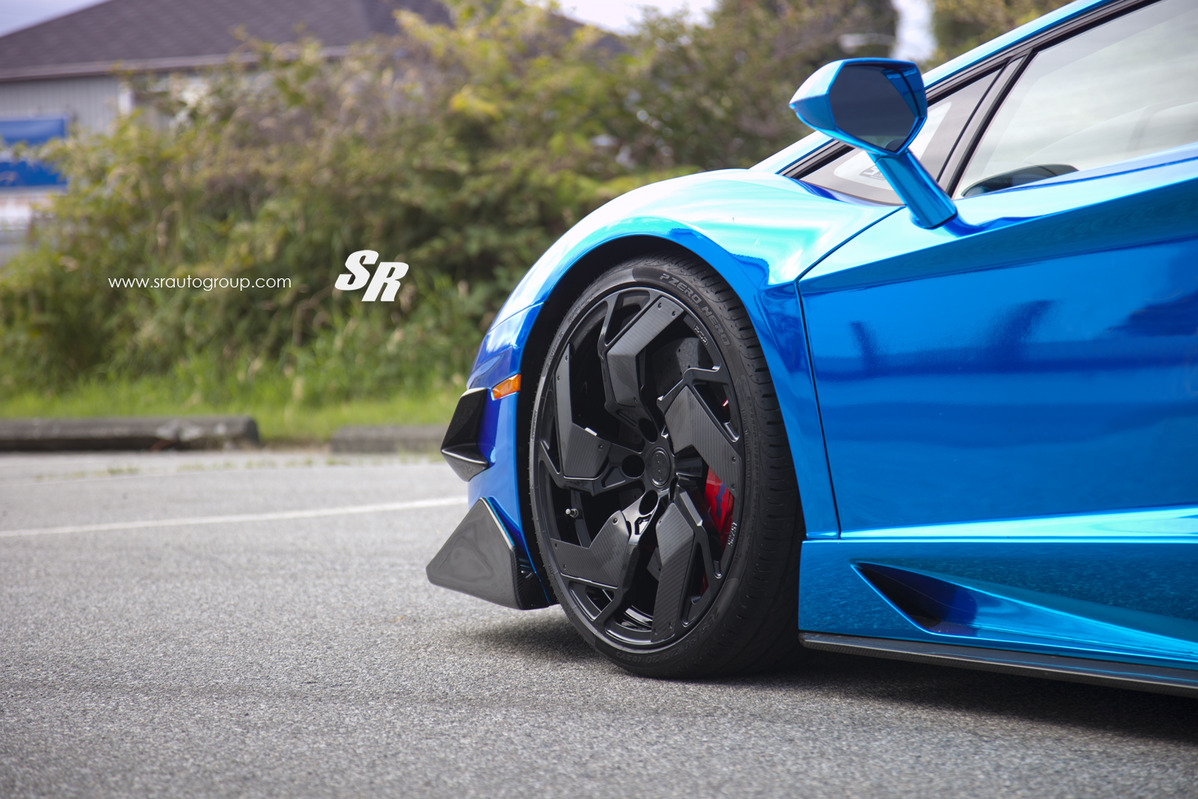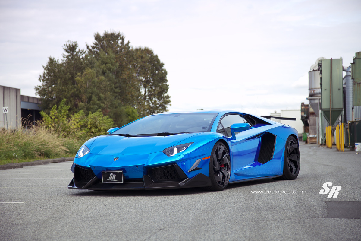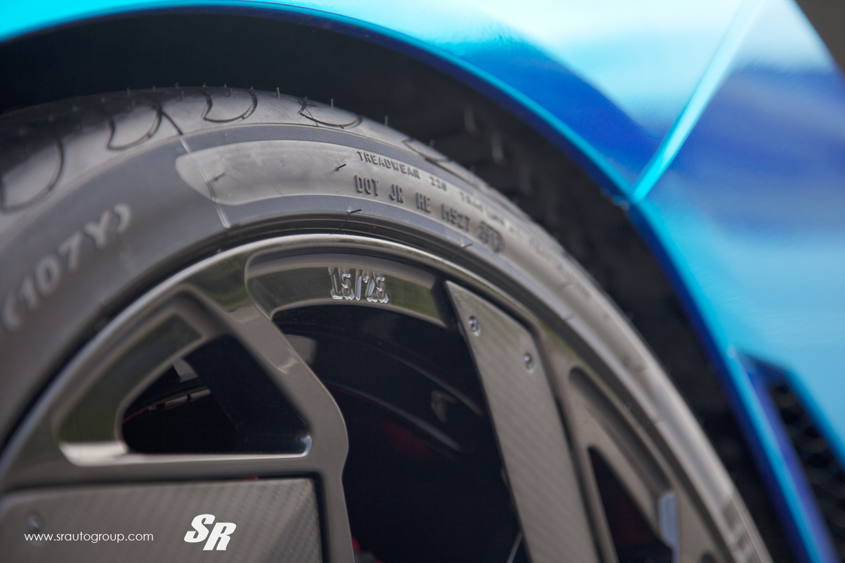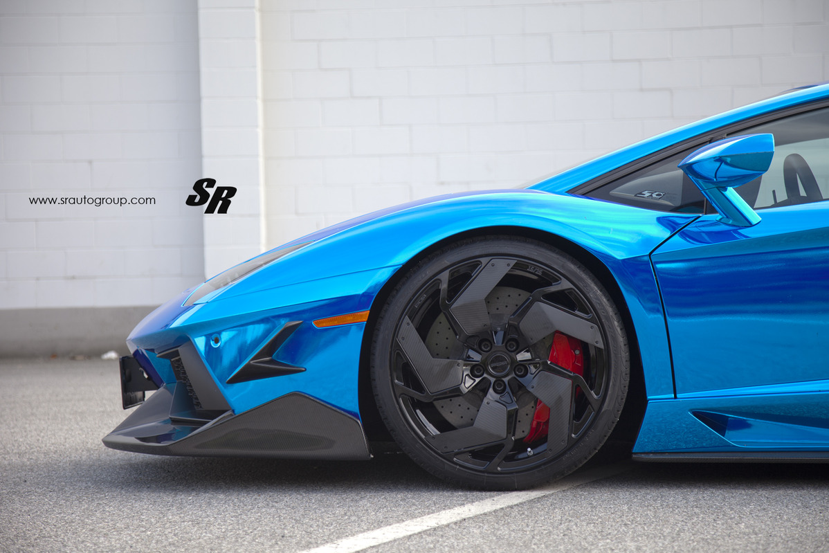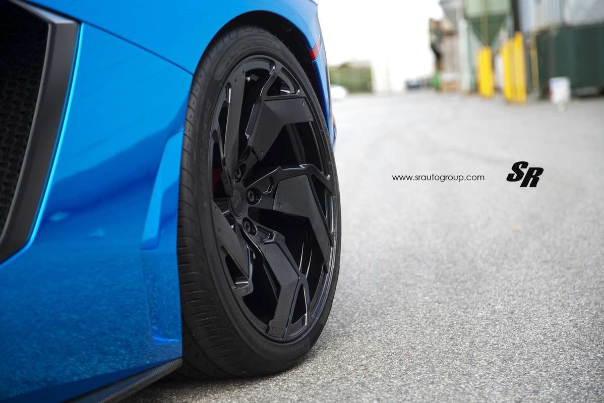 今天帶給各位一部由改裝廠SR Auto Group所操刀的Lamborghini Aventador LP700-4,全車施以電鍍藍色貼膜,再換裝來自PUR Wheels、型號RS05-V2、全球限量25組的輕量化輪圈,尺寸為前20x9J、後21x12.5J的前後配設定,搭配Pirelli P Zero高性能跑胎,圈面以亮面黑色處理搭配碳纖維飾板,連同紅色塗裝煞車卡鉗,整體視覺效果一流。除此之外,SR Auto Group還另為這部V12超級跑車換上同樣來自PUR的碳纖維空力套件,包含型號V2的碳纖維前下巴、碳纖維側裙組、碳纖維後下擾流板與後上擾流尾翼等部品,再搭配PUR自行開發、能將車身降低的專用連桿,營造貼地飛行的帶勁跑格。