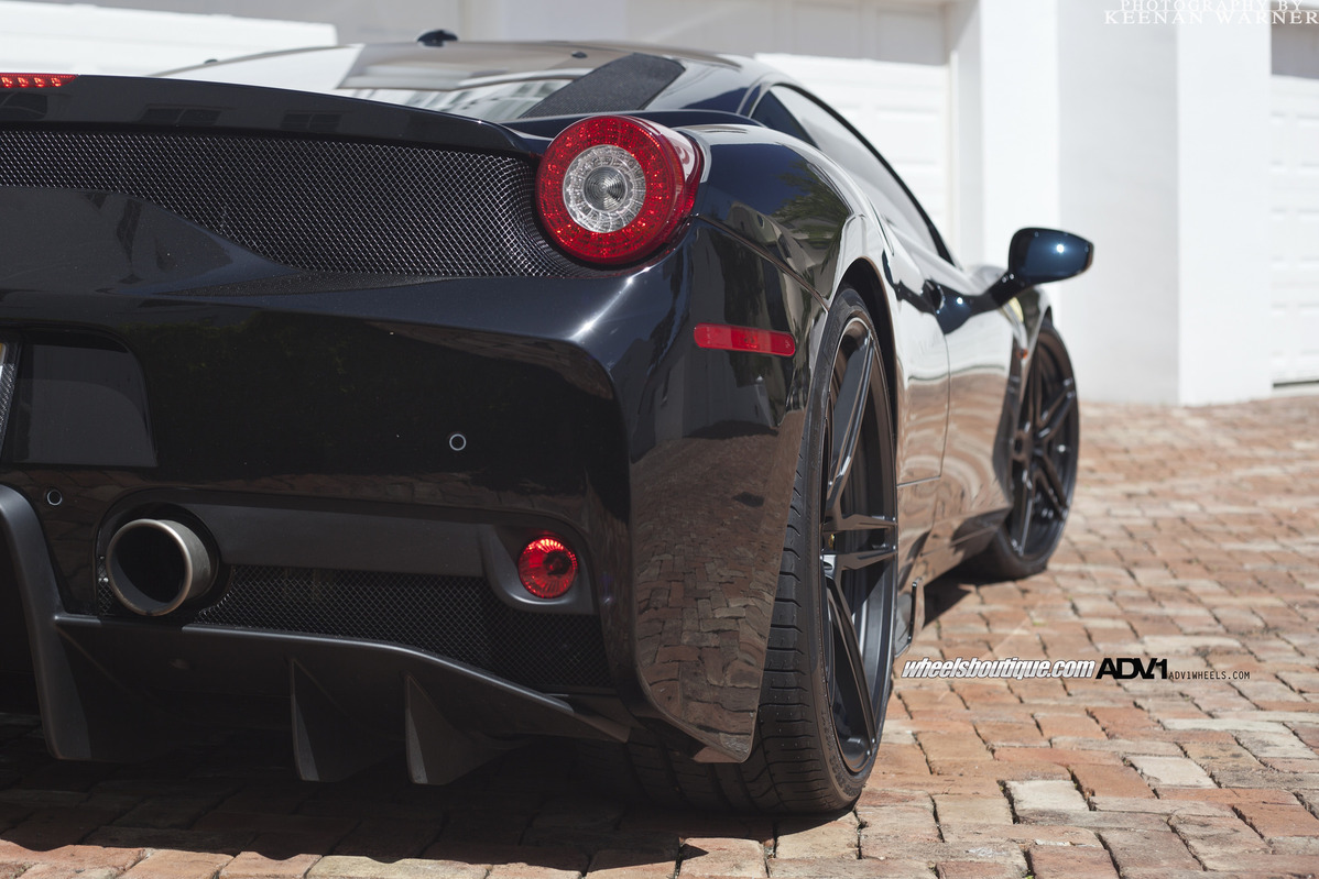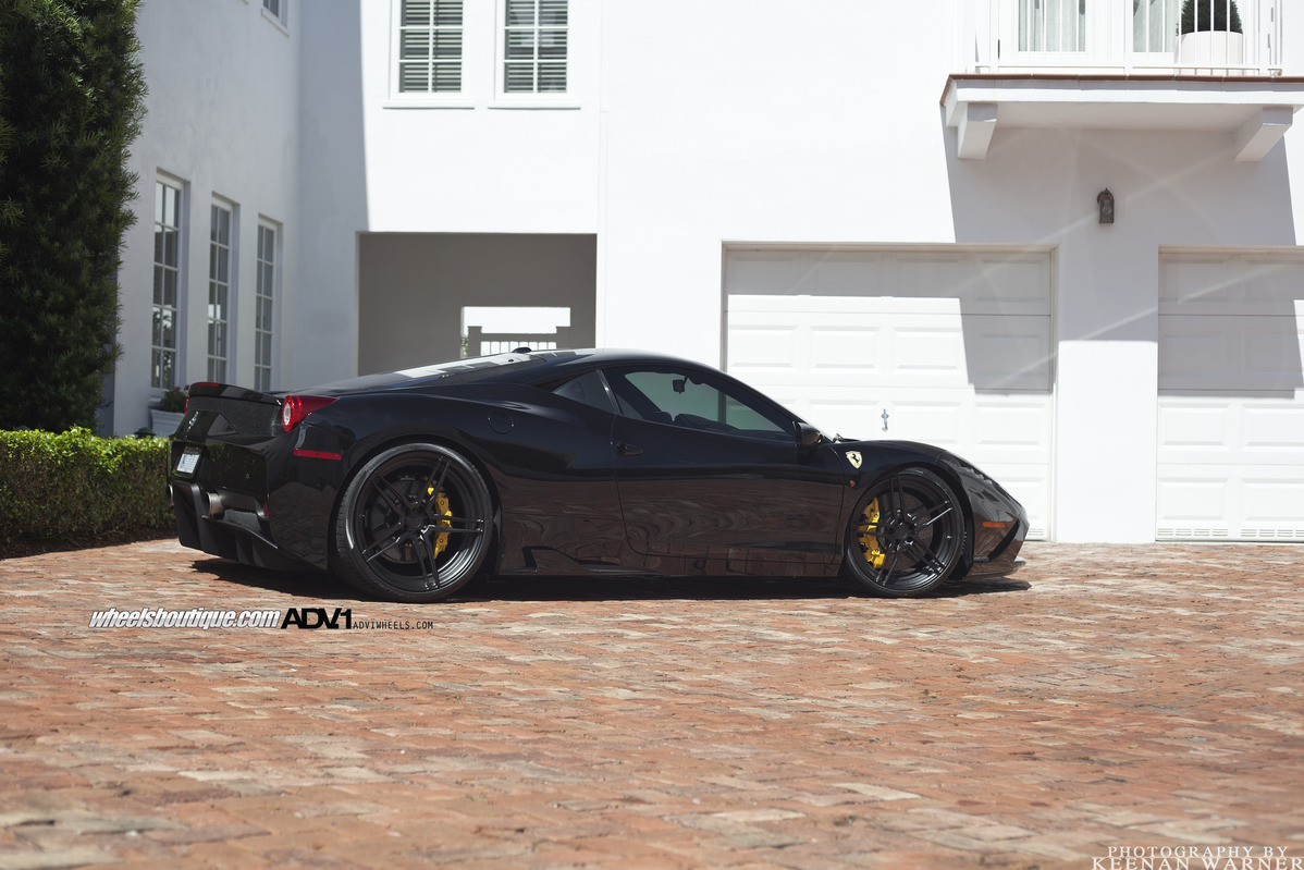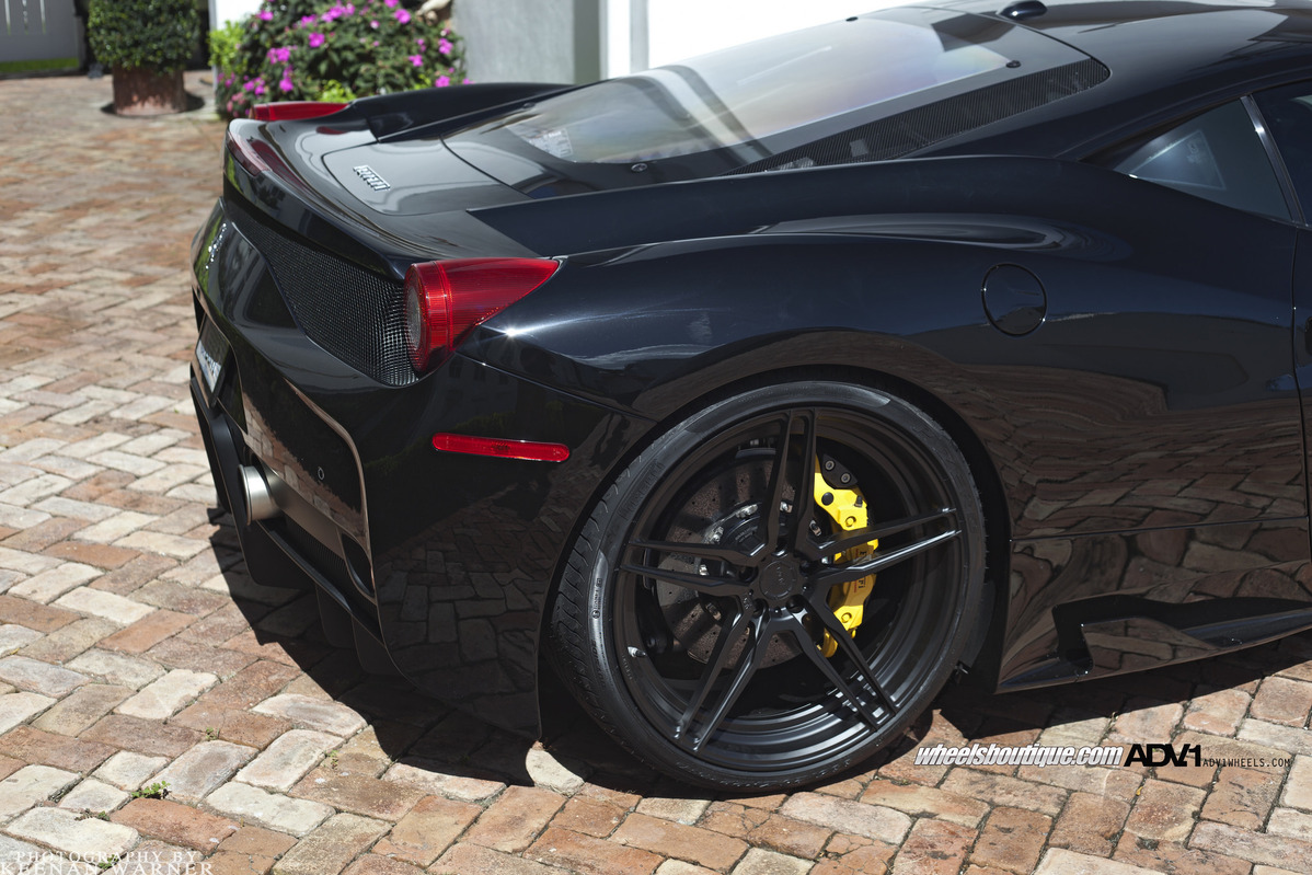 今天帶給各位一部由改裝廠Wheels Boutique所操刀的Ferrari 458 Speciale,該車於出廠時便沒有選用NART車身飾條,而採用殺氣極重的整車黑色塗裝,僅以黃色煞車卡鉗與車內黃色車縫線呼應葉子板車隊盾型徽章,另外換裝知名品牌ADV.1 Wheels、型號ADV05 MV2 CS的輕量化輪圈並選擇消光黑色款式,展現出魅力無窮的「black on black」風格。