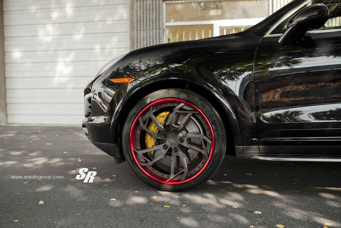 今天帶給各位一部由改裝廠SR Auto Group所操刀的Porsche Cayenne Turbo S,換裝PUR Wheels出品、型號LX12的輕量化輪圈,尺寸為前22x10.5J、後22x12J的前後配設定,中心採用消光黑色塗裝,外圈則以亮面糖果紅色處理,視覺效果相當鮮明。動力部分,身為Cayenne車系當中的旗艦車款,原廠Porsche Cayenne Turbo S搭載排氣量4,806cc雙渦輪增壓V8引擎,能夠於轉速6,000rpm時爆發出550HP的最大馬力,扭力峰值76.5kgm則於2,250rpm至4,500rpm區間湧現,0-100km/h僅需4.3秒,極速更是可達283km/hr,已屬相當強悍,因此車主尚未有強化計畫。