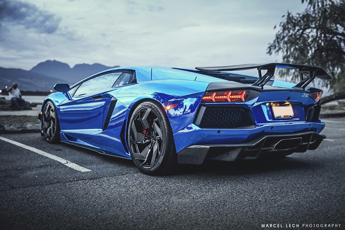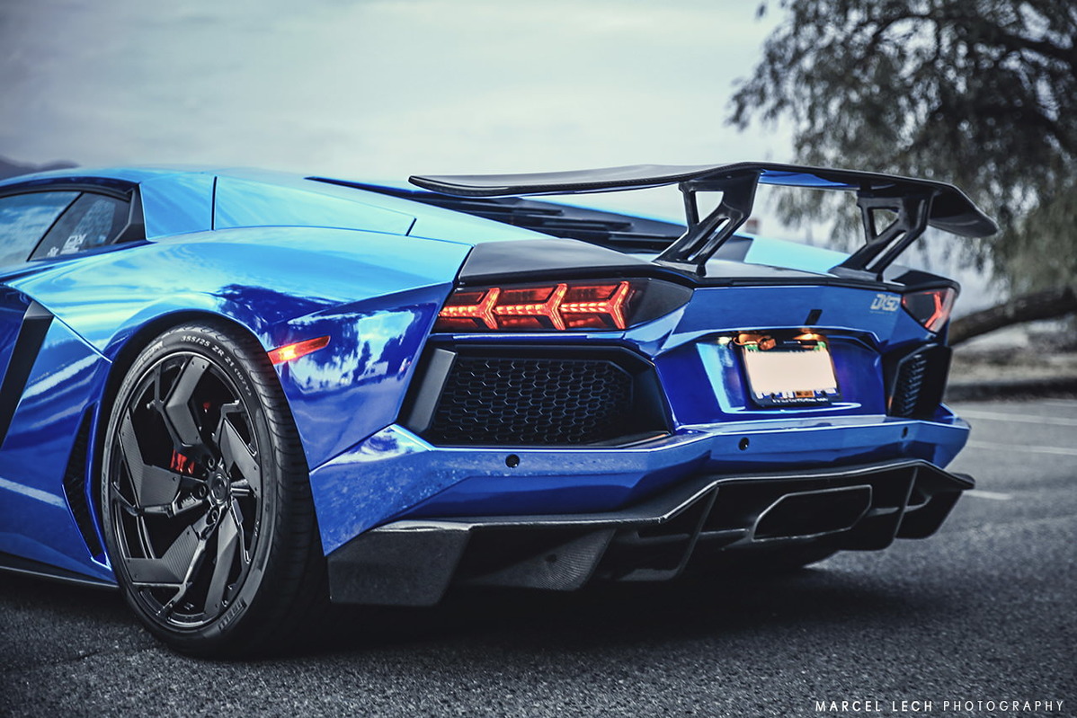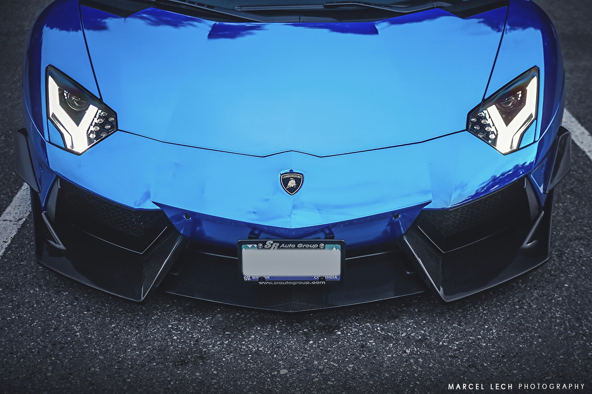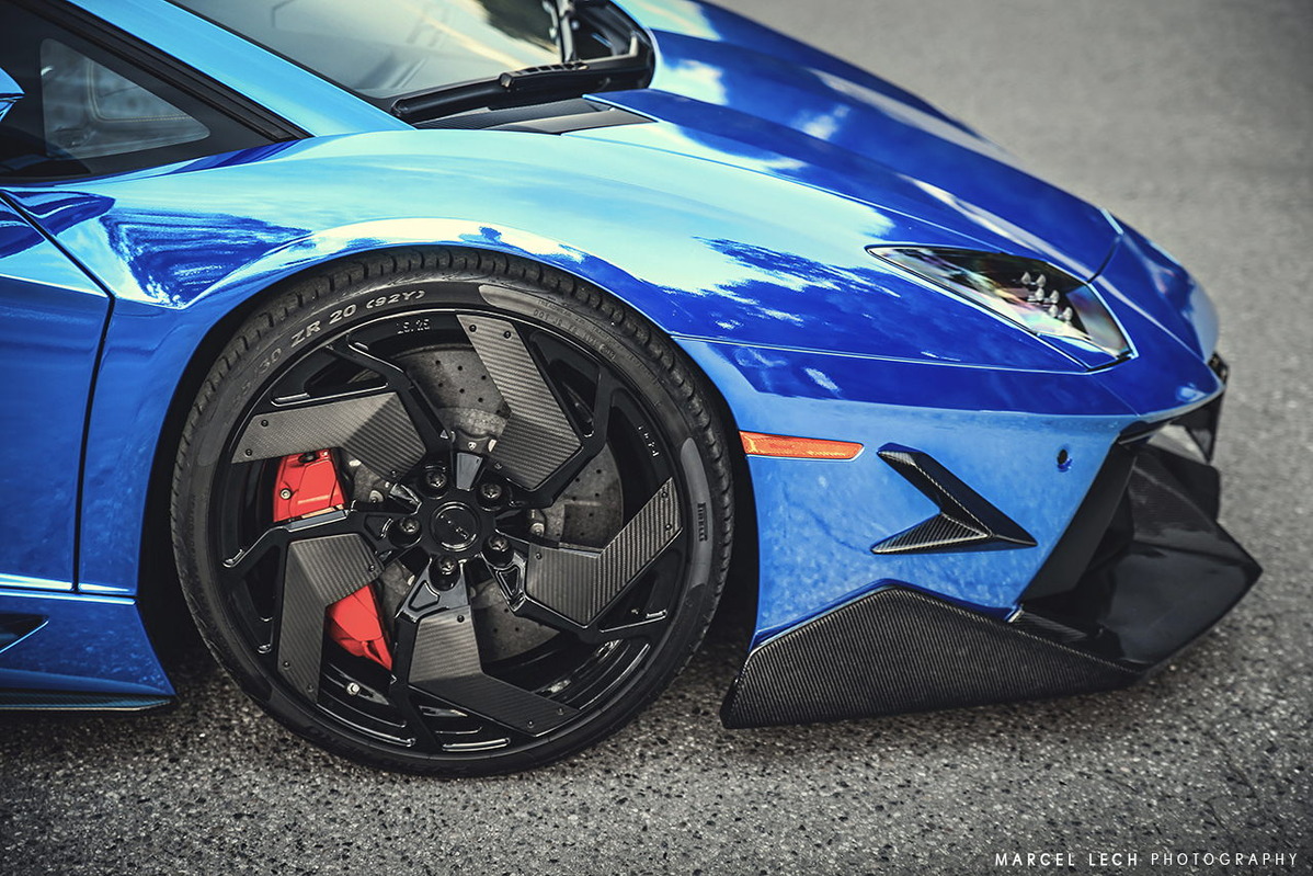 今天帶給各位一部由改裝廠SR Auto Group所操刀的Lamborghini Aventador LP700-4,全車施以電鍍藍色貼膜,再換裝來自PUR Wheels、型號RS05-V2、全球限量25組的輕量化輪圈,尺寸為前20x9J、後21x12.5J的前後配設定,搭配Pirelli P Zero高性能跑胎,圈面以亮面黑色處理搭配碳纖維飾板,連同紅色塗裝煞車卡鉗,整體視覺效果一流。除此之外,SR Auto Group還另為這部V12超級跑車換上同樣來自PUR的碳纖維空力套件,包含型號V2的碳纖維前下巴、碳纖維側裙組、碳纖維後下擾流板與後上擾流尾翼等部品,再搭配PUR自行開發、能將車身降低的專用連桿,營造貼地飛行的帶勁跑格。