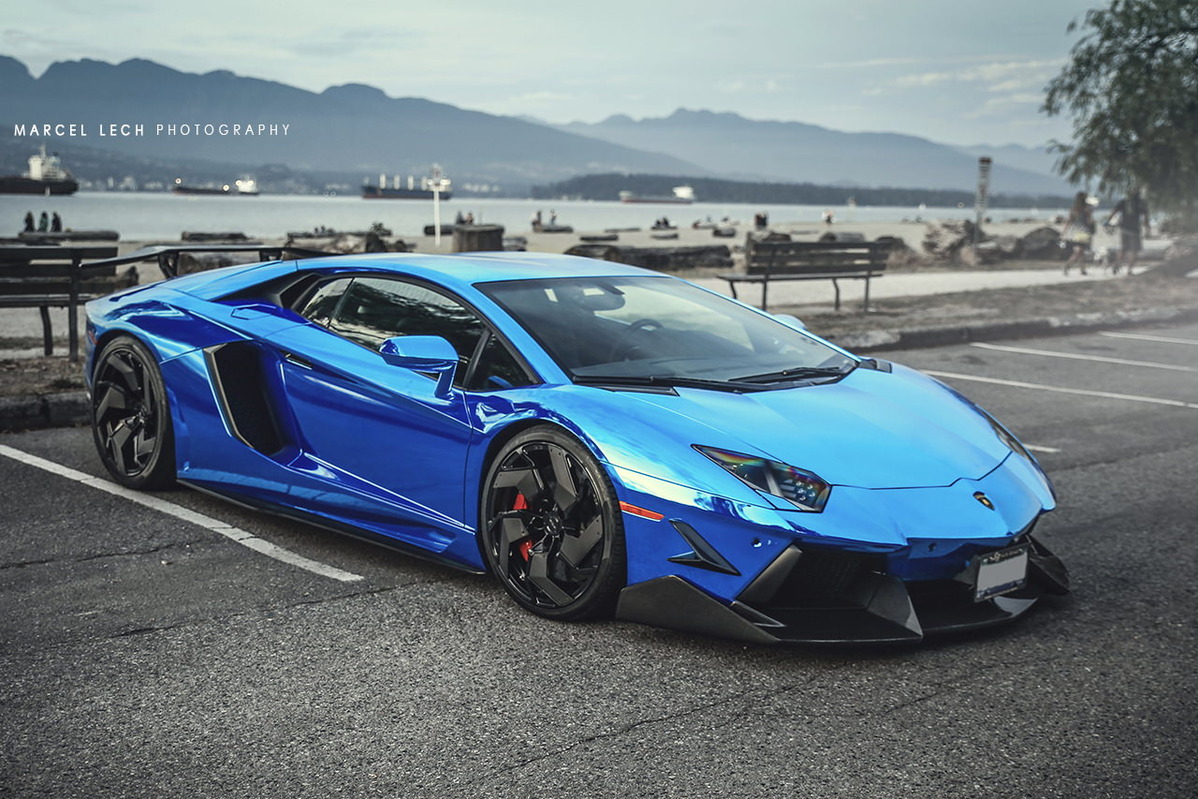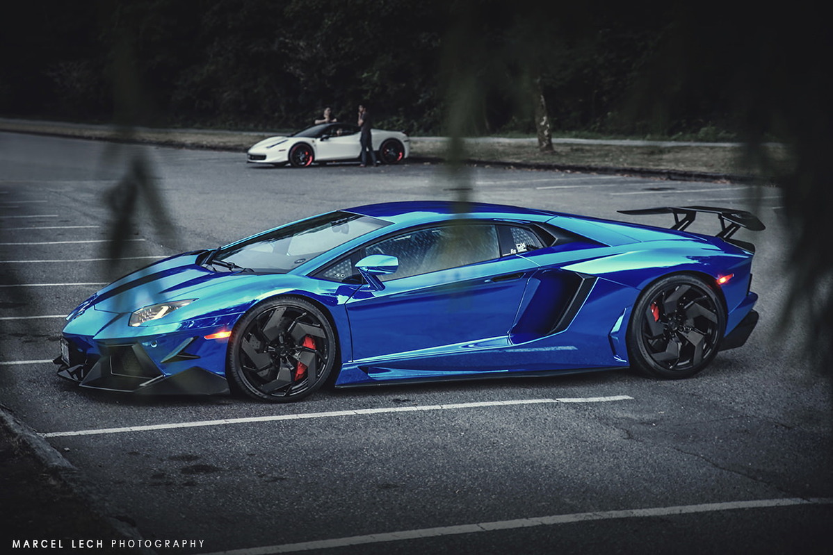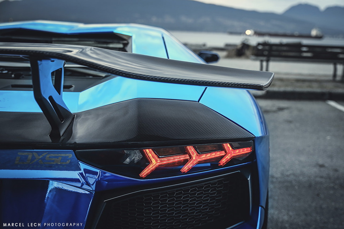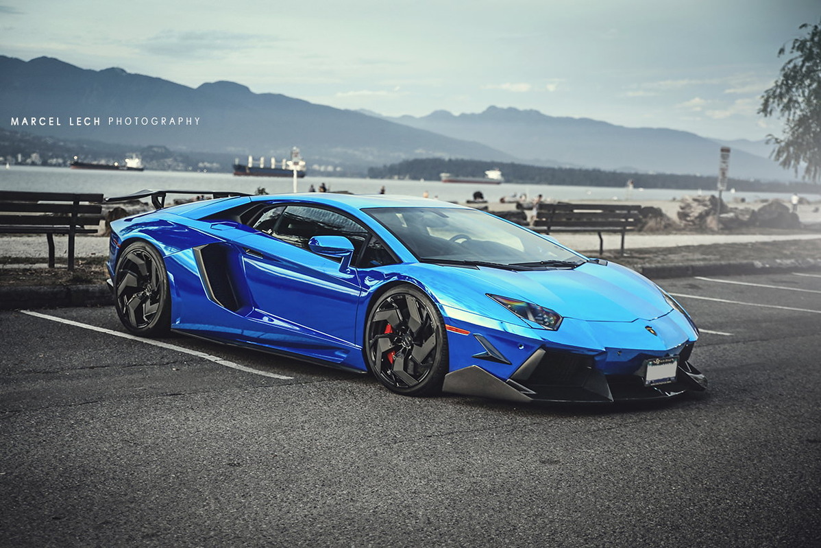 今天帶給各位一部由改裝廠SR Auto Group所操刀的Lamborghini Aventador LP700-4,全車施以電鍍藍色貼膜,再換裝來自PUR Wheels、型號RS05-V2、全球限量25組的輕量化輪圈,尺寸為前20x9J、後21x12.5J的前後配設定,搭配Pirelli P Zero高性能跑胎,圈面以亮面黑色處理搭配碳纖維飾板,連同紅色塗裝煞車卡鉗,整體視覺效果一流。除此之外,SR Auto Group還另為這部V12超級跑車換上同樣來自PUR的碳纖維空力套件,包含型號V2的碳纖維前下巴、碳纖維側裙組、碳纖維後下擾流板與後上擾流尾翼等部品,再搭配PUR自行開發、能將車身降低的專用連桿,營造貼地飛行的帶勁跑格。