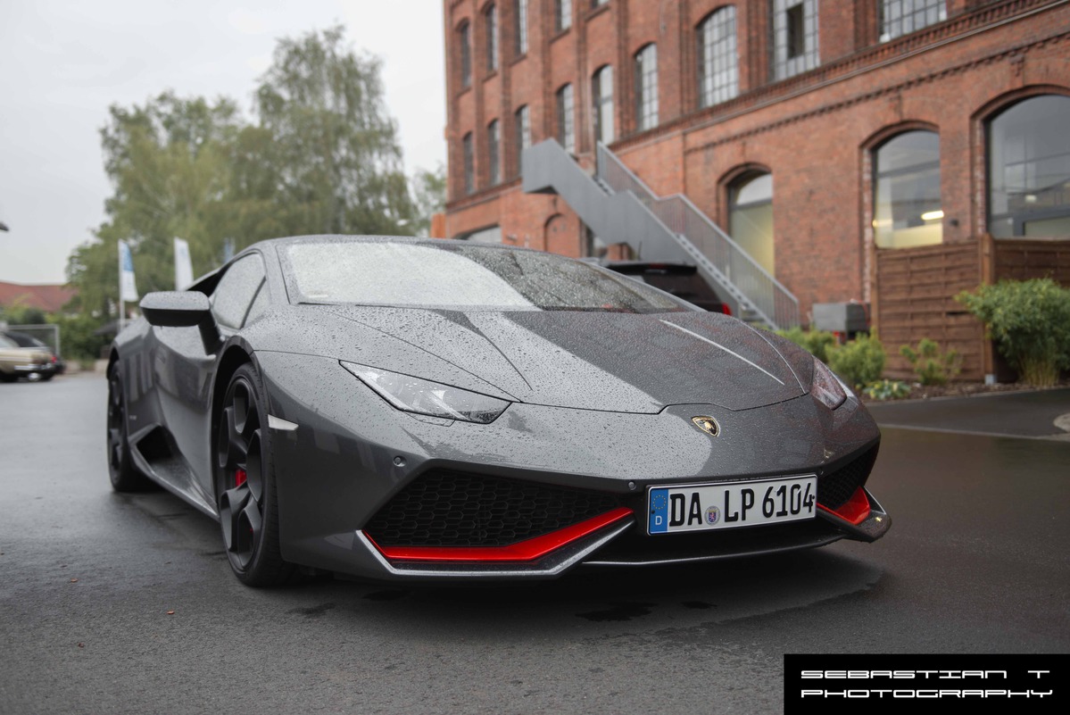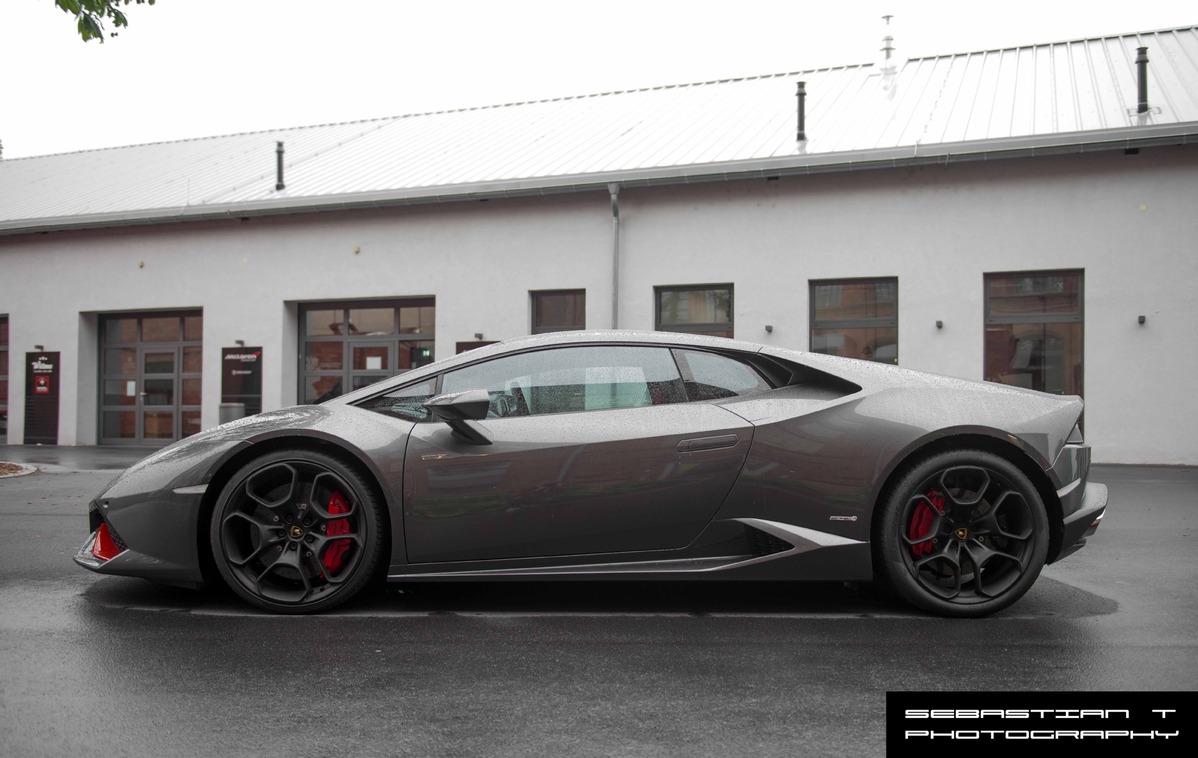 在車迷千呼萬喚了十年之久後,義大利超級跑車廠Lamborghini終於推出Gallardo後繼車款Huracán LP610-4,更由於已經準備好要賣十年,所以全車裡外都展現出前衛新穎的獨特風貌,更在尚未曝光前便已收到許多訂單,目前等候名單已經排到2016年款式車型上,相當熱門。日前,本地首部Huracán LP610-4也已經交出,今天要跟各位分享的是德國(Germany)代理商所交出的首部選用客製化配備的Lamborghini Huracán LP610-4,身披Grigio Nimbus金屬灰色塗裝搭配20吋消光黑色Giano輪圈,同時納入Ad Personam客製化選配,將煞車卡鉗與前氣壩下緣施以紅色處理,展現出獨特風格。