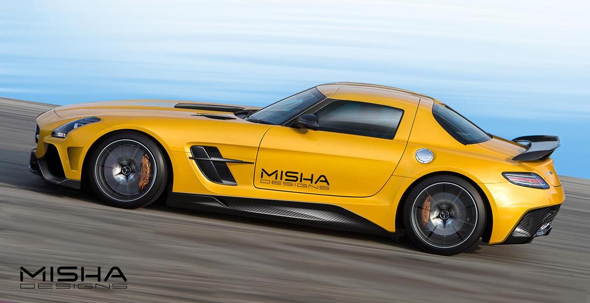 今天帶給各位一部由改裝品牌Misha Designs所設計的Mercedes Benz SLS AMG,全車換上設計靈感源自SLS AMG Black Series的整組空力套件,包含碳纖維前下巴、側裙組、前氣壩蓋板、開孔式樣引擎蓋、碳纖維後視鏡蓋、碳纖維油箱蓋、碳纖維葉子板進氣孔飾蓋、兩種不同款式的後擾流尾翼與碳纖維後下擾流板等部品,排氣管尾段也同樣流用自SLS AMG Black Series,其中側裙組與後保桿等採用LFP輕量化彈性塑膠纖維材質打造而成,具有平整與輕盈的優點,而在氣勢方面似乎比原廠Black Series更具侵略性,同時展現出高完整度。動力部分,Mercedes Benz SLS AMG搭載代號M159的6.2升V8自然進氣引擎,最大馬力為571HP,扭力則有66.3kgm的極限,輔以AMG Speed Shift DCT雙離合器七速自手排變速箱,百里加速僅需3.8秒即可完成,相當強悍,因此Misha Designs目前計畫會暫時保持原廠設定。