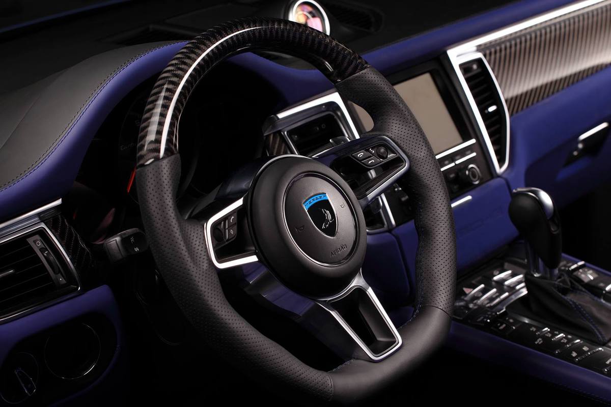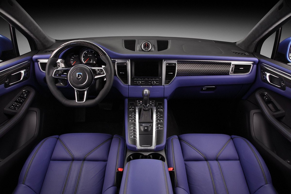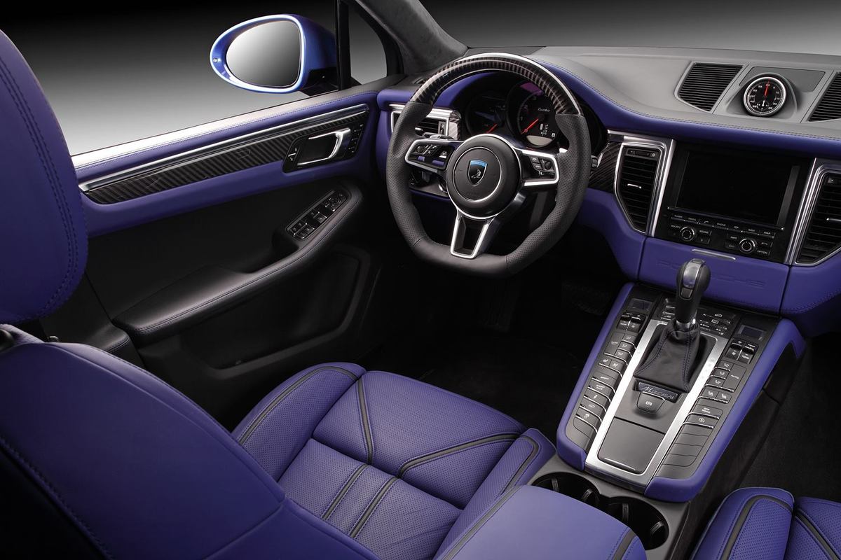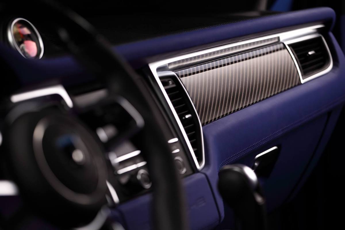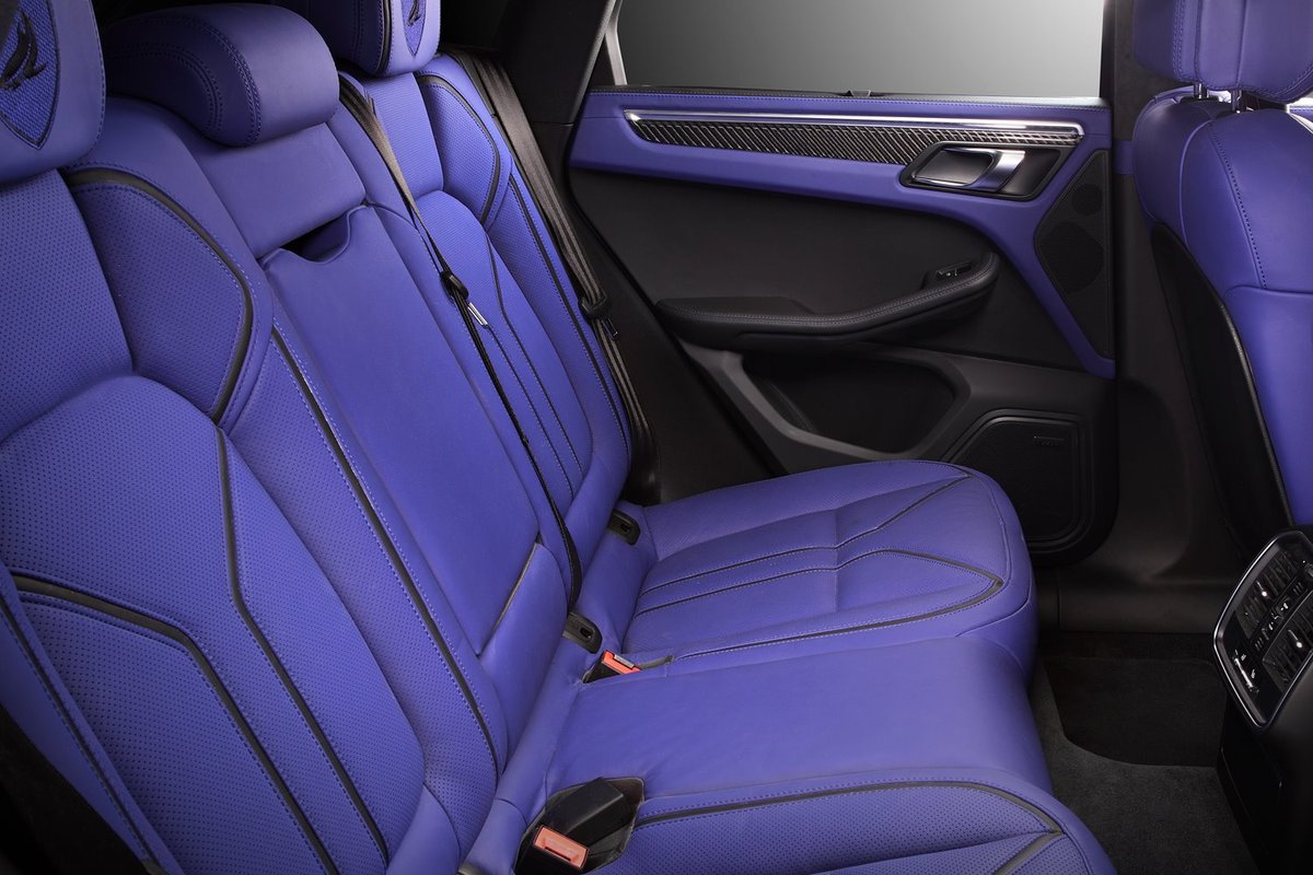 今天帶給各位一部由改裝廠Top Car所操刀的藍色塗裝Porsche Macan Turbo,換上重新設計的寬車體空力套件,包含碳纖維前下巴、前氣壩蓋板、葉子板、側面飾板、側裙組、後下擾流板、後中擾流板與後上擾流尾翼等部品,皆以碳纖維材質打造而成,搭配近期頗具知名度的ADV.1 Wheels、型號ADV6 MV2 SL的輕量化輪圈,尺寸為前21x9J、後21x10J的前後配設定,圈面以手工刷痕槍灰色處理,整體搭配得宜。內裝部分,Top Car竭盡所能地展現鬼斧神工,以大膽鮮明的紫色真皮包覆部分內裝,再以碳纖維飾板融入其中,營造出奢華帶勁的車艙氛圍。