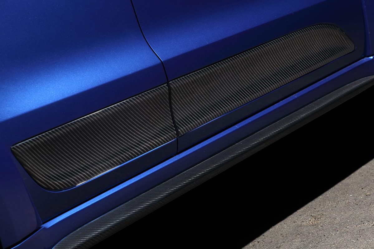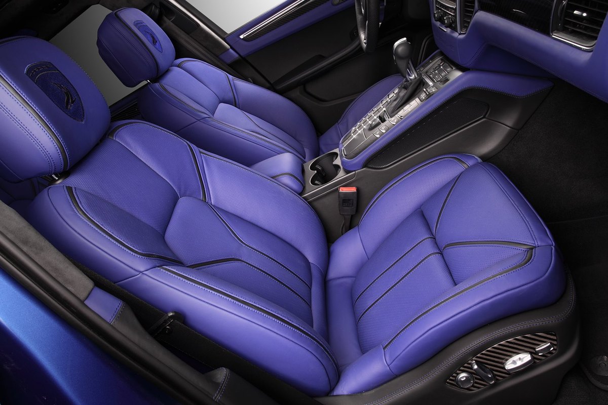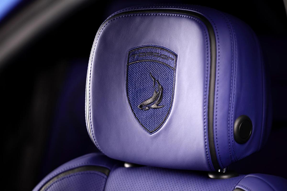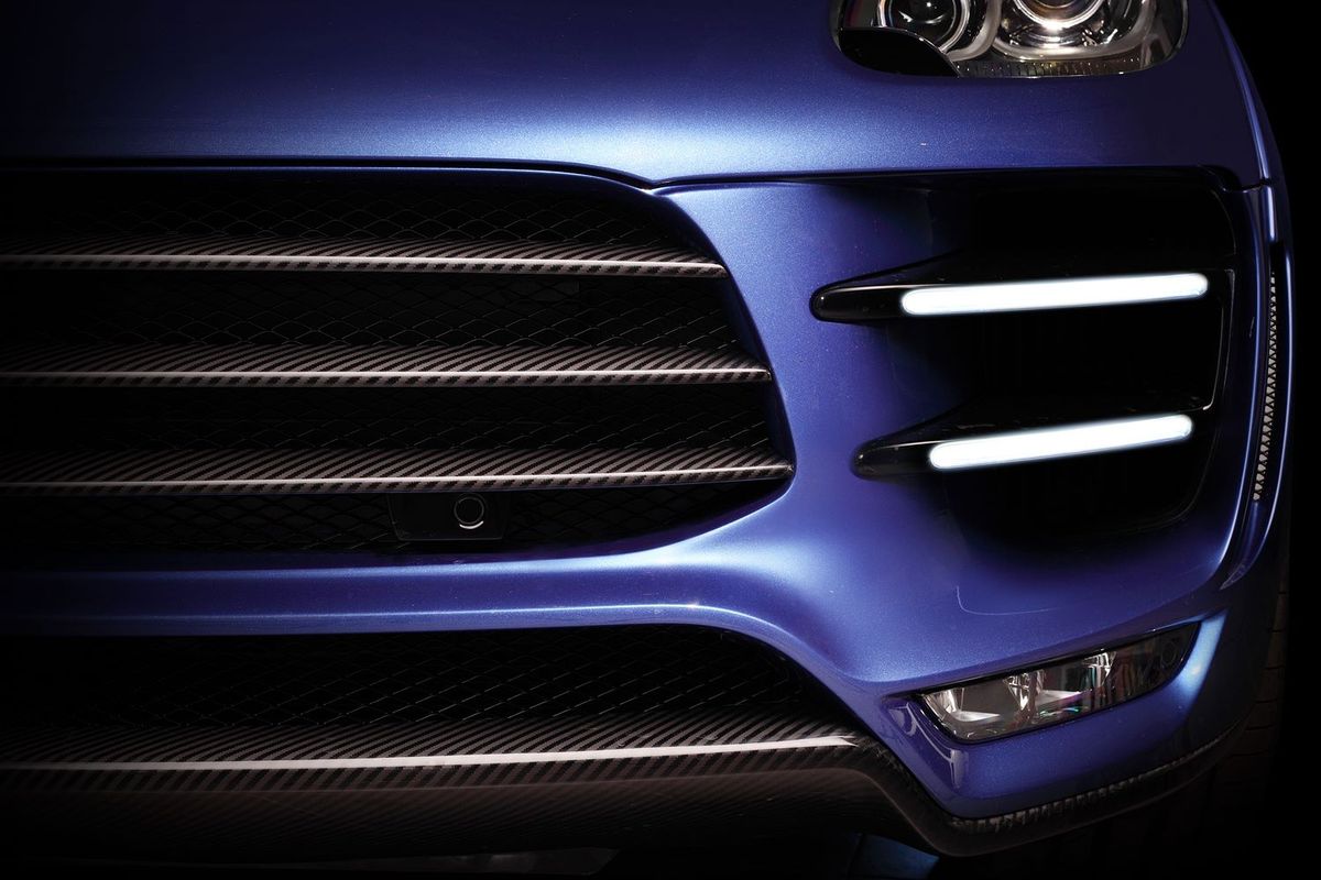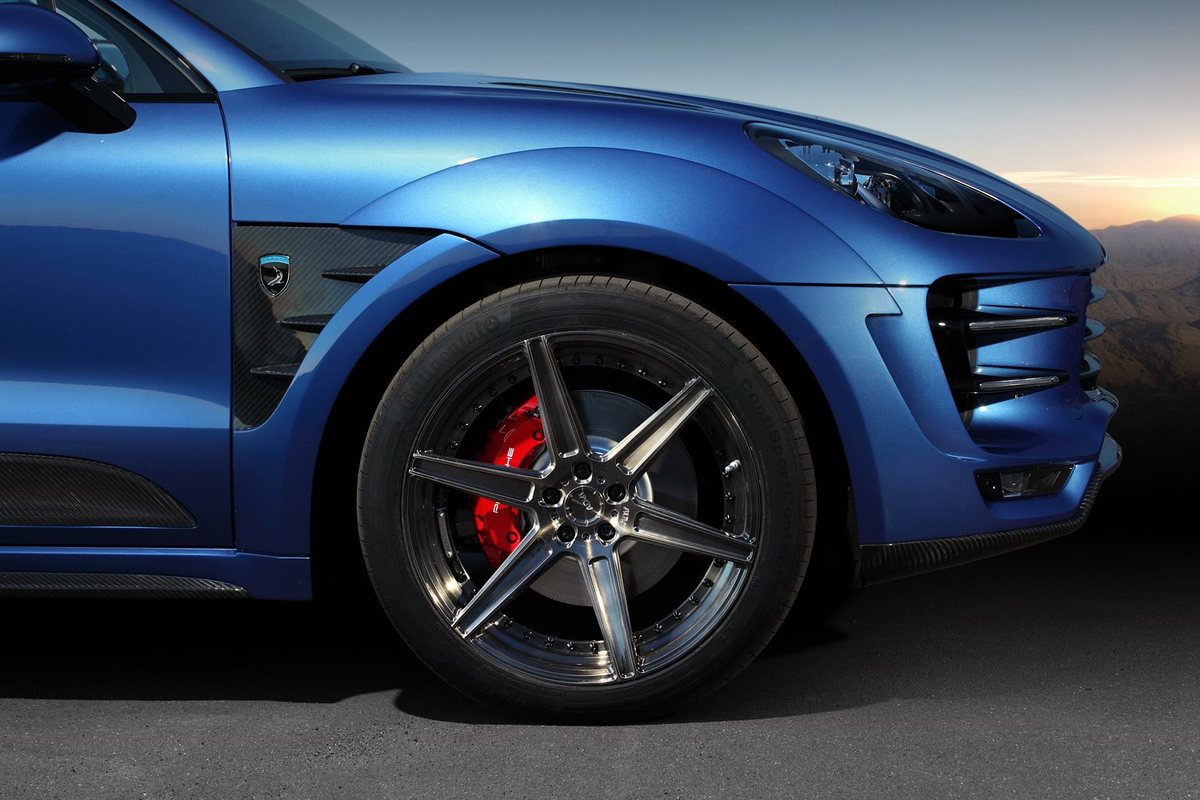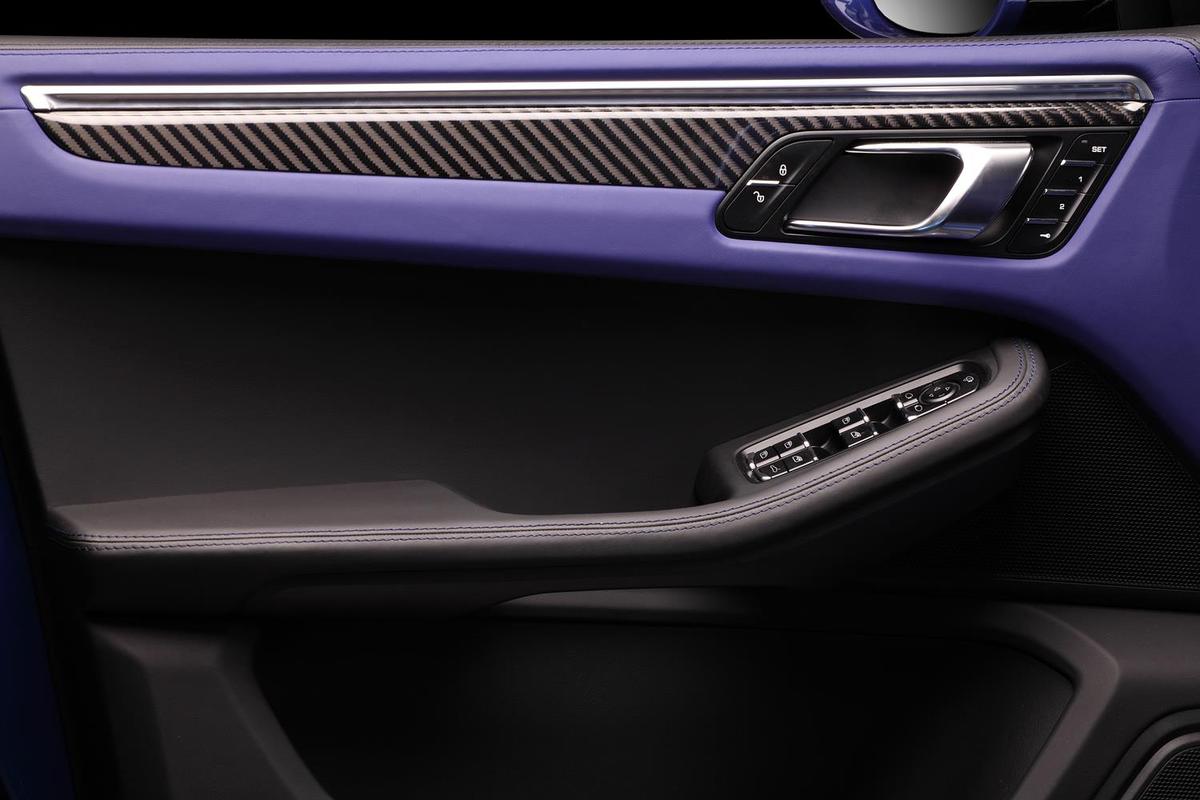 今天帶給各位一部由改裝廠Top Car所操刀的藍色塗裝Porsche Macan Turbo,換上重新設計的寬車體空力套件,包含碳纖維前下巴、前氣壩蓋板、葉子板、側面飾板、側裙組、後下擾流板、後中擾流板與後上擾流尾翼等部品,皆以碳纖維材質打造而成,搭配近期頗具知名度的ADV.1 Wheels、型號ADV6 MV2 SL的輕量化輪圈,尺寸為前21x9J、後21x10J的前後配設定,圈面以手工刷痕槍灰色處理,整體搭配得宜。內裝部分,Top Car竭盡所能地展現鬼斧神工,以大膽鮮明的紫色真皮包覆部分內裝,再以碳纖維飾板融入其中,營造出奢華帶勁的車艙氛圍。