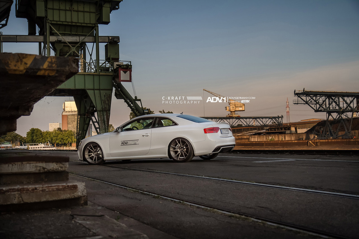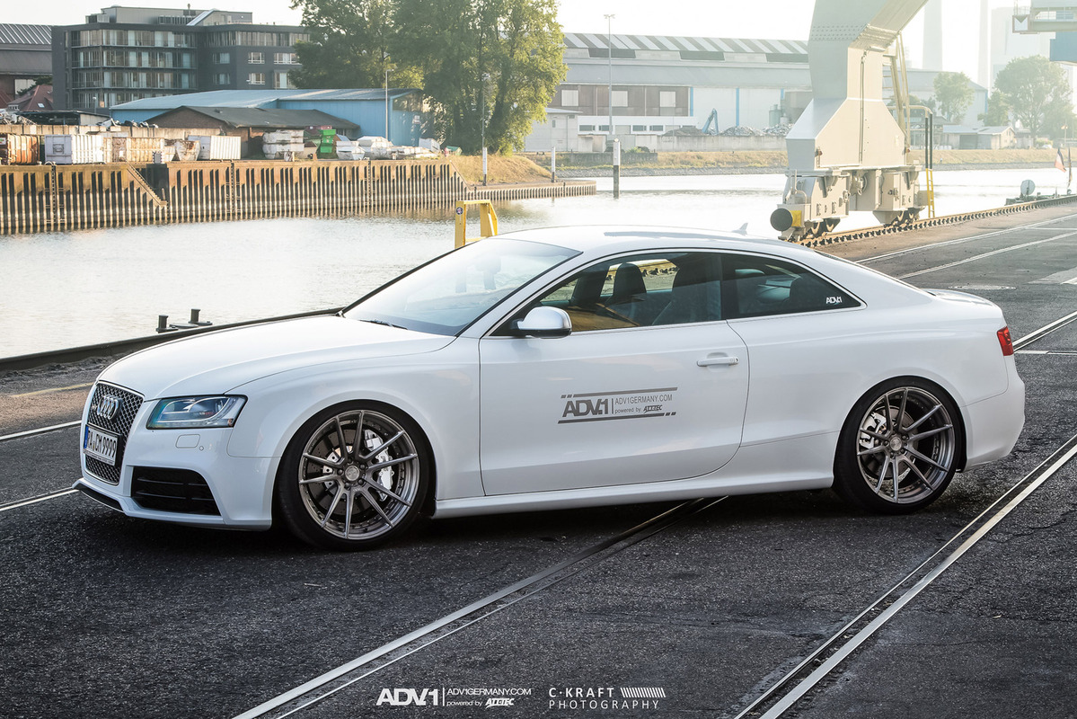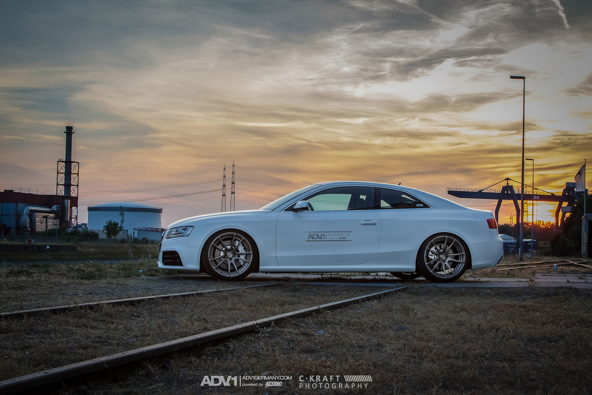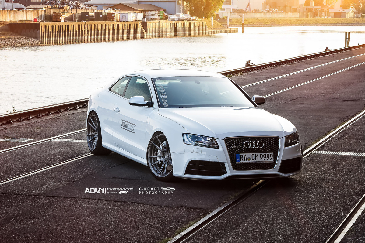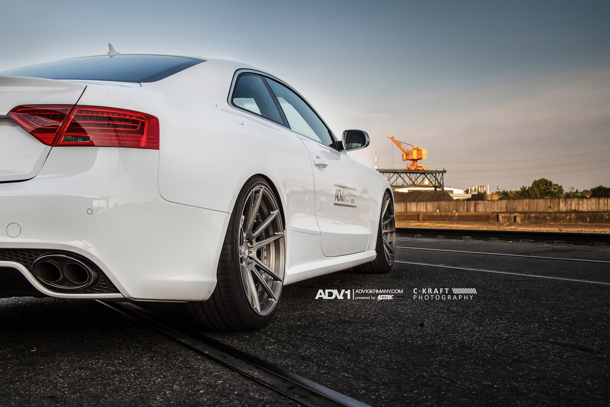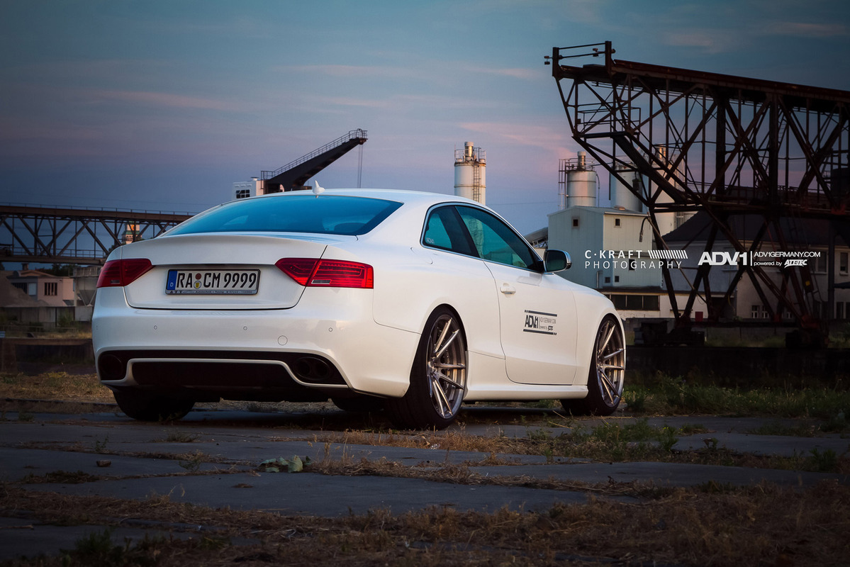 今天帶給各位的是一部由德國改裝廠ATT-TEC所操刀的小改款前Audi RS5雙門跑車,換裝知名品牌ADV.1 Wheels出品、型號ADV5.2 MV2 SL的輕量化輪圈,為了顧及Quattro系統的穩定運作,車主選用四輪皆為20x10J的尺寸,圈面採用鈦灰色處理,搭配Continental Sport Contact高性能跑胎,同時將煞車卡鉗施以與車身相同的白色塗裝,再透過KW V3高低軟硬可調式避震器組的換裝將車身降低,懸掛著「鐵支9999」的車牌,整體感十足。動力部分,ATT-TEC透過電腦程式改寫與進排氣系統優化,將最大馬力提升至約480HP,一般道路已足敷使用。