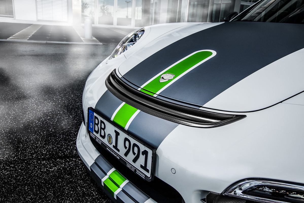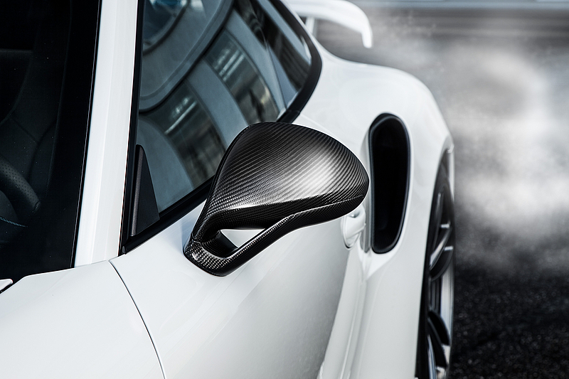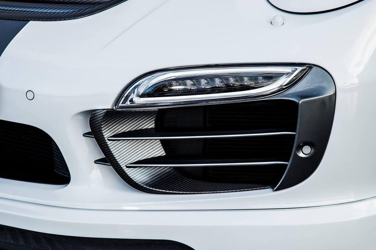 這次新增的套件包含碳纖維水箱護罩、碳纖維後視鏡、碳纖維後上擾流板、碳纖維後下擾流板、側邊進氣孔飾板與前氣壩飾蓋等部品,配合先前已發表的Turbo車款專用前下巴、頭燈周邊環形飾蓋與修飾腰身曲線的側裙組,再加上專屬車身彩繪,強化Porsche 991的高質感風情。