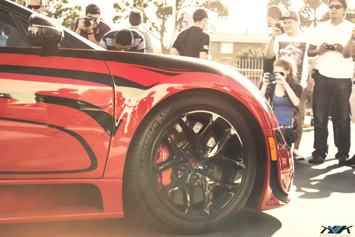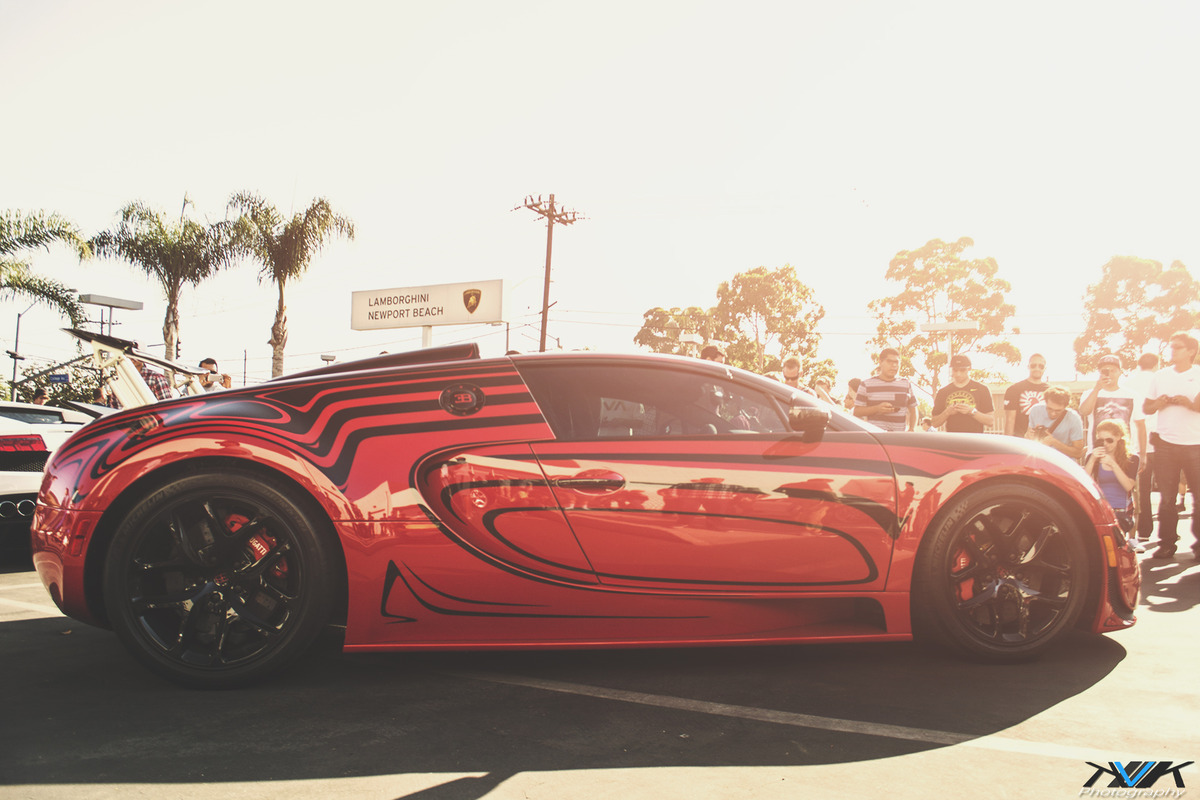 該部被取名為「L´Or Rouge」的雙色超跑Bugatti Veyron Grand Sport Vitesse乃由美國聖地牙哥(San Diego, USA)的知名車商Symbolic Motors接受顧客委託而引進,除了車身烤漆的特殊配色之外,內裝門板上也以同樣條紋呼應,再搭配亮面黑色輪圈與紅色煞車卡鉗,視覺效果相當流暢。日前,該部Bugatti Veyron Grand Sport Vitesse L’Or Rouge出席由當地代理商Lamborghini of Newport Beach所舉辦的車聚活動,耀眼扮相再度引起眾人圍觀,絲毫感受不到Bugatti Veyron人氣衰退的跡象。
