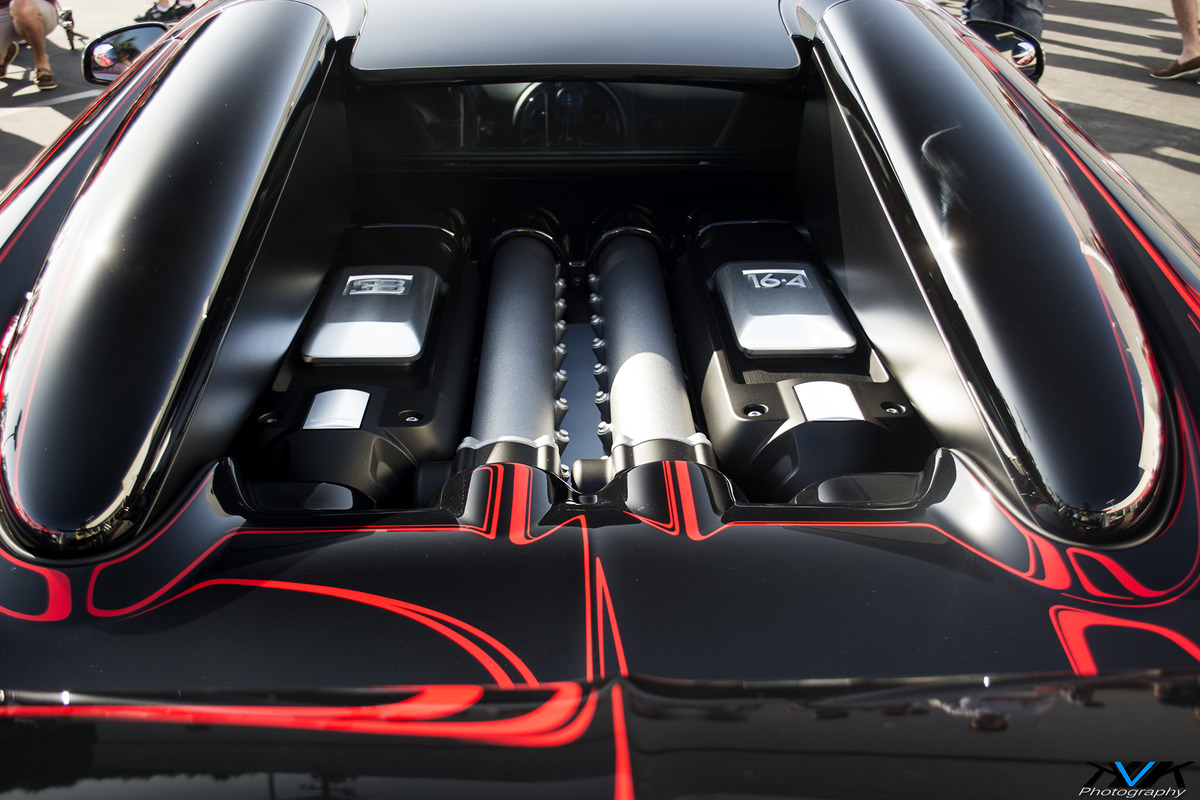在2011年的德國法蘭克福車展(Frankfurt Motor Show)當中,法國車廠Bugatti推出一款取名「L´Or Blanc」、採用類似虎斑條紋塗裝的藍白雙色版本Bugatti Veyron Grand Sport,樣貌相當特殊,當時堪稱全球唯一。然而,這幾年來陸續有多名Bugatti顧客選擇用客製化服務親自挑選配色,包含過去有替各位報導過的Veyron Grand Sport Vitesse L´Or Blanc與Veyron Super Sport Ting &Tiger等,而前陣子也有網友在中國上海(Shanghai, China)某地下停車場擄獲一部紅黑配色、採用此條紋塗裝的Bugatti Veyron Grand Sport Vitesse,相當吸睛。然而,今天帶給各位眼前的這部Bugatti Veyron Grand Sport Vitesse採用與現身上海的那部近乎一樣之配色,僅在車尾氣壩的選色與美規邊燈處有所不同。