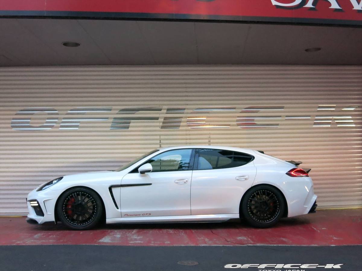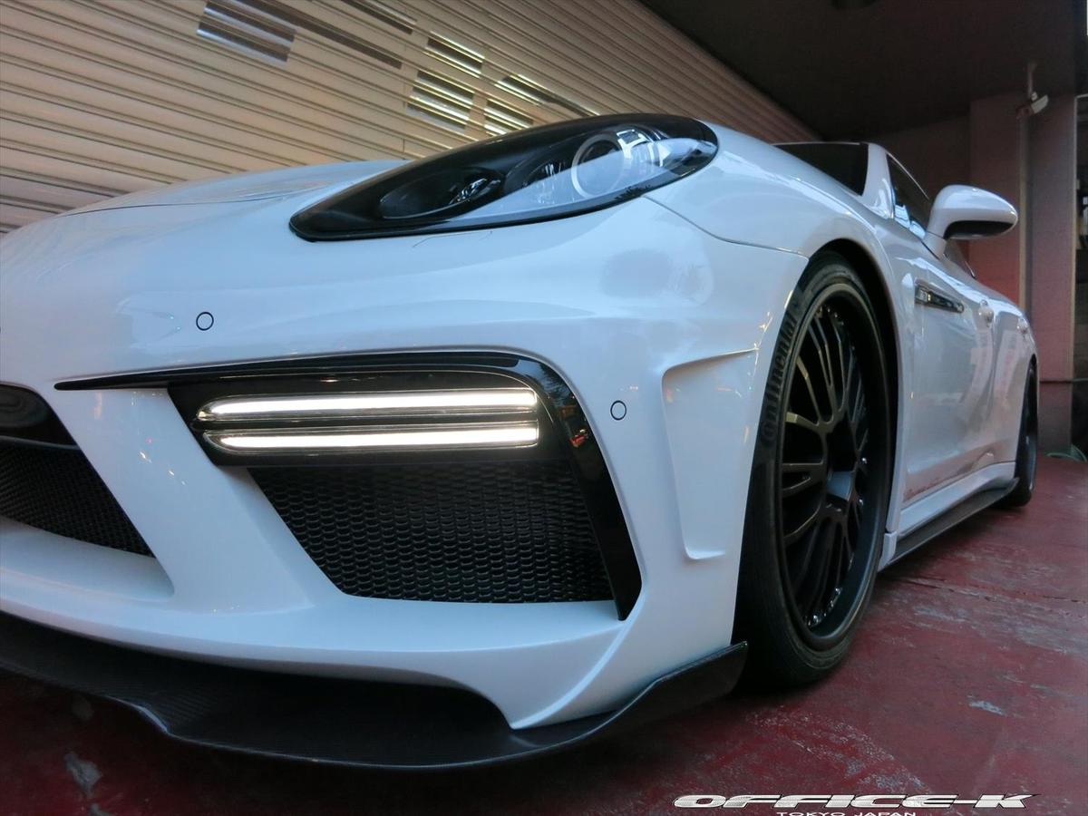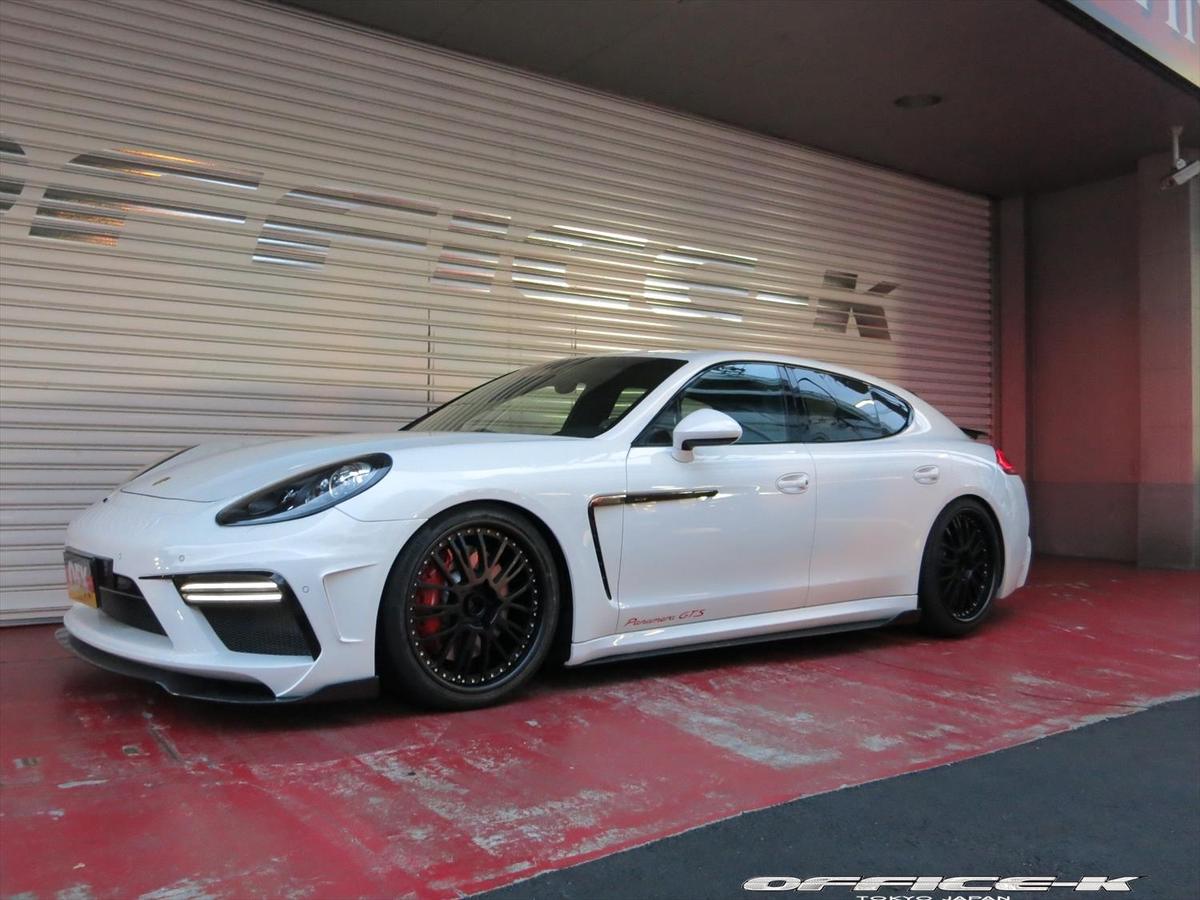 今天帶給各位一部由日本改裝廠Office-K所操刀的小改款式樣Porsche Panamera GTS,外觀部分換上來自MC Custom的全車空力套件,再加裝來自日本名廠ARTISAN Spirits的後廂蓋擾流板與進氣孔延伸飾板等數樣精品,搭配同樣來自ARTISAN Spirits的黑色三片式21吋輕量化輪圈,與其白色塗裝之車身與紅色煞車卡鉗相配,再透過高低軟硬可調式避震器組將車身降低,展現出Panamera身上少見的華麗霸氣風格。