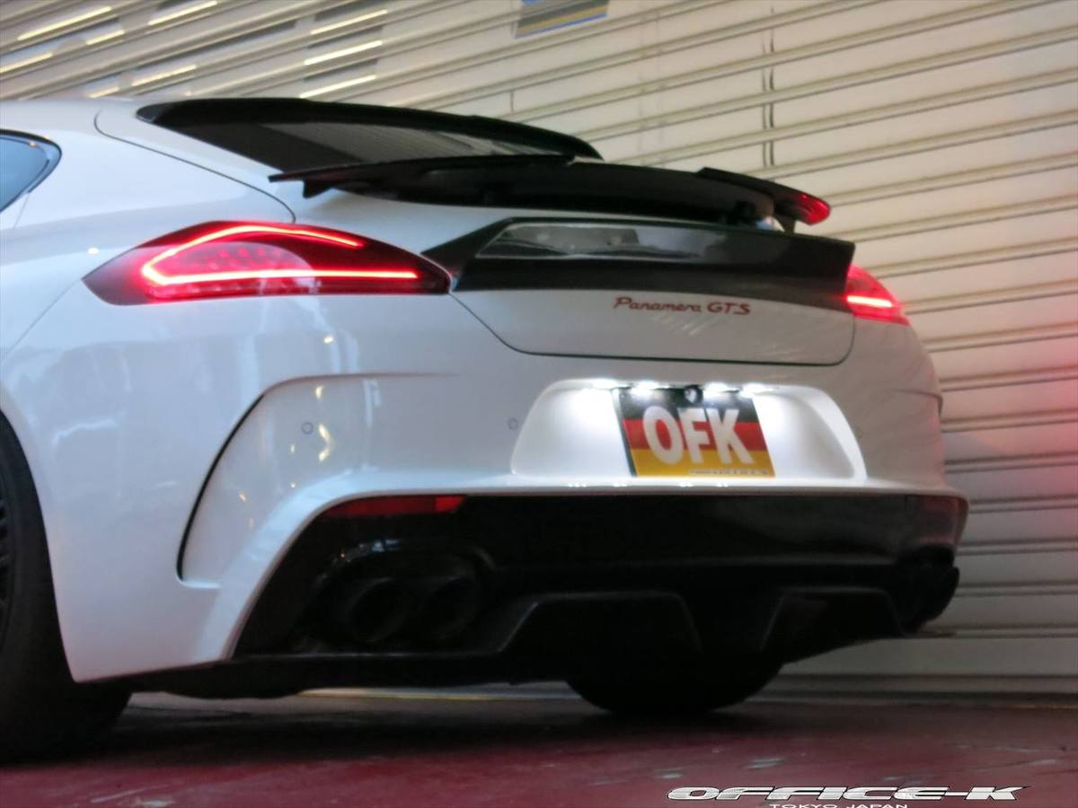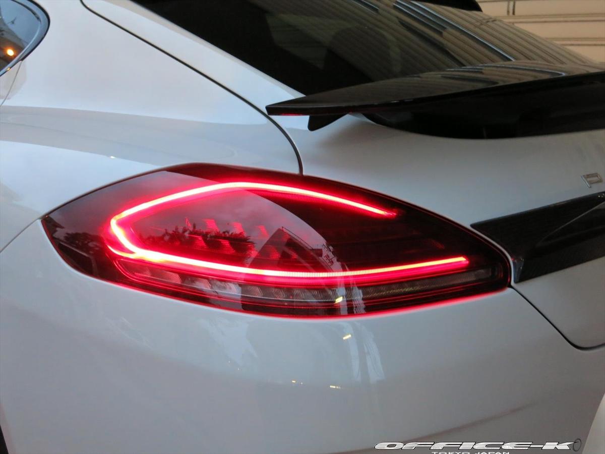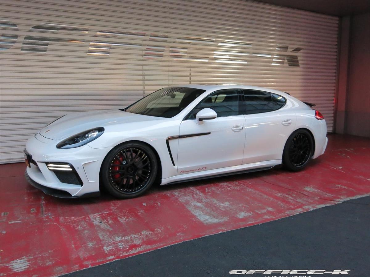今天帶給各位一部由日本改裝廠Office-K所操刀的小改款式樣Porsche Panamera GTS,外觀部分換上來自MC Custom的全車空力套件,再加裝來自日本名廠ARTISAN Spirits的後廂蓋擾流板與進氣孔延伸飾板等數樣精品,搭配同樣來自ARTISAN Spirits的黑色三片式21吋輕量化輪圈,與其白色塗裝之車身與紅色煞車卡鉗相配,再透過高低軟硬可調式避震器組將車身降低,展現出Panamera身上少見的華麗霸氣風格。