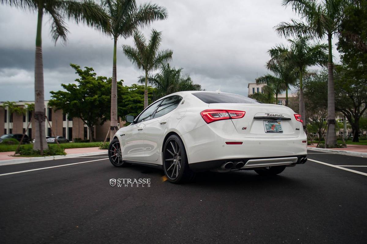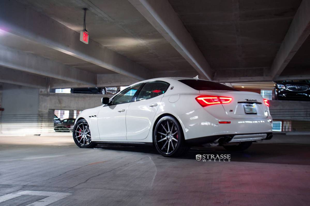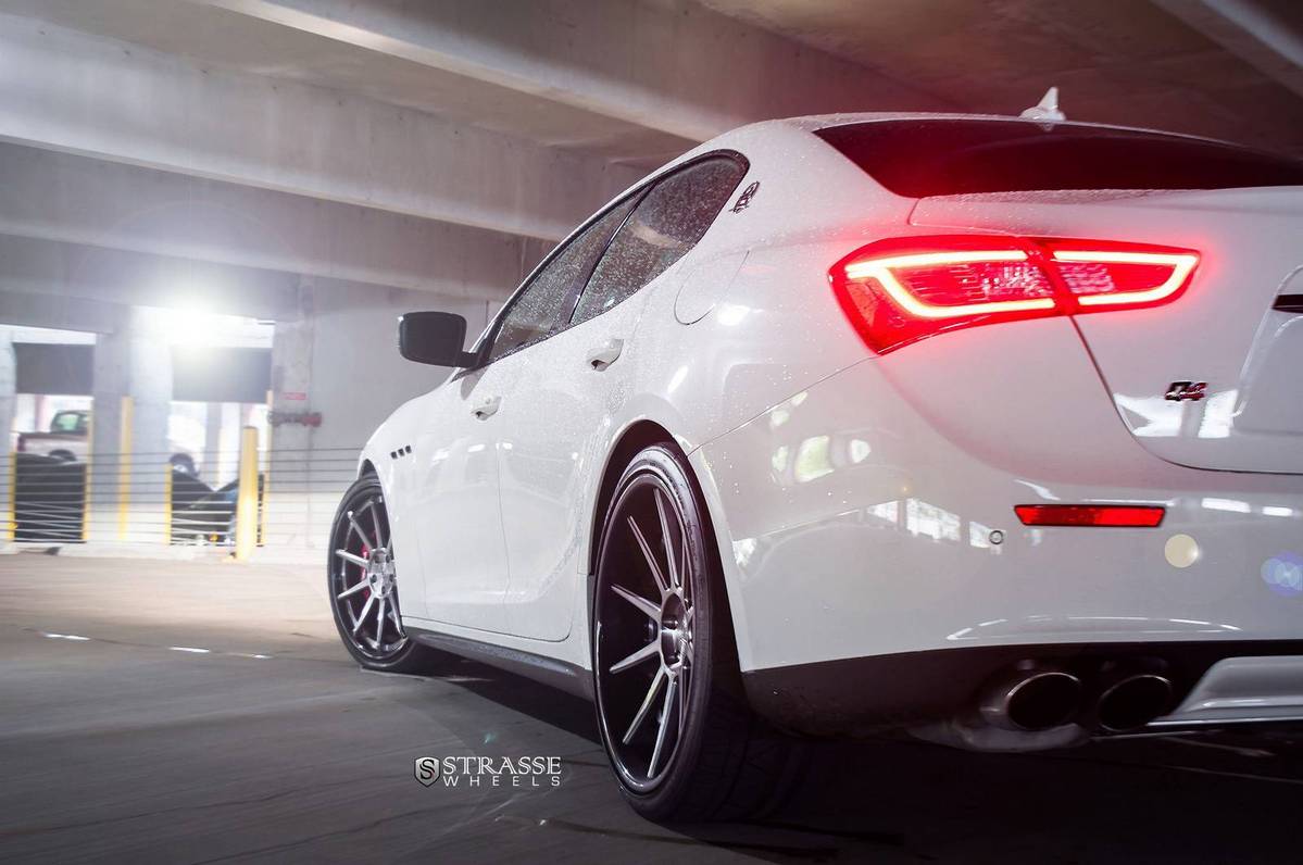 今天帶給各位的是一部由輪圈品牌Strasse Wheels所推出2014年款式Maserati Ghibli S Q4車型,換裝型號R10的內凹款式輪圈,中心採用鋁合金手工刷痕,外圈則以亮面黑色處理,尺寸採用前21x9J、後21x10.5J的前後配設定,搭配Nitto INVO高性能跑胎,再換裝短彈簧將車身略微降低,除了提升業已不錯的操控性能之外,也營造出與原廠不同的動感跑格。